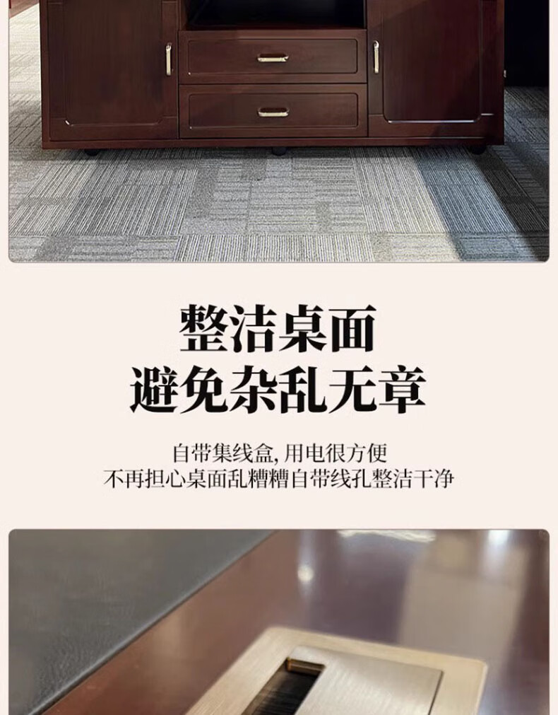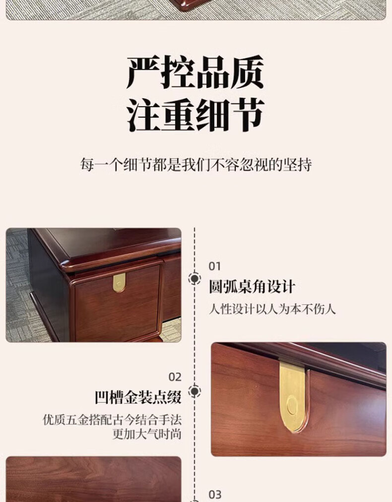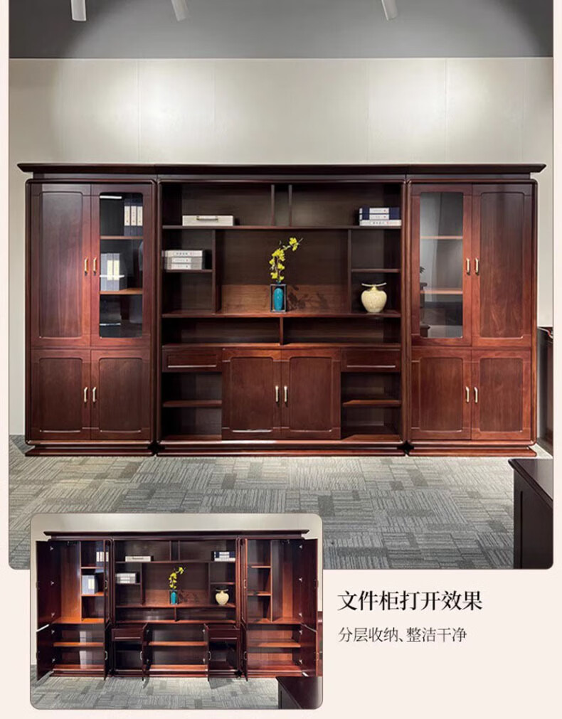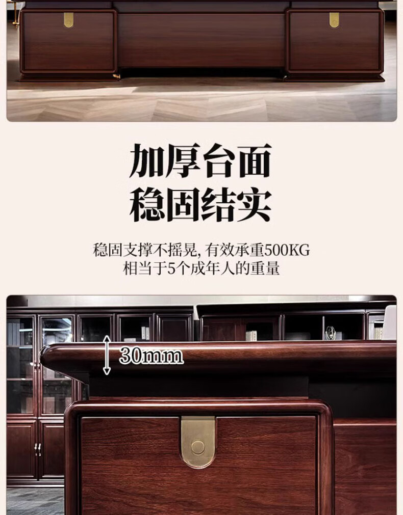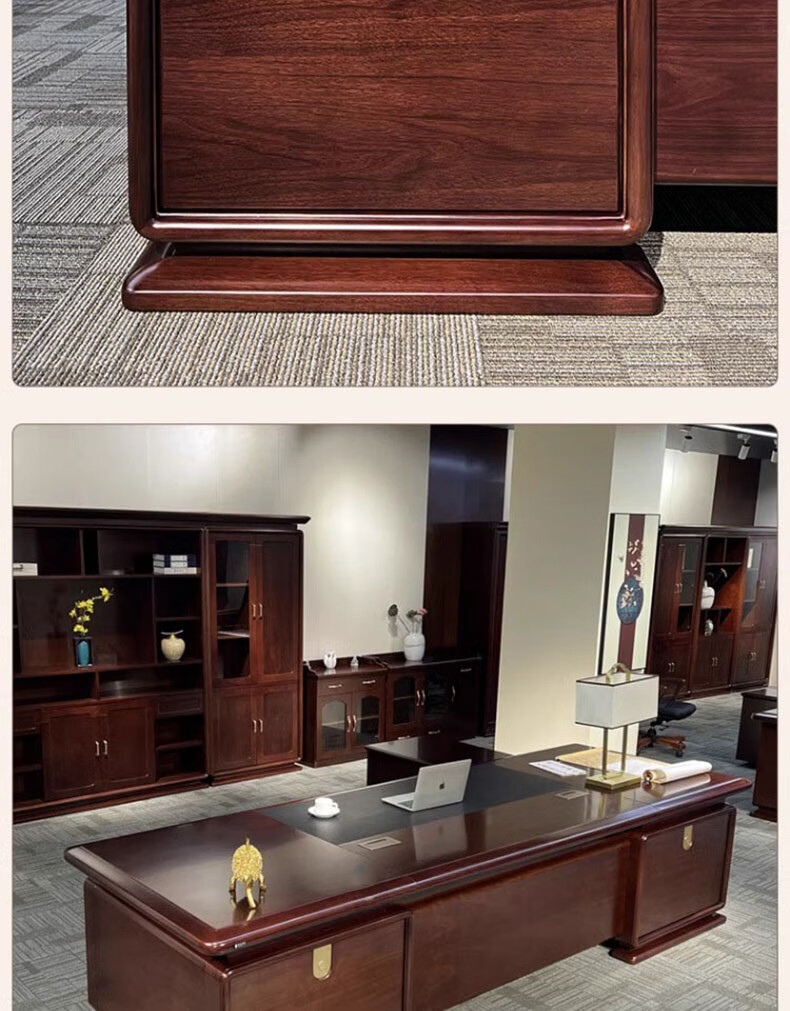 Hanjitang Yuxin Chinese style solid wood desk boss desk walnut veneer office furniture high-end office president desk executive desk 2.2 meters boss desk