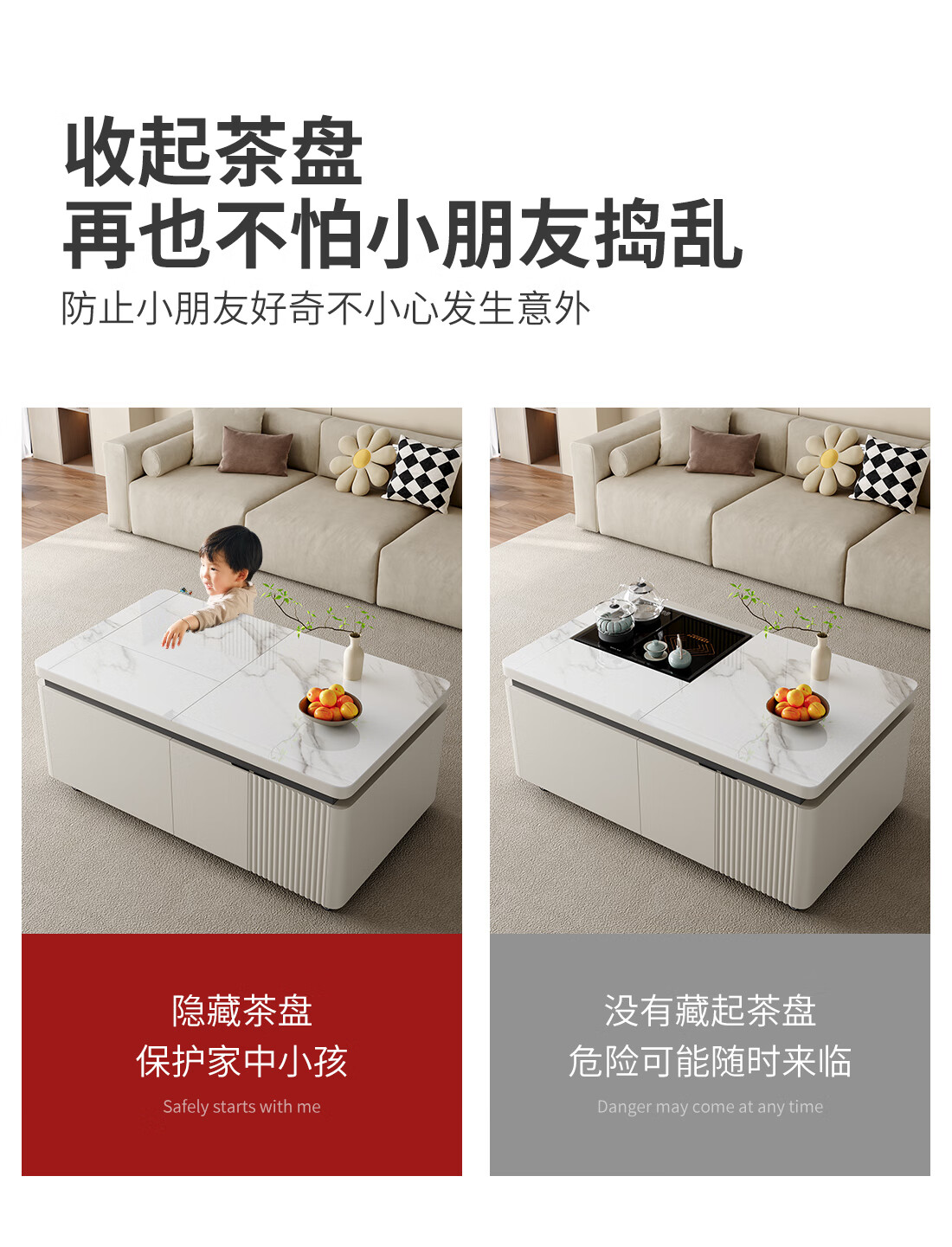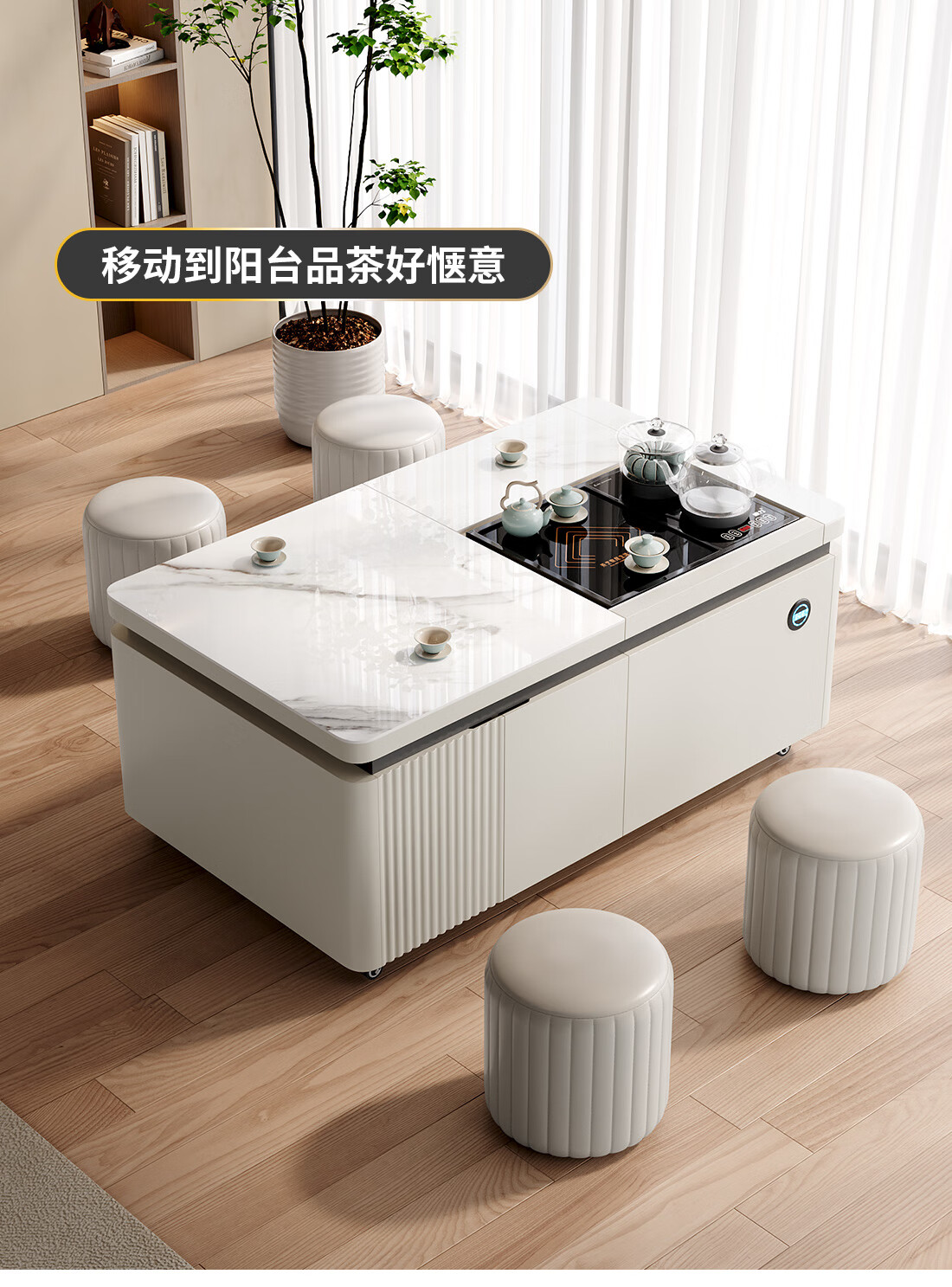 Jibao slate removable lifting coffee table with kettle integrated living room simple light luxury high-end Kung Fu tea table Kung Fu coffee table with tea stove set door-to-door installation