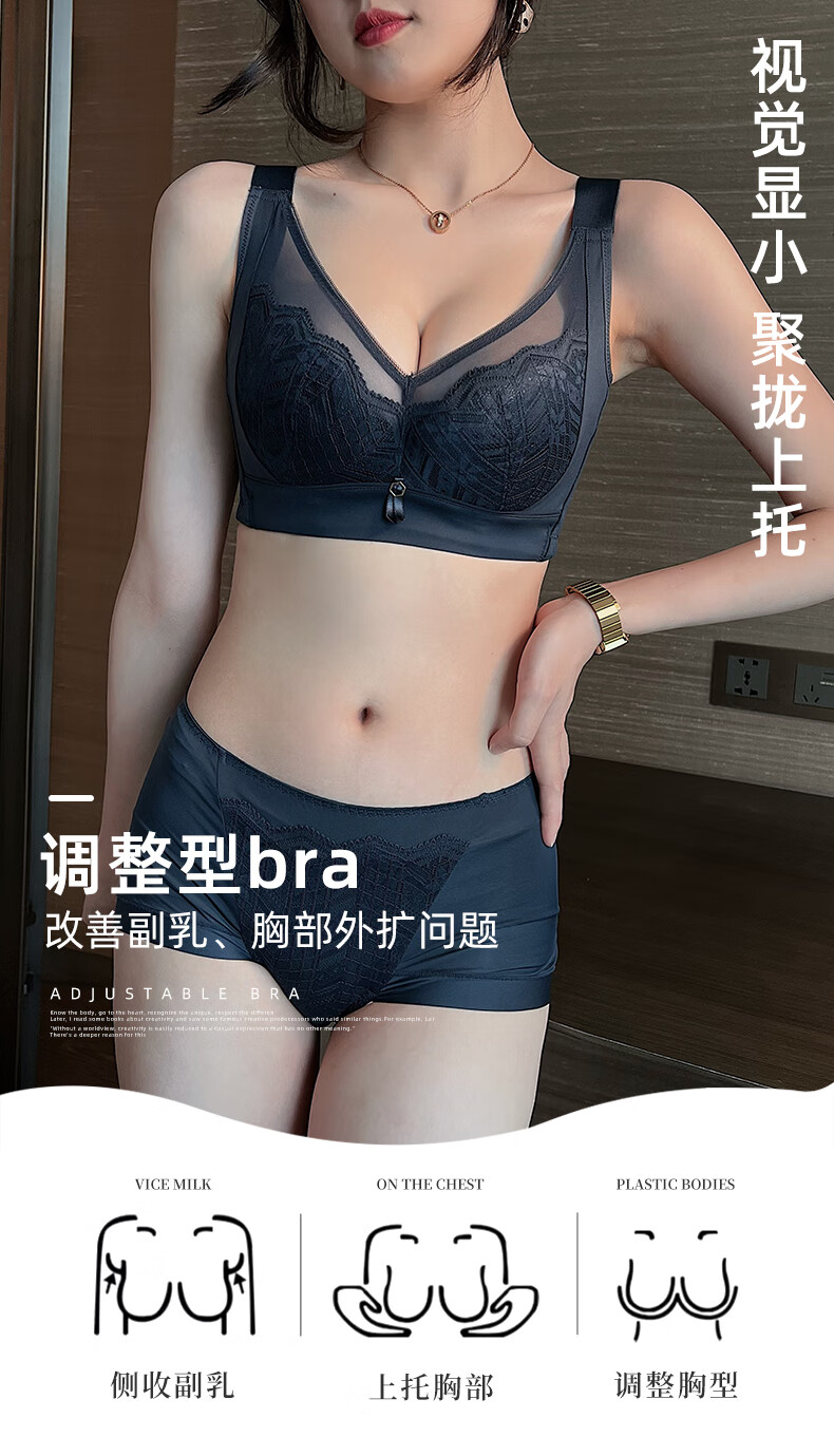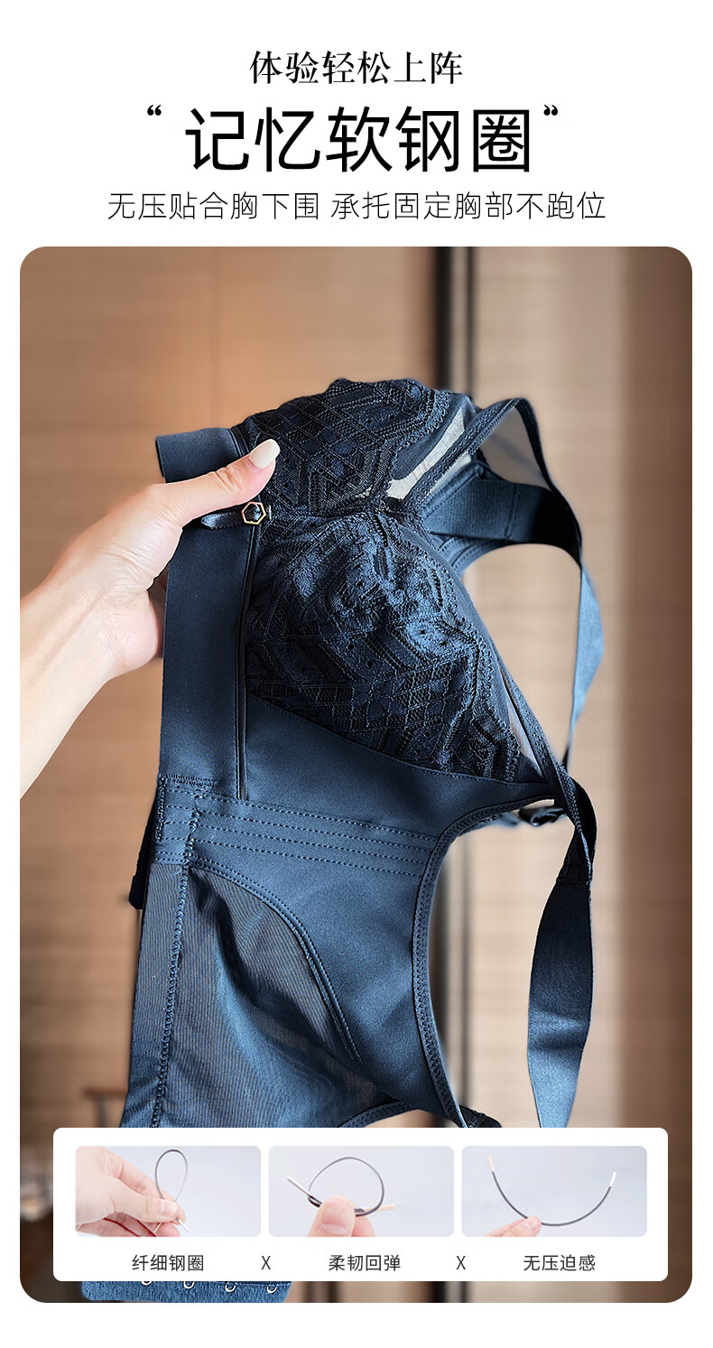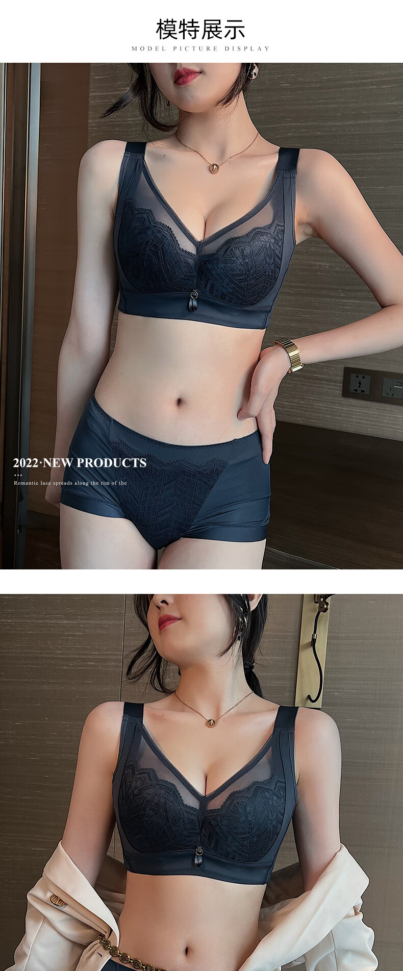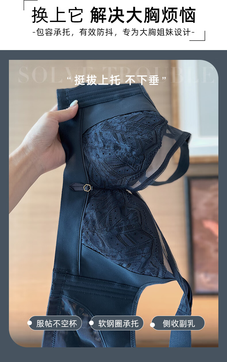 Aimu Autumn and Summer Big Breast Reducing Underwear Women's Thin Soft Steel Ring Adjustable Top-up Push-up Breast Reduction Anti-Sagging Bra Set Dark Blue (Single Piece) 38/85D