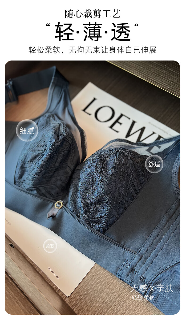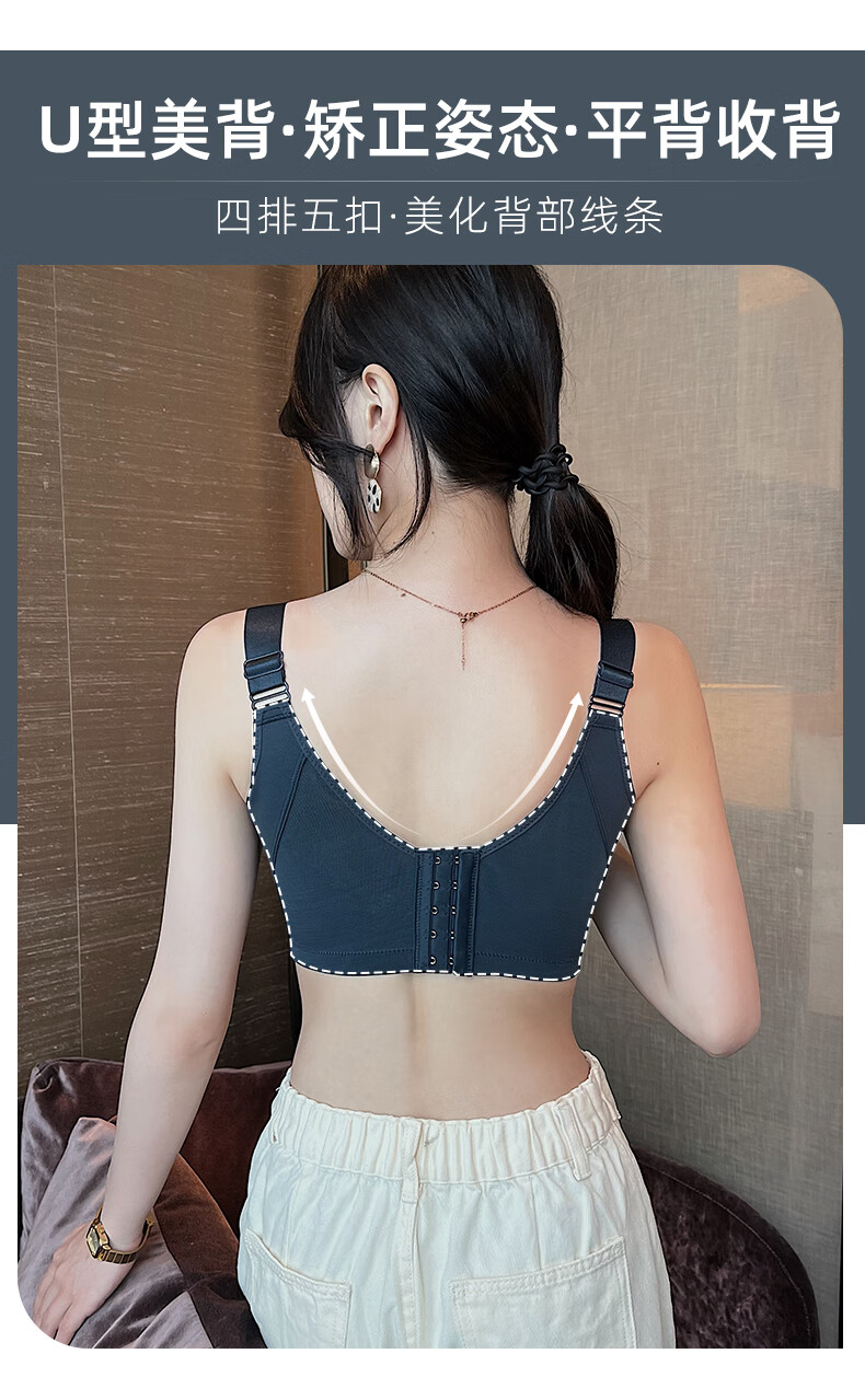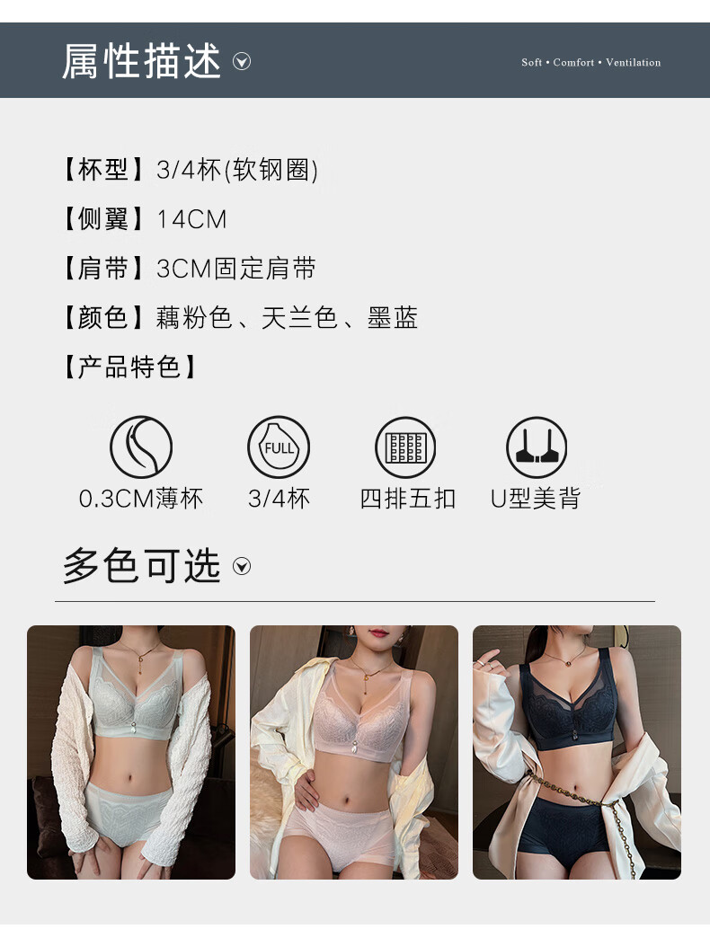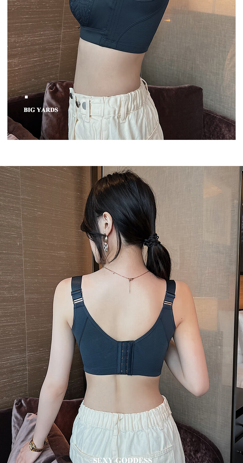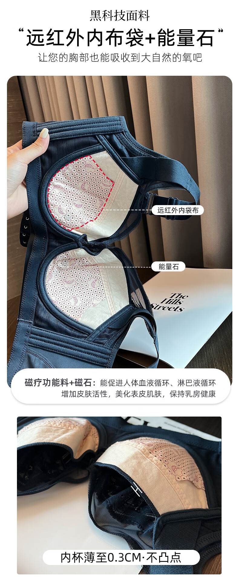 Aimu Autumn and Summer Big Breast Reducing Underwear Women's Thin Soft Steel Ring Adjustable Top-up Push-up Breast Reduction Anti-Sagging Bra Set Dark Blue (Single Piece) 38/85D