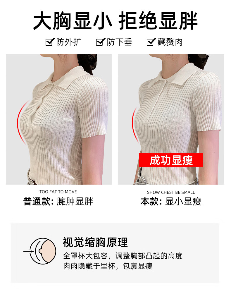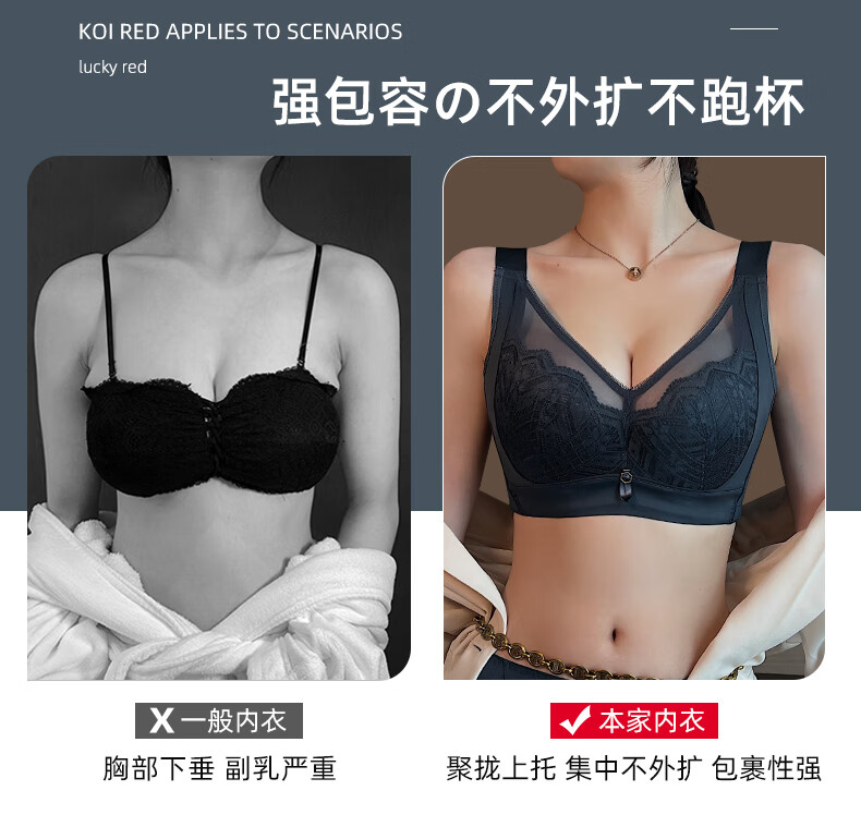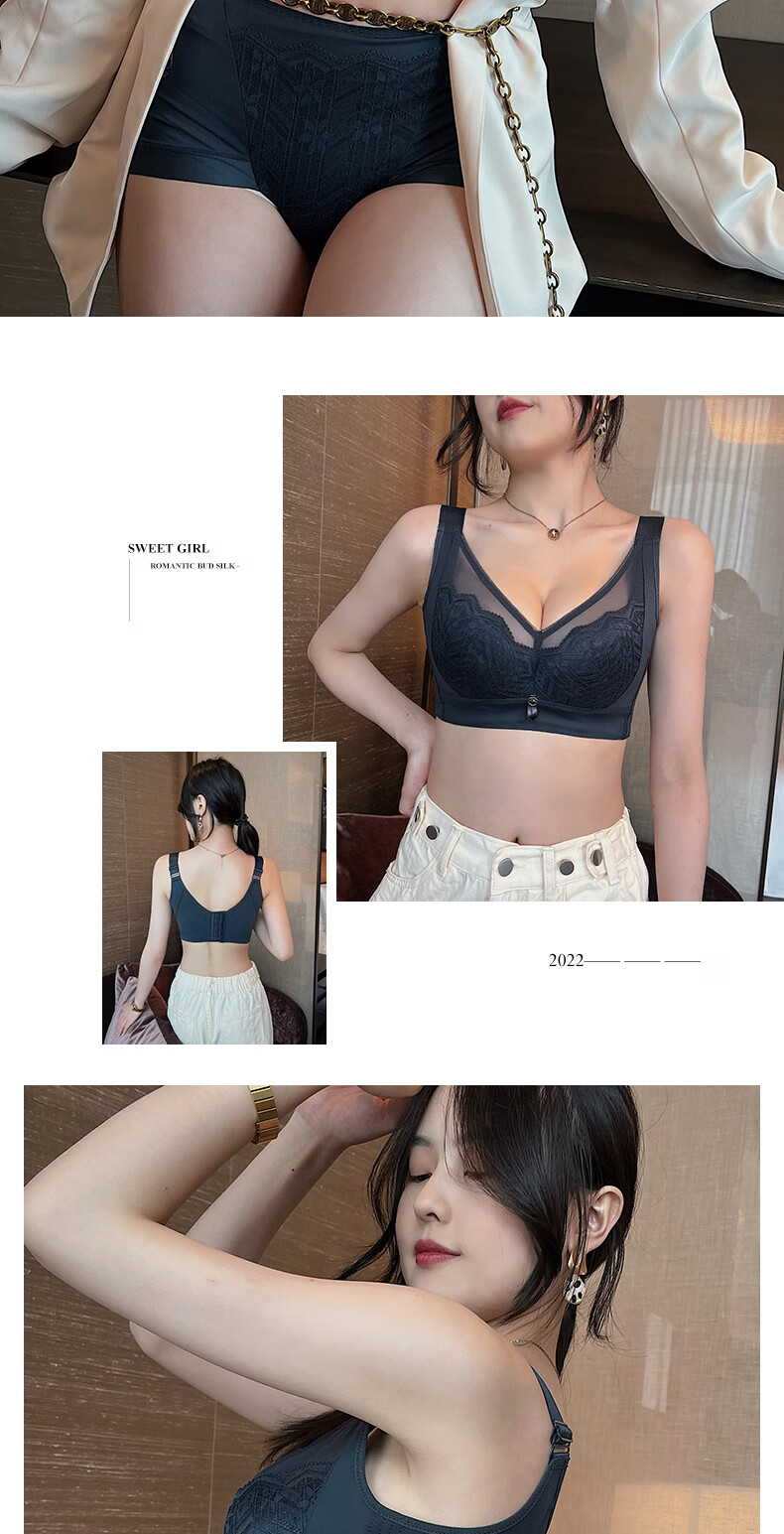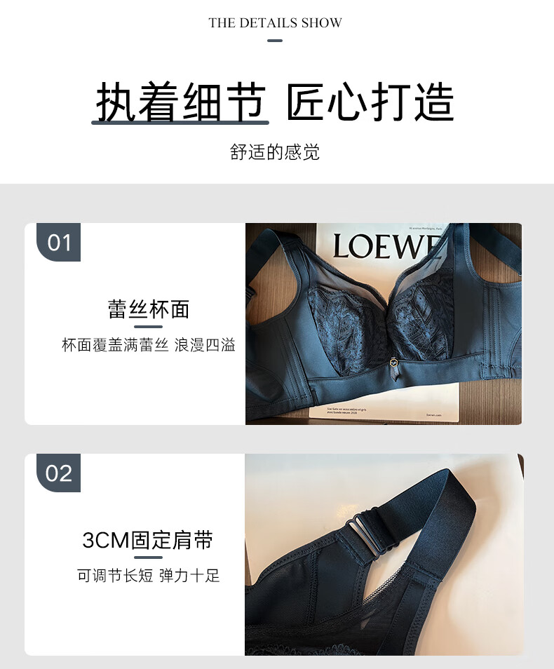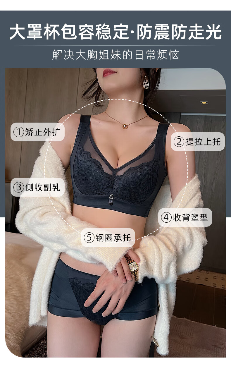 Aimu Autumn and Summer Big Breast Reducing Underwear Women's Thin Soft Steel Ring Adjustable Top-up Push-up Breast Reduction Anti-Sagging Bra Set Dark Blue (Single Piece) 38/85D