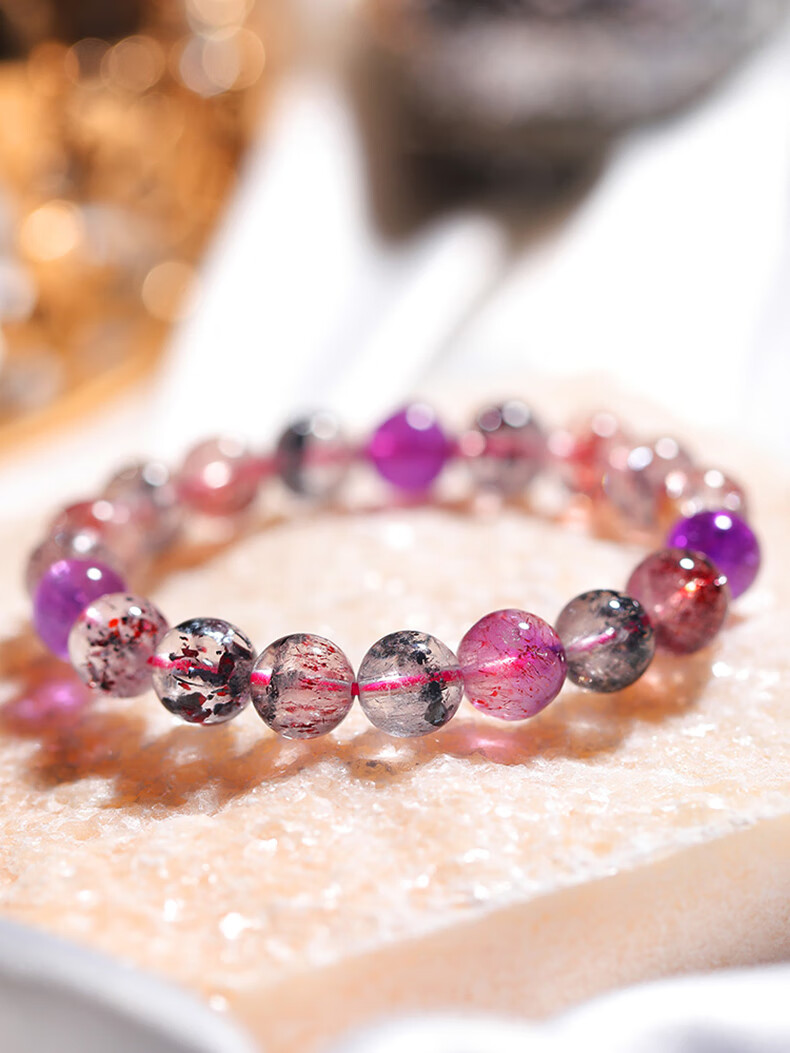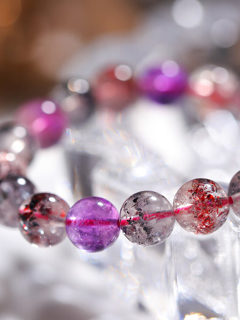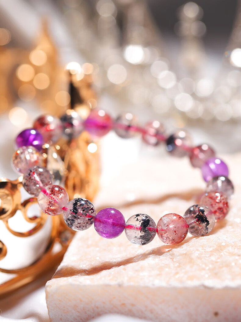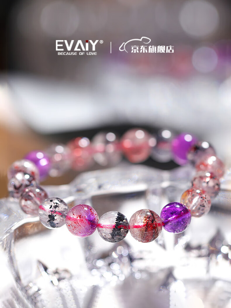 EVAIY high-end collection-grade authentic seven-crystal bracelet for women, blackcurrant, purple-red, pink, strawberry, birthday and Valentine's Day gift, collection-grade super seven-crystal bracelet-7mm
