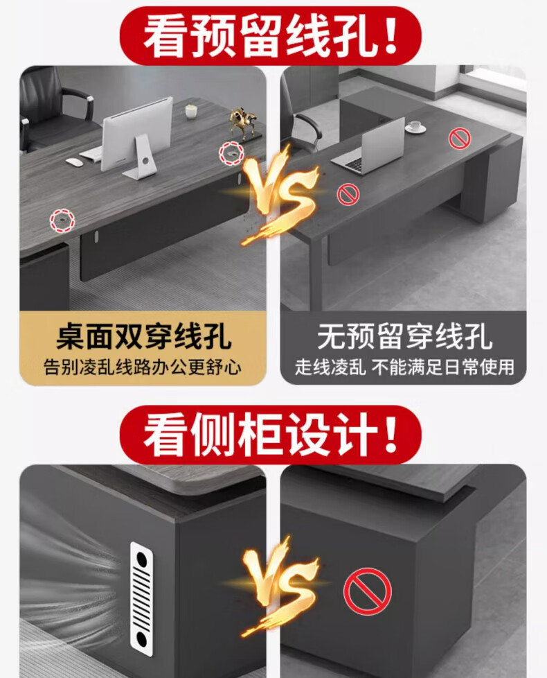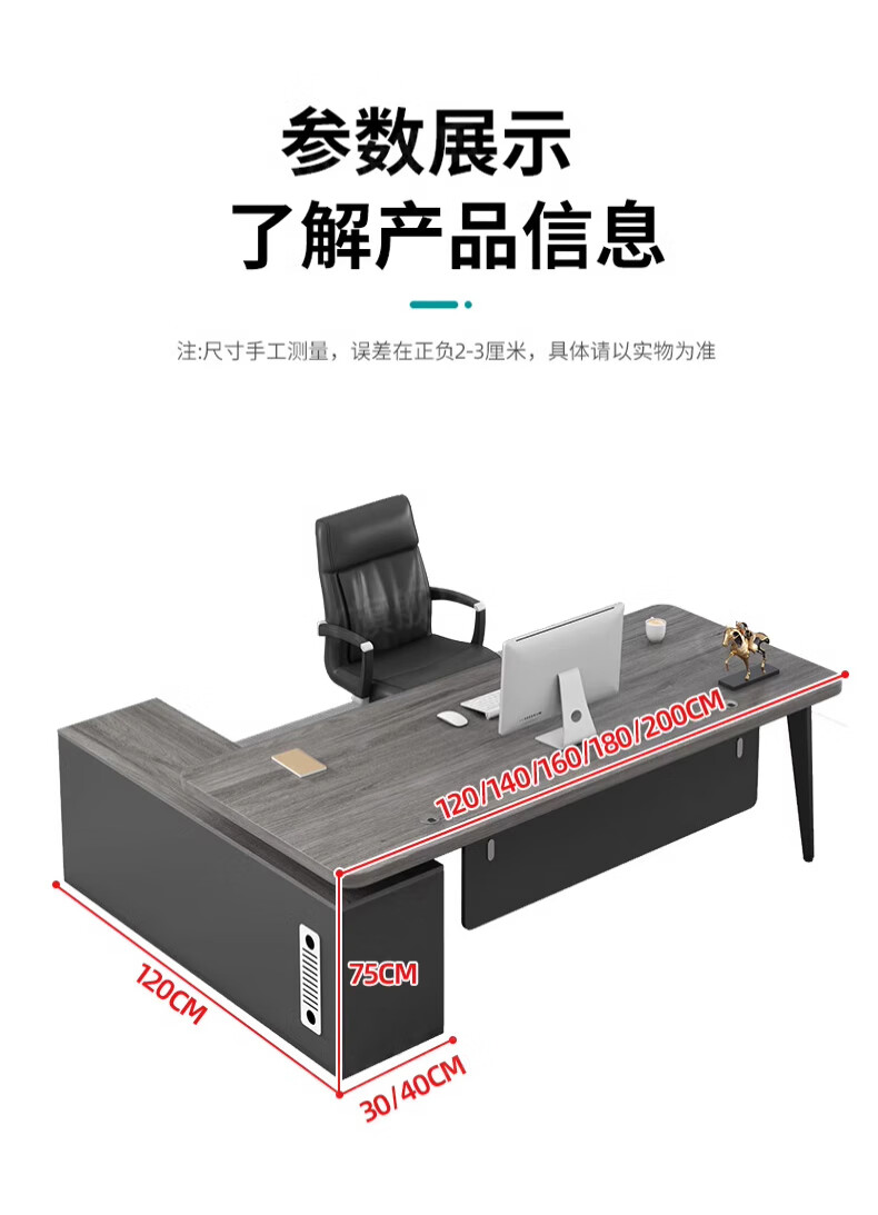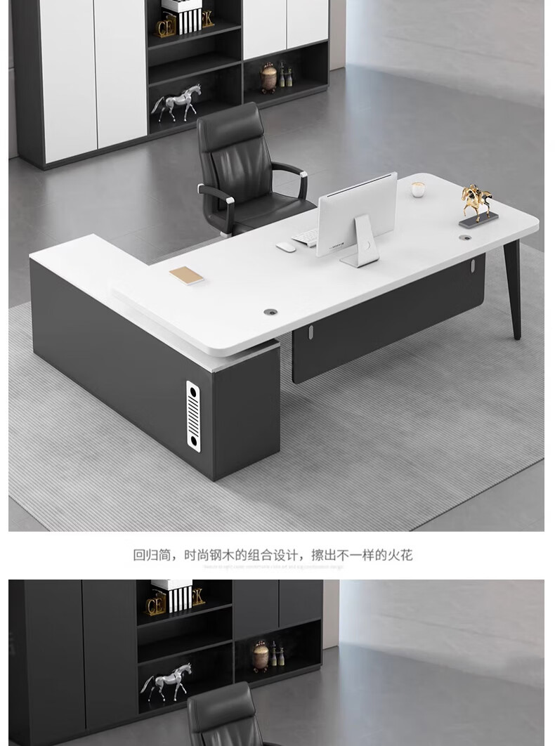 Li Xuan Boss Desk Desk Simple Modern President Desk Manager Desk Office Furniture Office Desk and Chair Combination White 180*80*75 Boss Desk + Side Cabinet