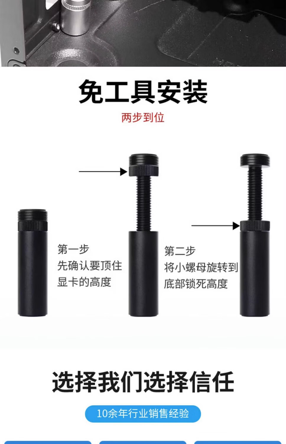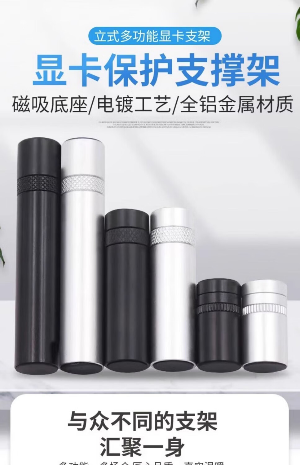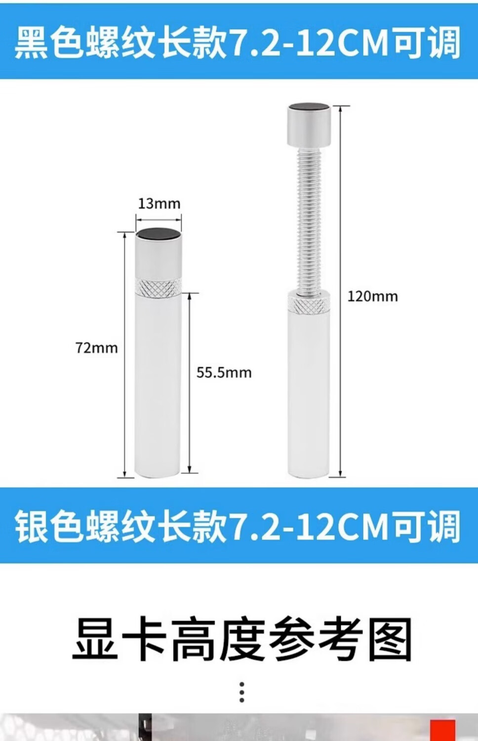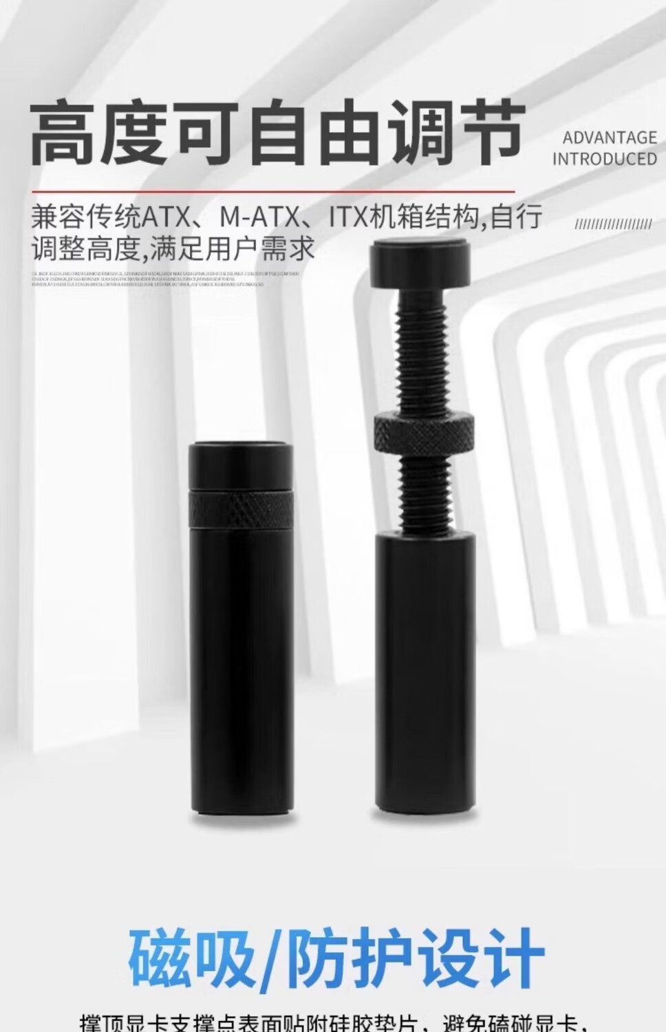 Huagu graphics card bracket thousand Jin Jin is equal to 0.5 kg top support bracket 3070 graphics card RTX4090 bracket anti-bending all-aluminum metal magnetic bottom ITX small chassis graphics card companion bracket vertical anti-bending Knight black short style adjustable 2.6 - 5CM