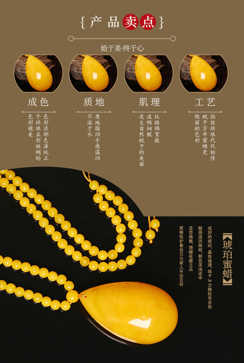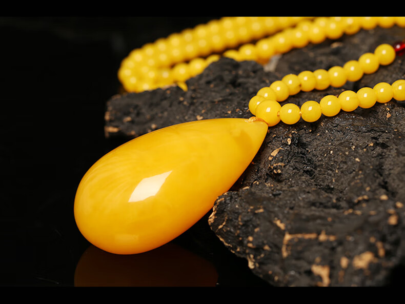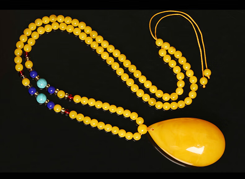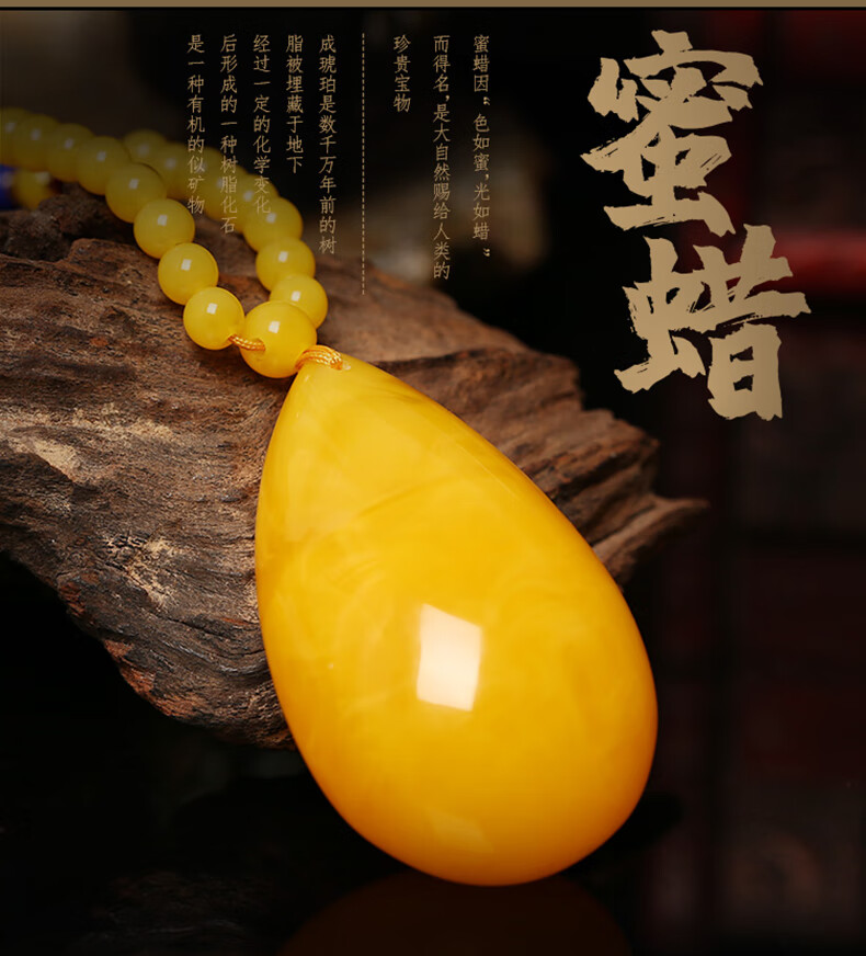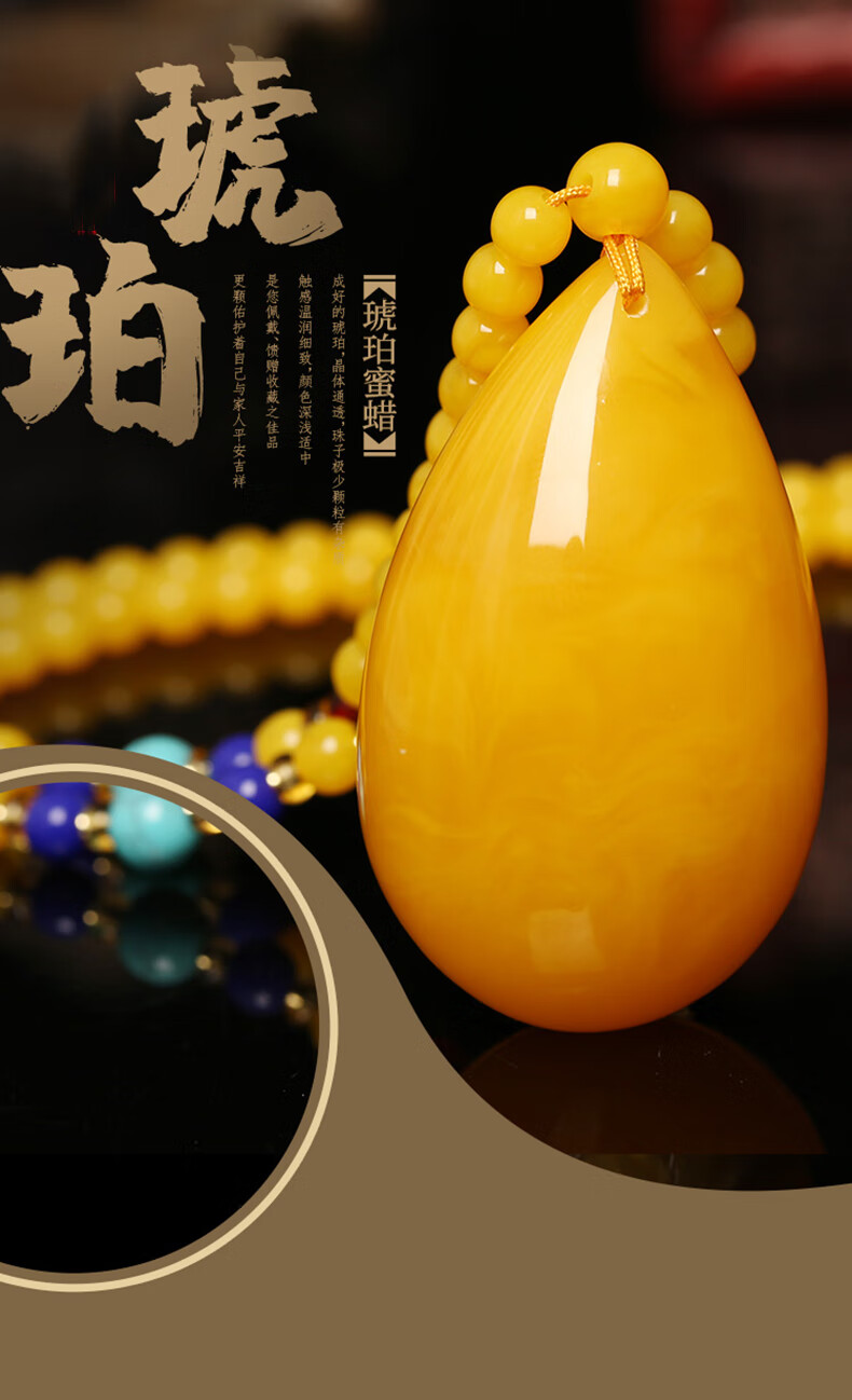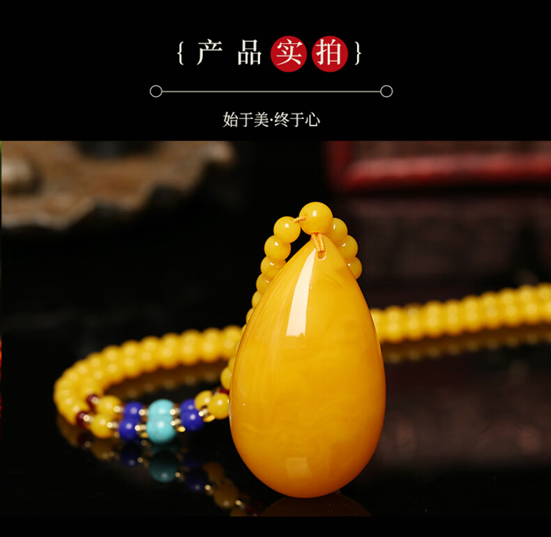 Layun Feiyin chicken fat yellow beeswax water drop pendant for men and women old honey amber optimized non-natural sweater chain pendant necklace light luxury 61*36*29mm about 34g (one item, one certificate)