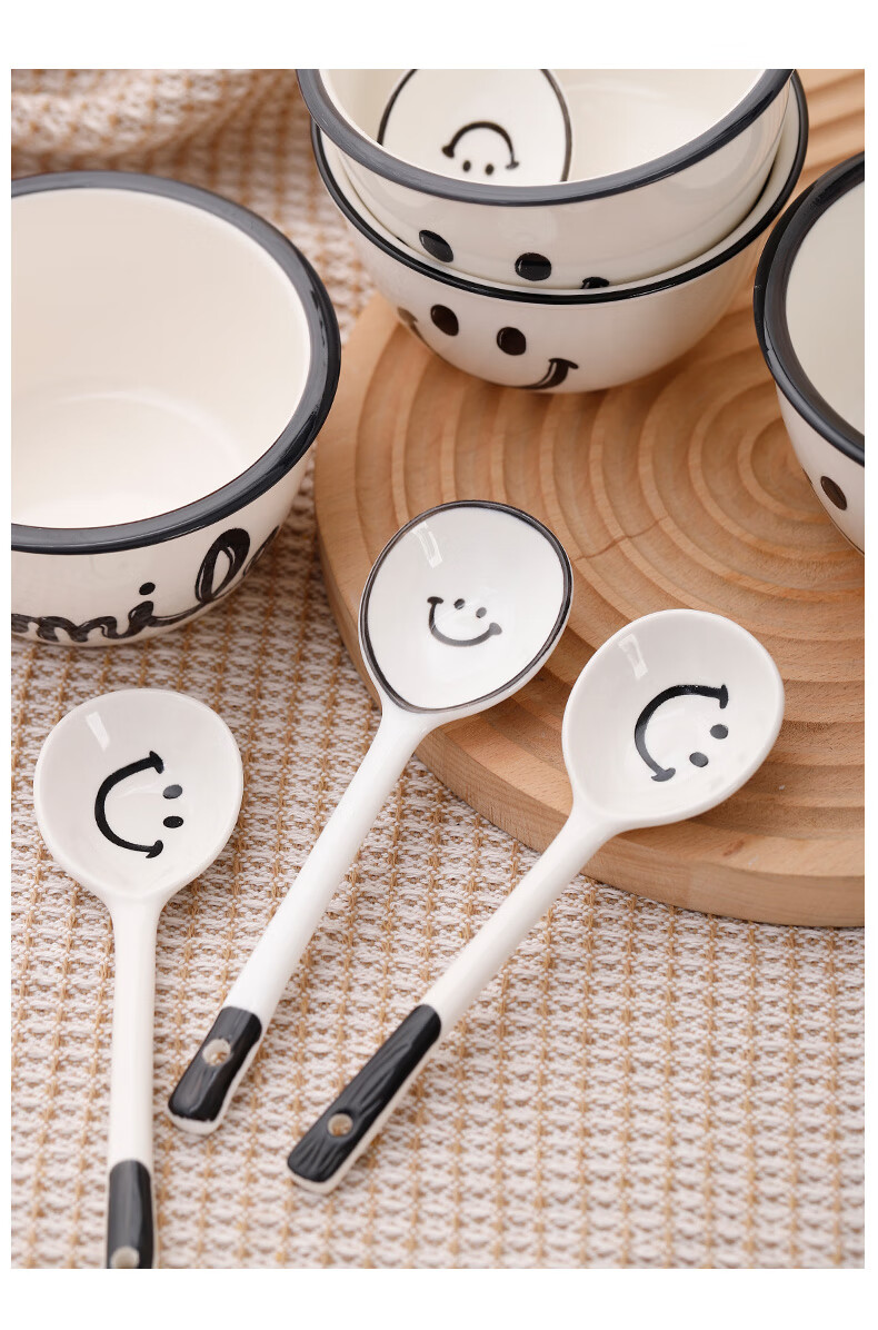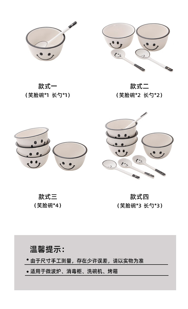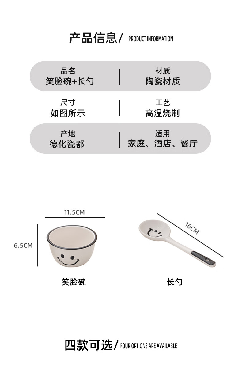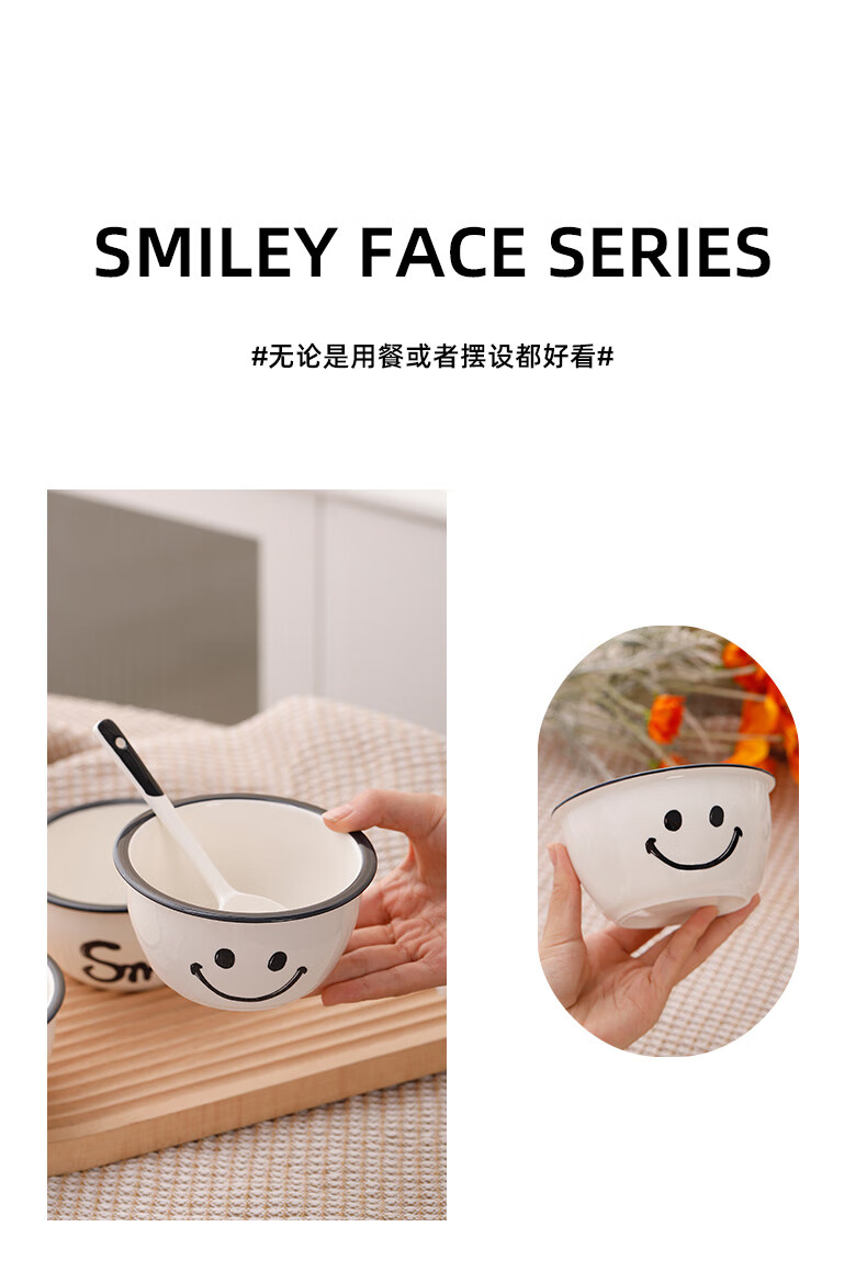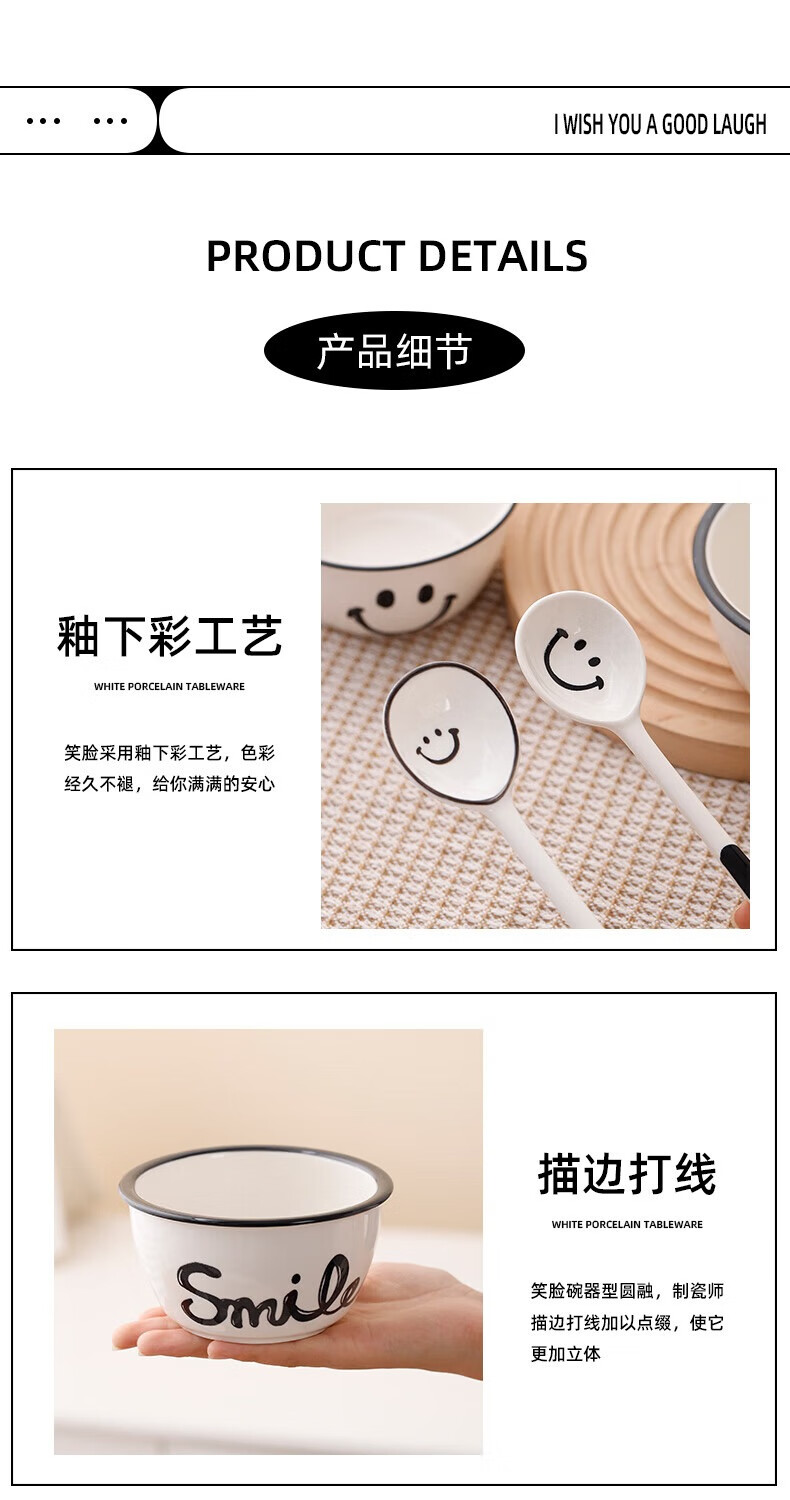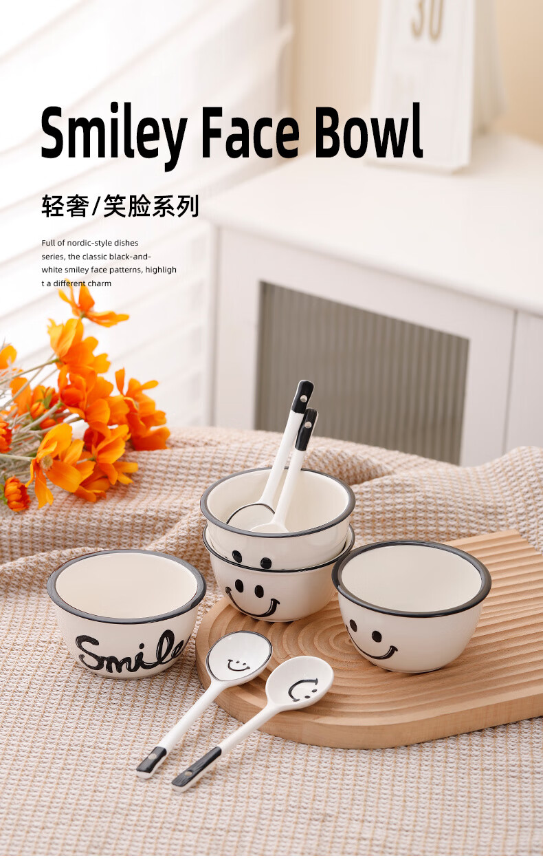 Super popular 4.75-inch rice bowl, large-capacity food supplement bowl, ceramic bowl, smiley face bowl, 2 bowls, 2 scoops