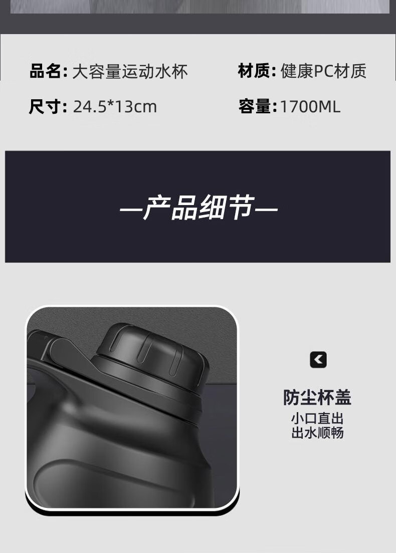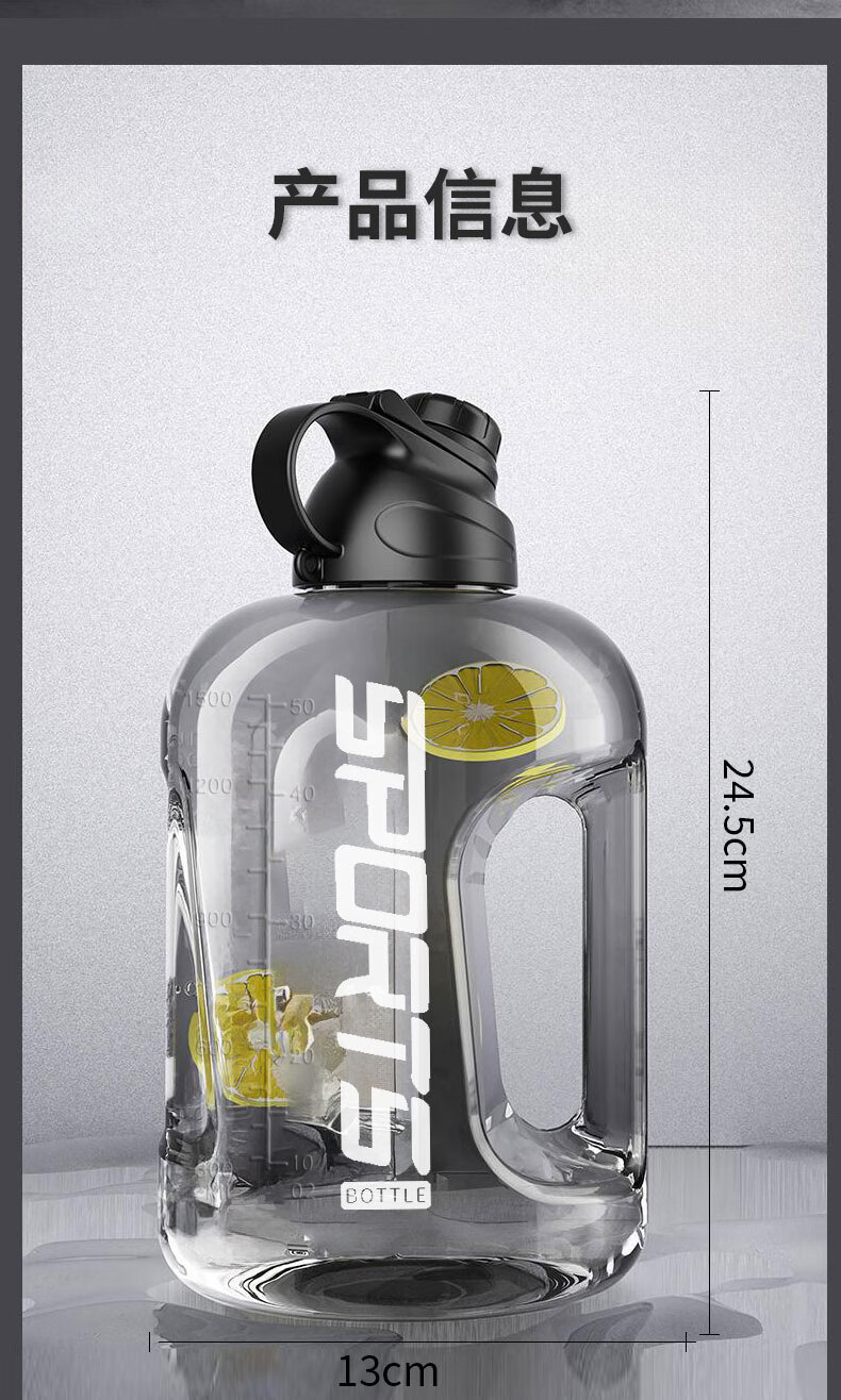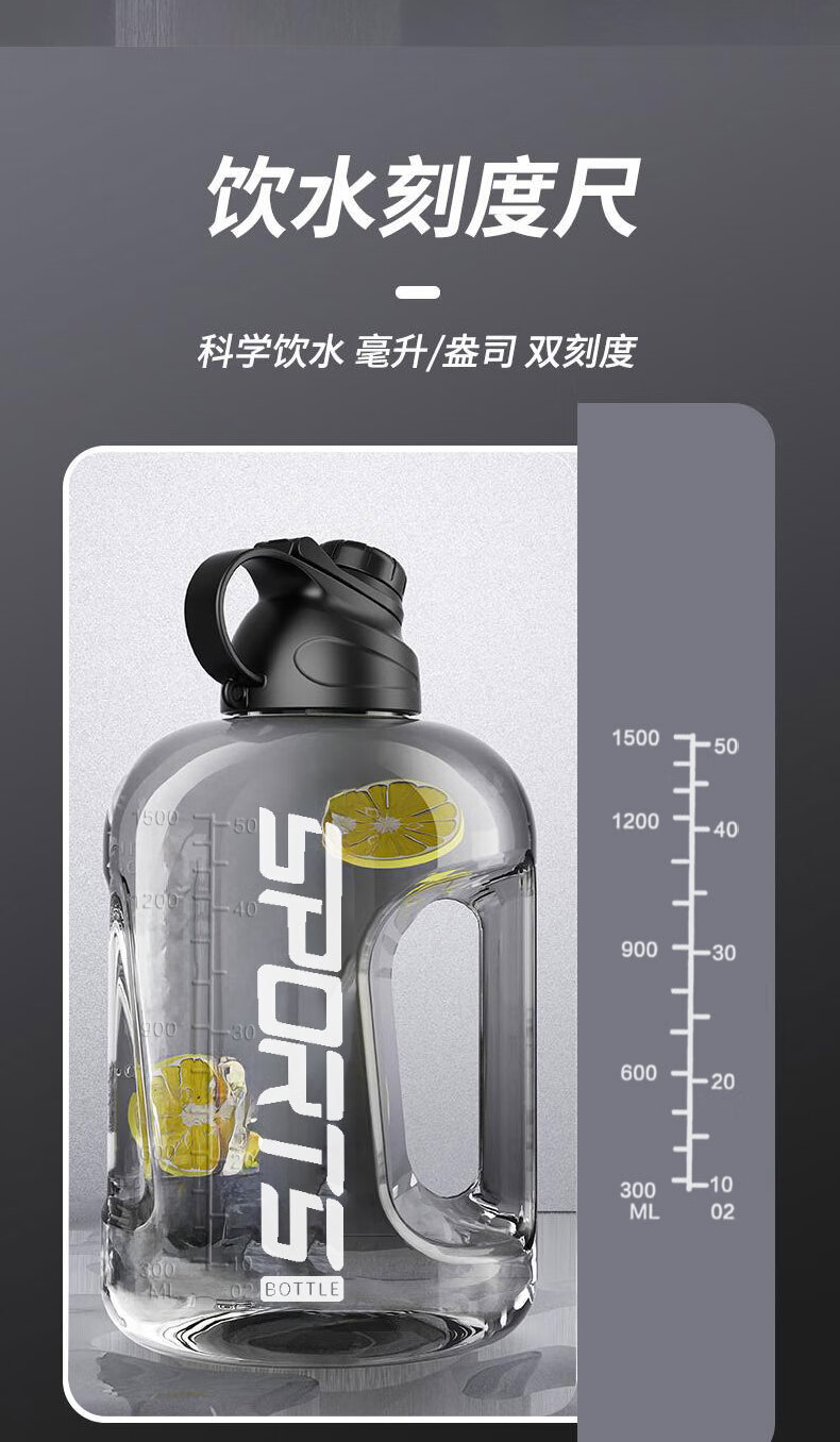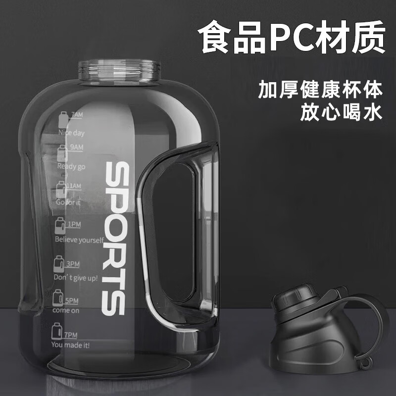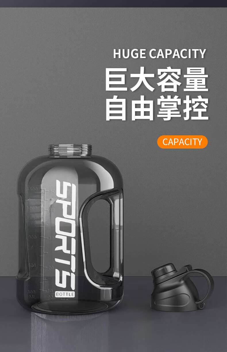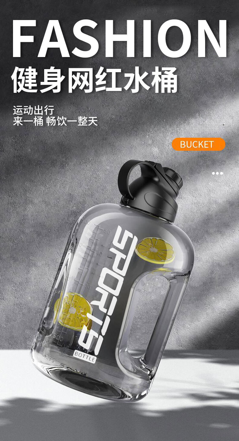 Internet celebrity drinking water cup large capacity tons cup for men and women outdoor portable sports fitness cold water bottle bottle bucket sports black 1 1700ml