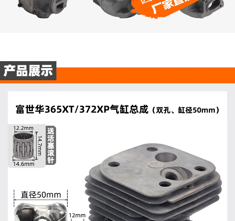 Chain saw cylinder assembly Husqvarna Husqvarna 365XT/372XP logging saw 445/450 cylinder liner piston ring Husqvarna 365XT/372XP double hole bore 50mm