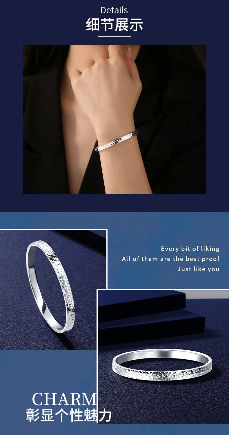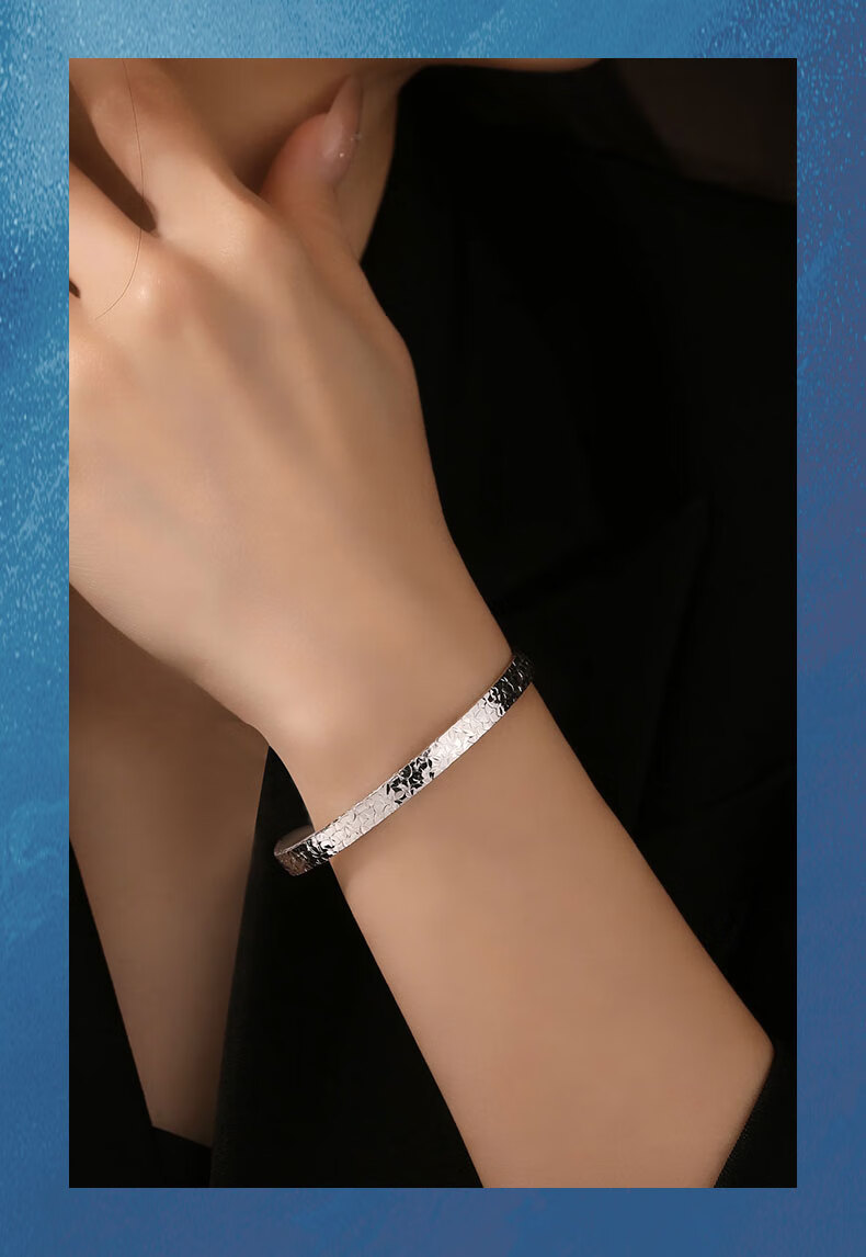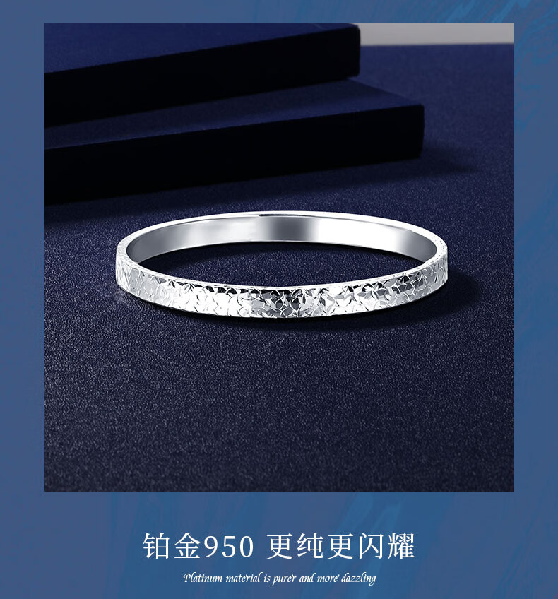 SHENGSHIQIYUAN platinum bracelet for women pt950 platinum bracelet solid bracelet new platinum crushed ice bracelet for girlfriend 30g inner diameter 54mm thick about 5mm
