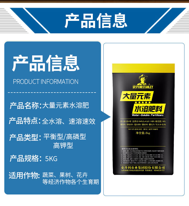 Stanley macroelement water-soluble fertilizer balanced high-nitrogen, high-phosphorus, high-potassium nitrogen fertilizer, phosphate fertilizer, potassium fertilizer, compound fertilizer 5kg*1 bag