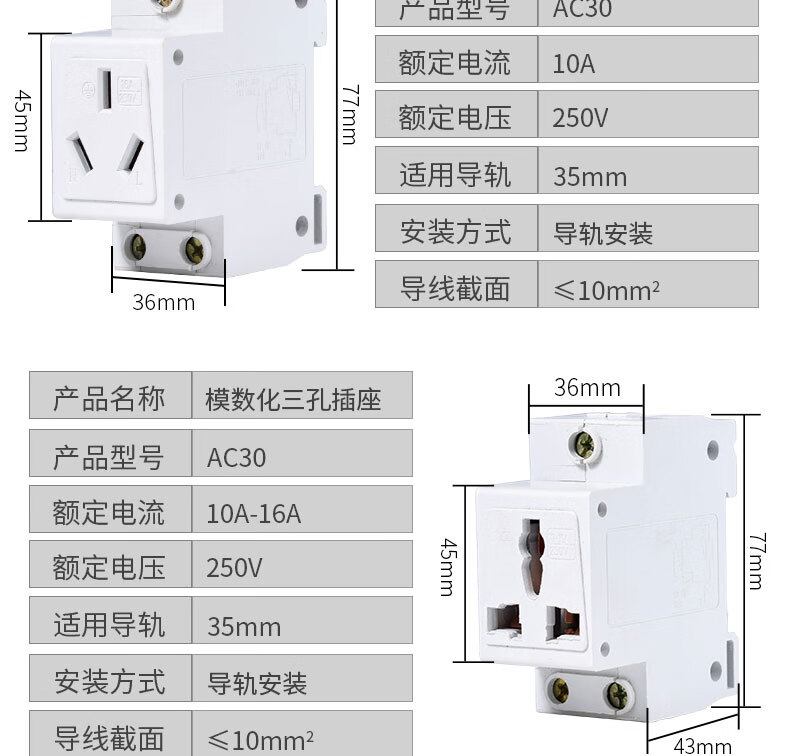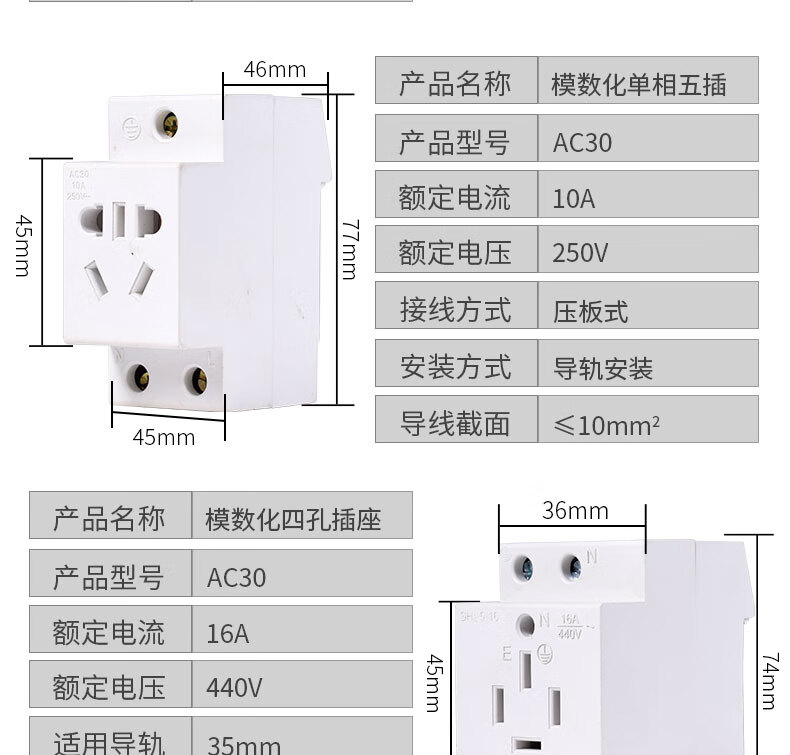 Modular socket 2 holes 3 holes 5 holes 10A-16A socket distribution box C45 rail power socket 5 holes 10A-16 universal
