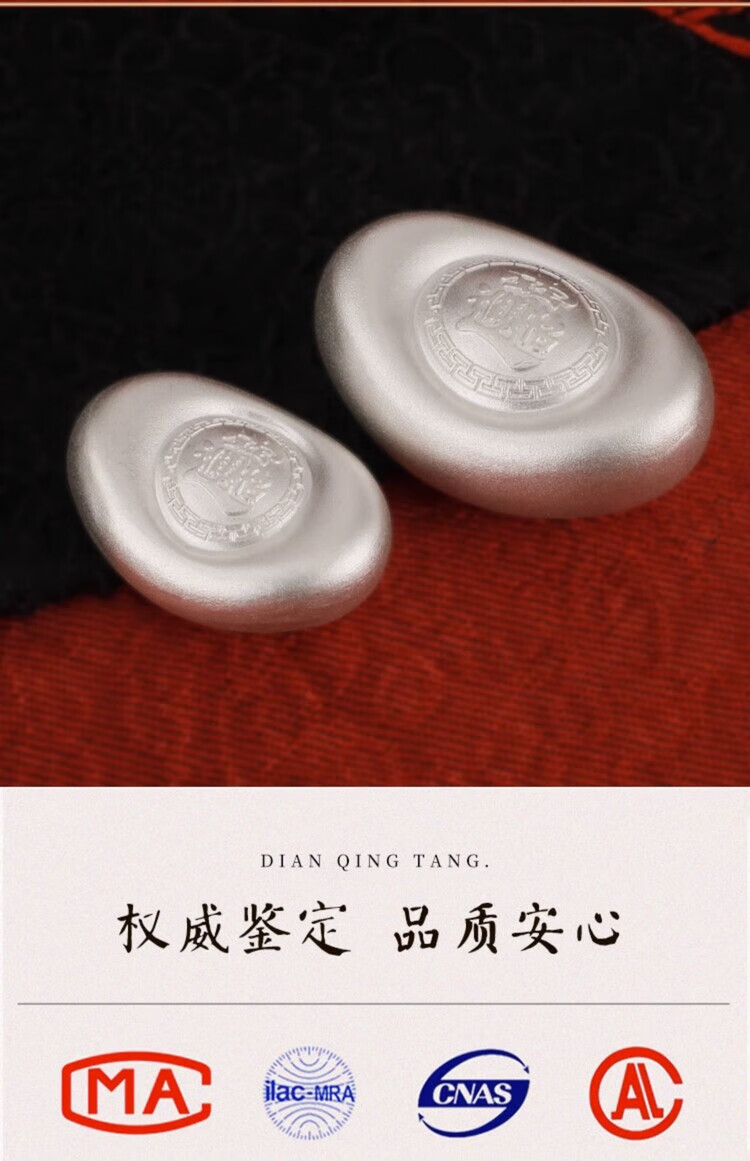 Dian Qingtang pure silver ingot 9999 pure silver solid boiled water small silver ingot high pure silver genuine high-end gift investment collection ornaments into 10g collection play gift