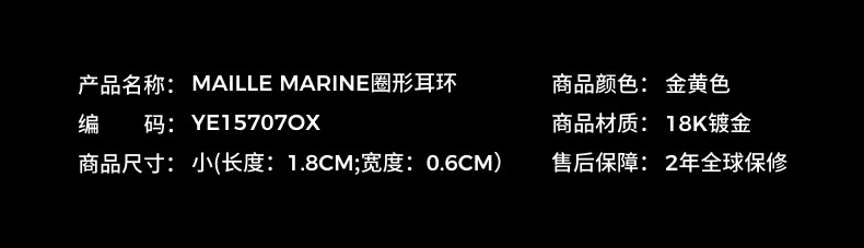 APM MonacoMaille Marine gold hoop earrings simple fashionable women's earrings birthday gift Maille Marine hoop earrings
