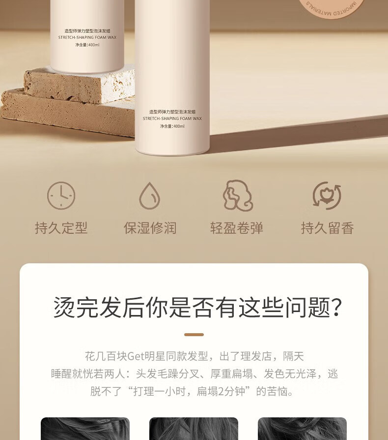 UORLL hair wax uorll foam hair wax elastin women's curly hair moisturizing fluffy wool high-end salon foam hair wax 400ml*3