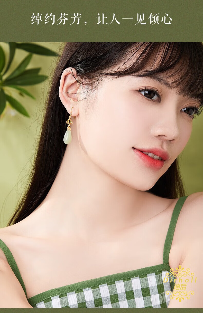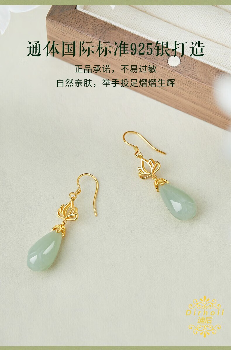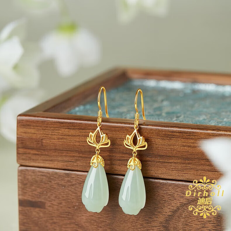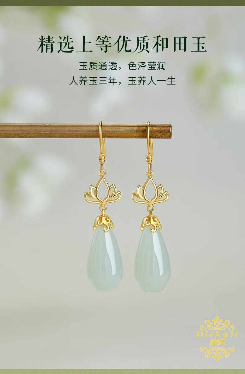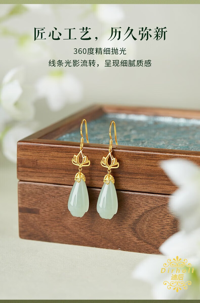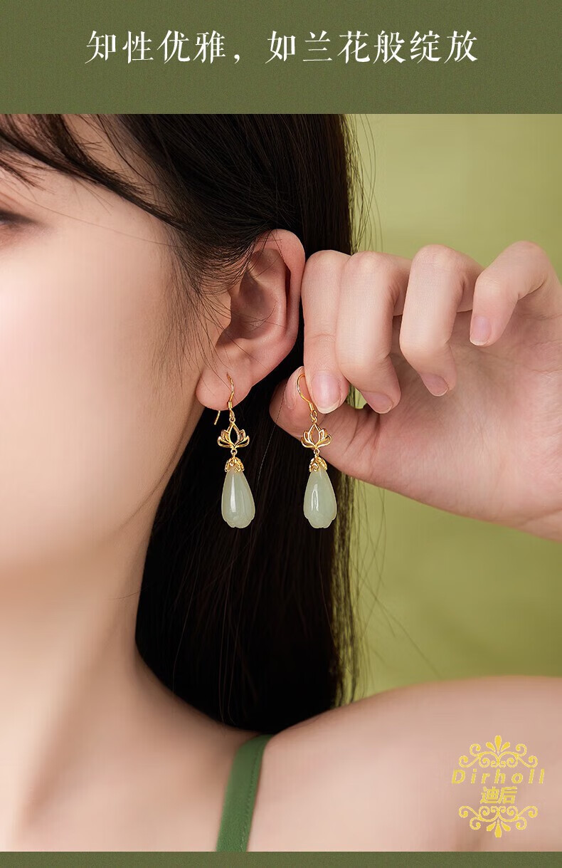 Dirholl light luxury Hetian jade earrings for women, elegant jade earrings, high-end earrings, birthday gifts for girlfriends and wives, golden magnolia earrings, exquisite high-end gift boxes