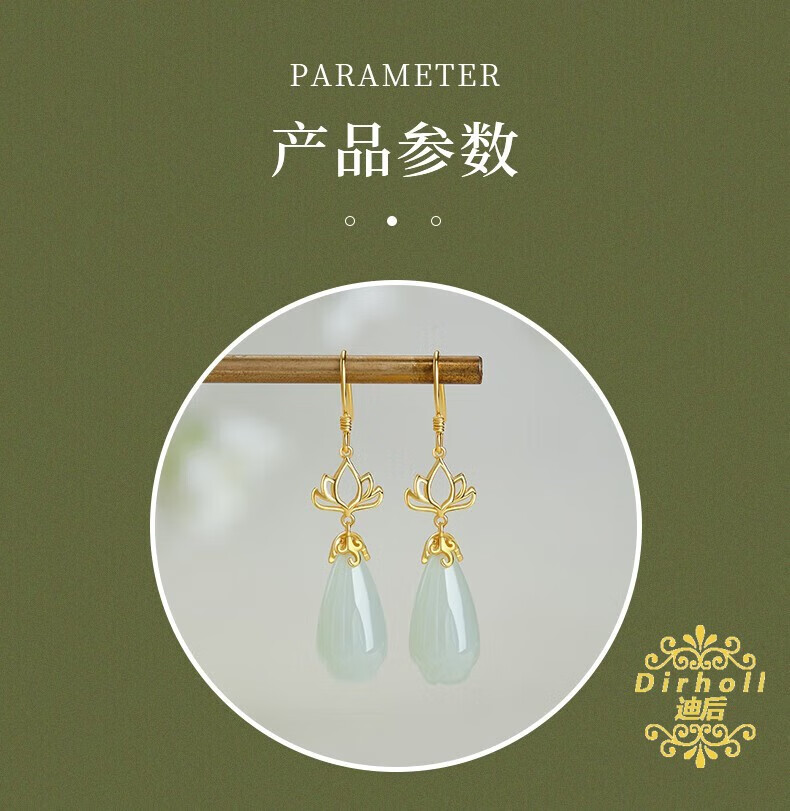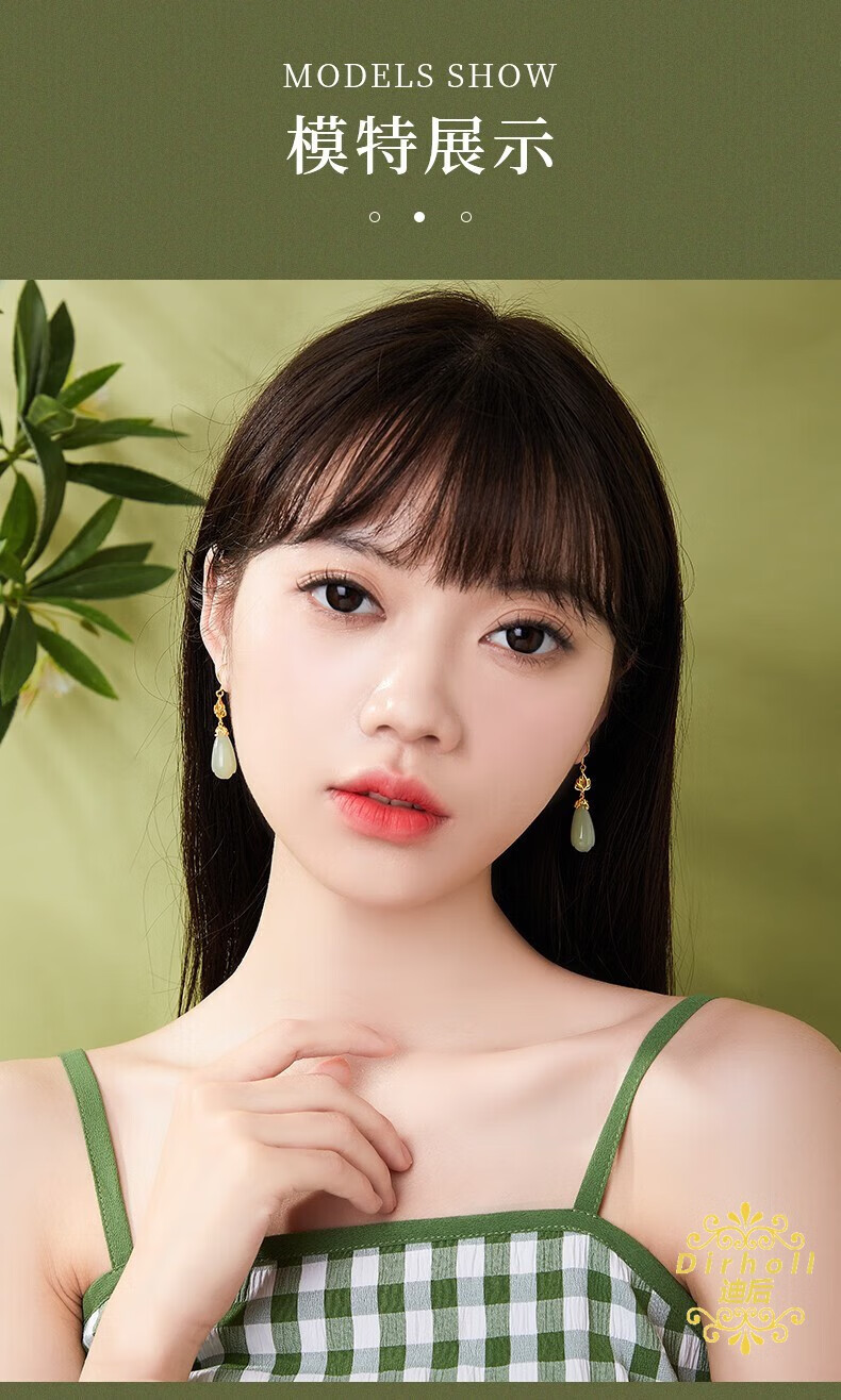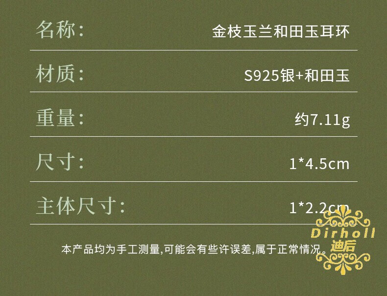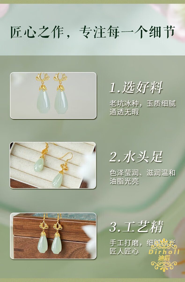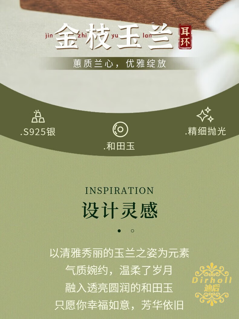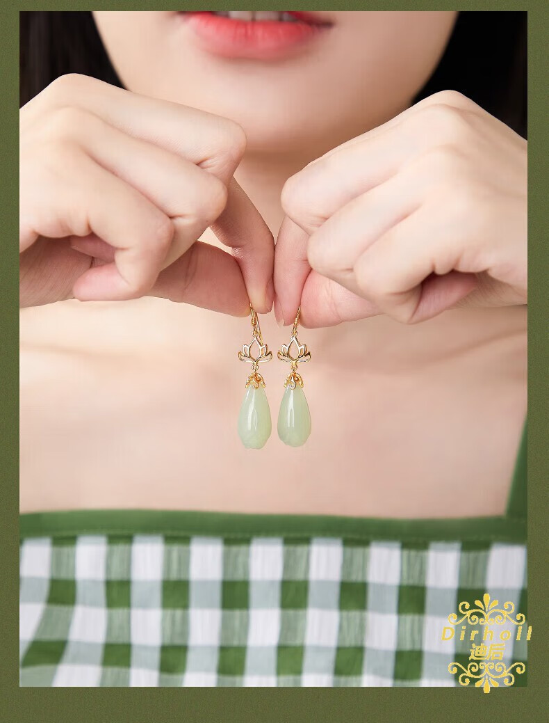 Dirholl light luxury Hetian jade earrings for women, elegant jade earrings, high-end earrings, birthday gifts for girlfriends and wives, golden magnolia earrings, exquisite high-end gift boxes