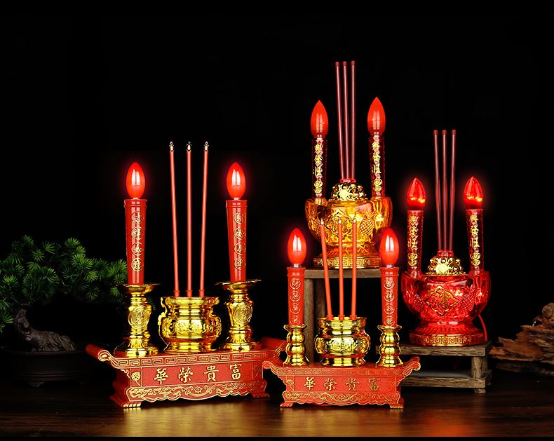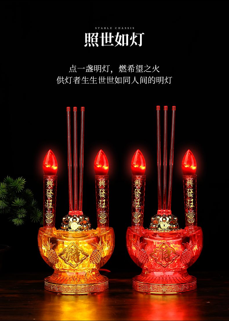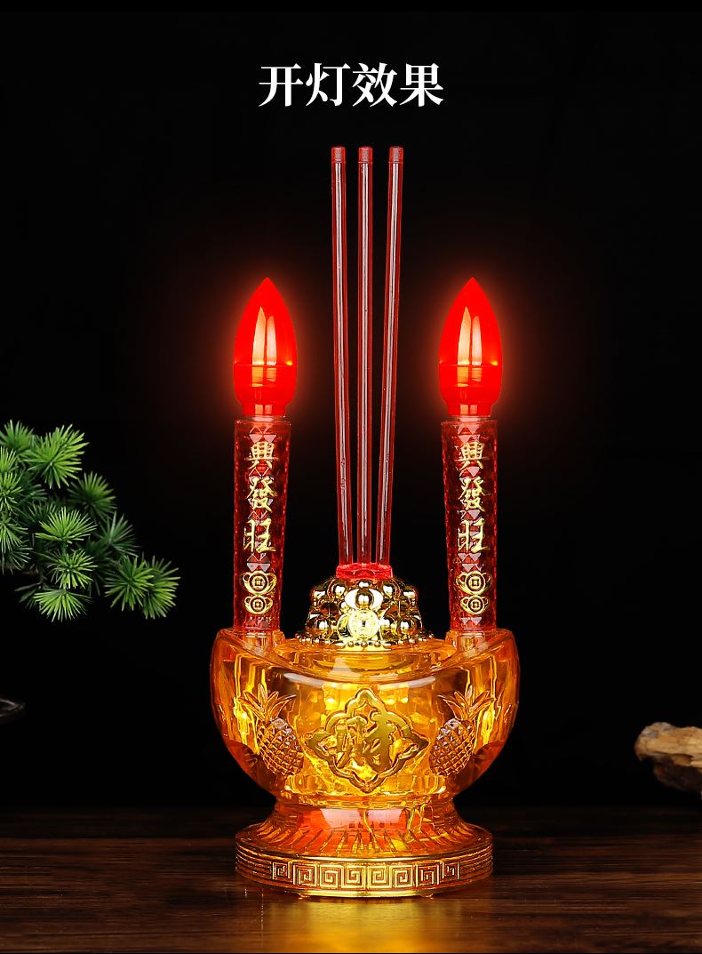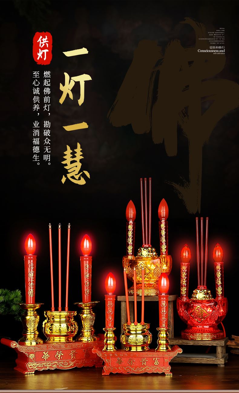 Electric Incense Burner Electric Candle Lamp Electronic Incense Candle Plug-in Candle Lamp Worship God Household LED Electronic Incense Burner Offering Candlestick Small LED Plug-in Model