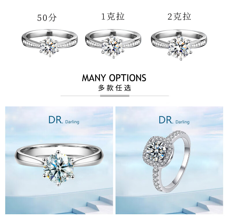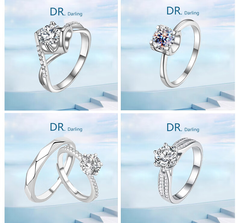 DR. DARLING Moissanite diamond ring for women, one carat, open, for marriage, engagement, anniversary gift, closed, for girlfriend, for wife, six-pointed star diamond ring - 50 points, live/closed