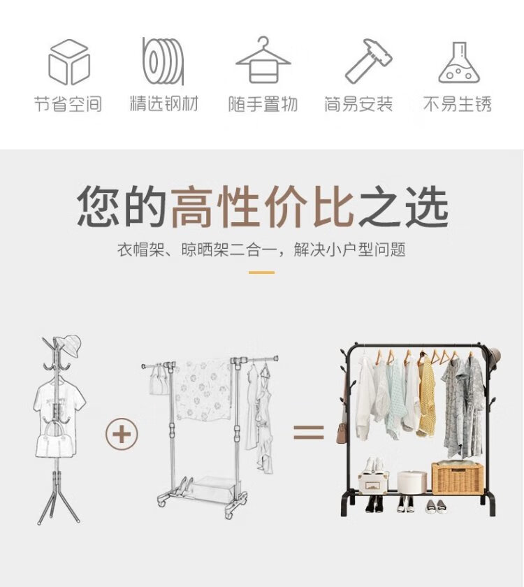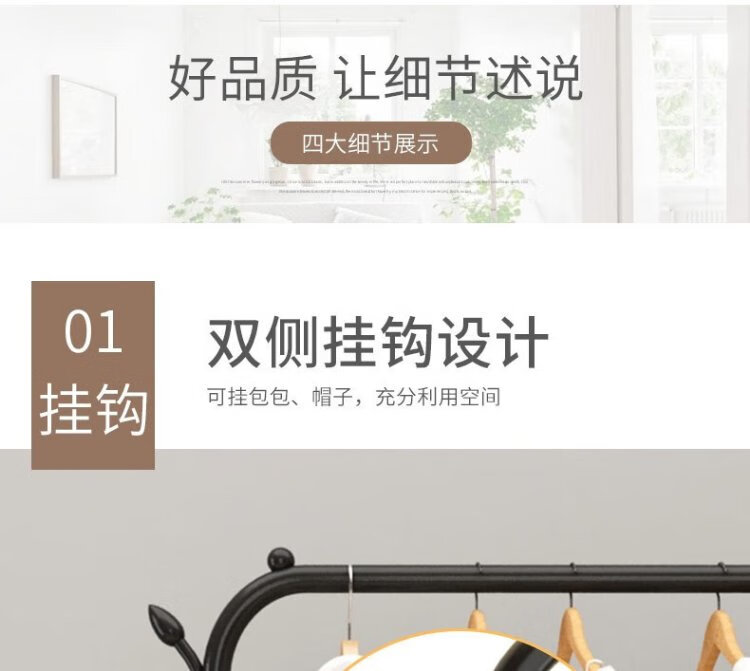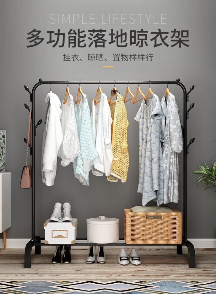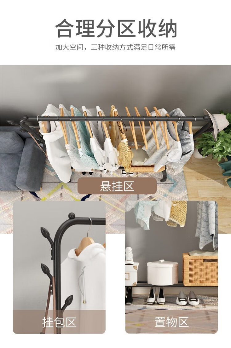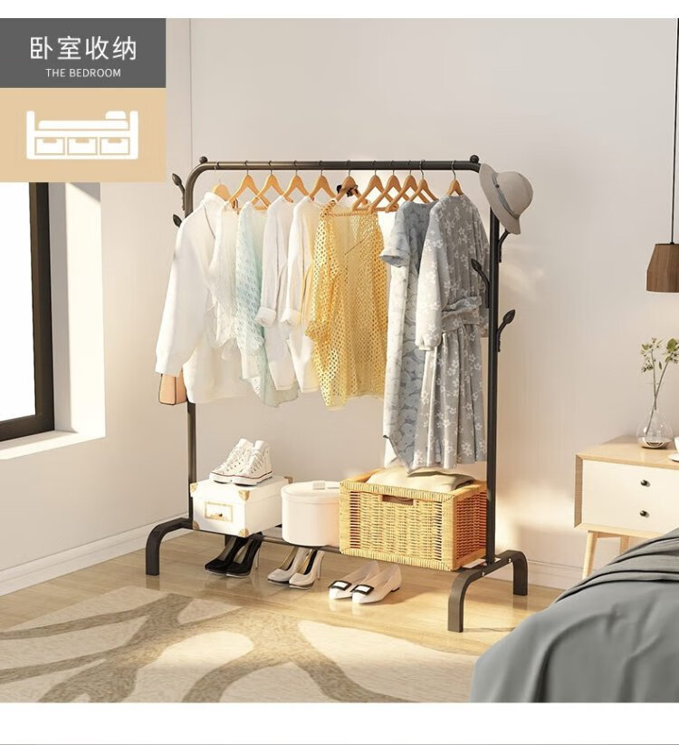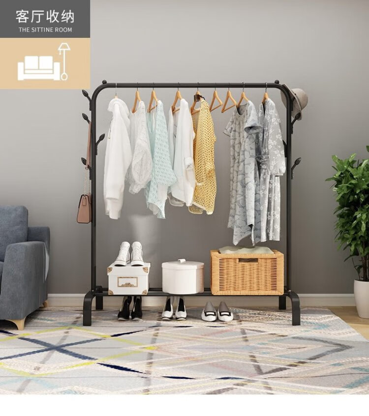 Nifeng simple coat rack floor-standing multi-functional home living room indoor clothes drying rack entry floor bedroom clothes rack basic model black 110cm wide-bilateral tree branches