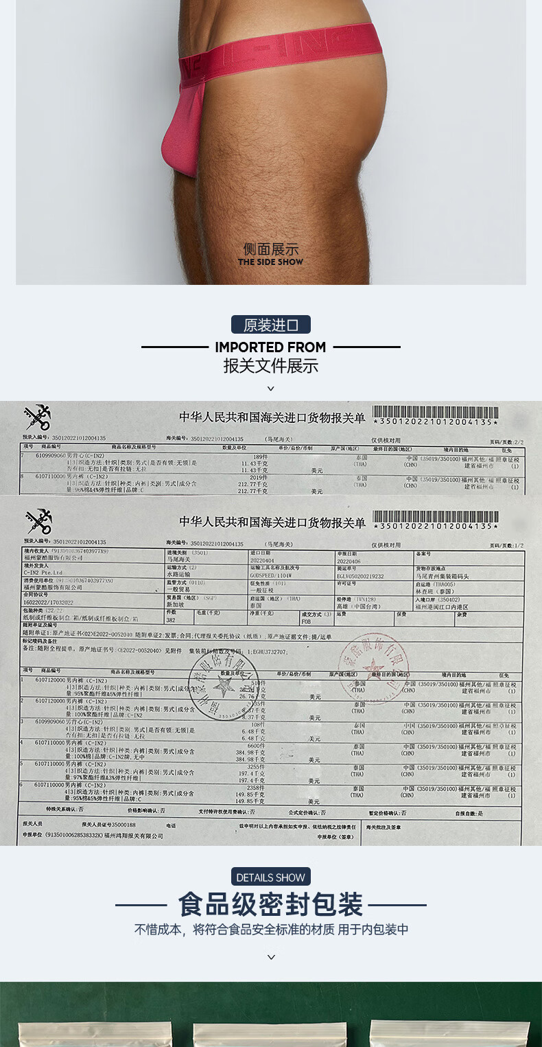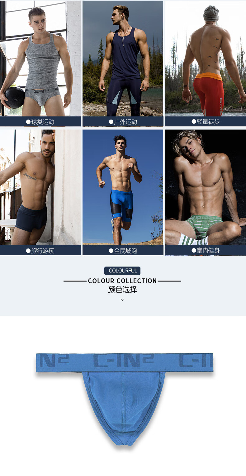 C-IN2 summer new men's thong combed cotton breathable U protruding buttocks sexy low-waist single thong for men 4022RT blue 495- 1 pair L suitable for 2 feet 6-2 feet 7 waist (34-36 size)