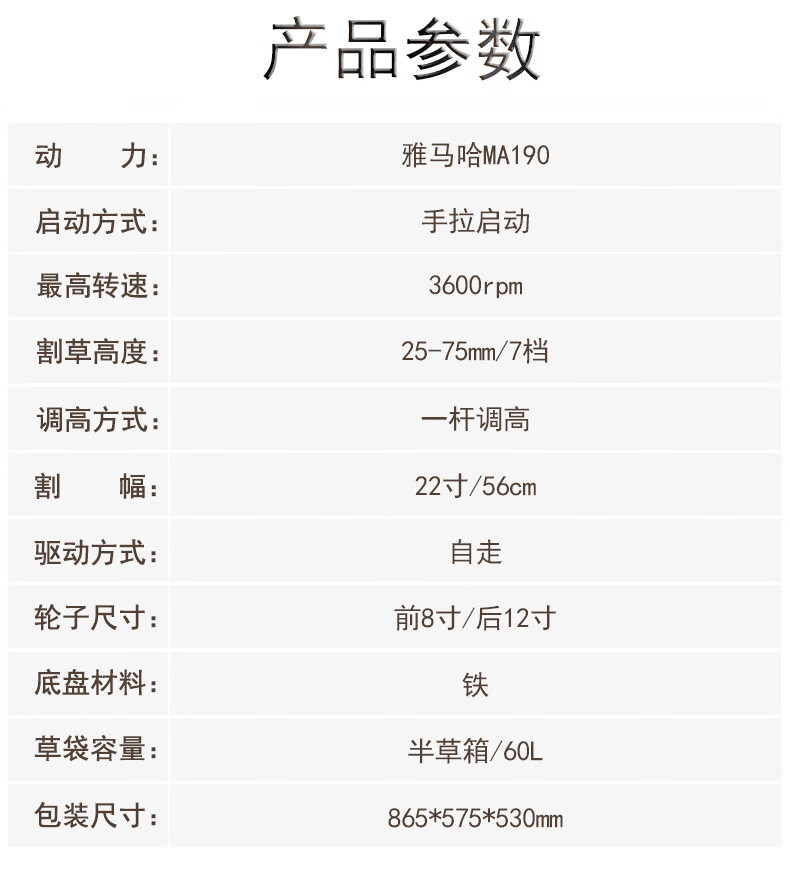 Yamaha imported power lawn mower 22-inch self-propelled lawn mower push lawn mower lawn mower gasoline engine lawn mower Yamaha 22-inch MA190 power self-propelled