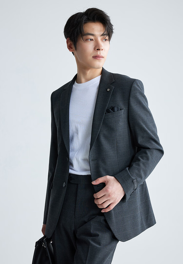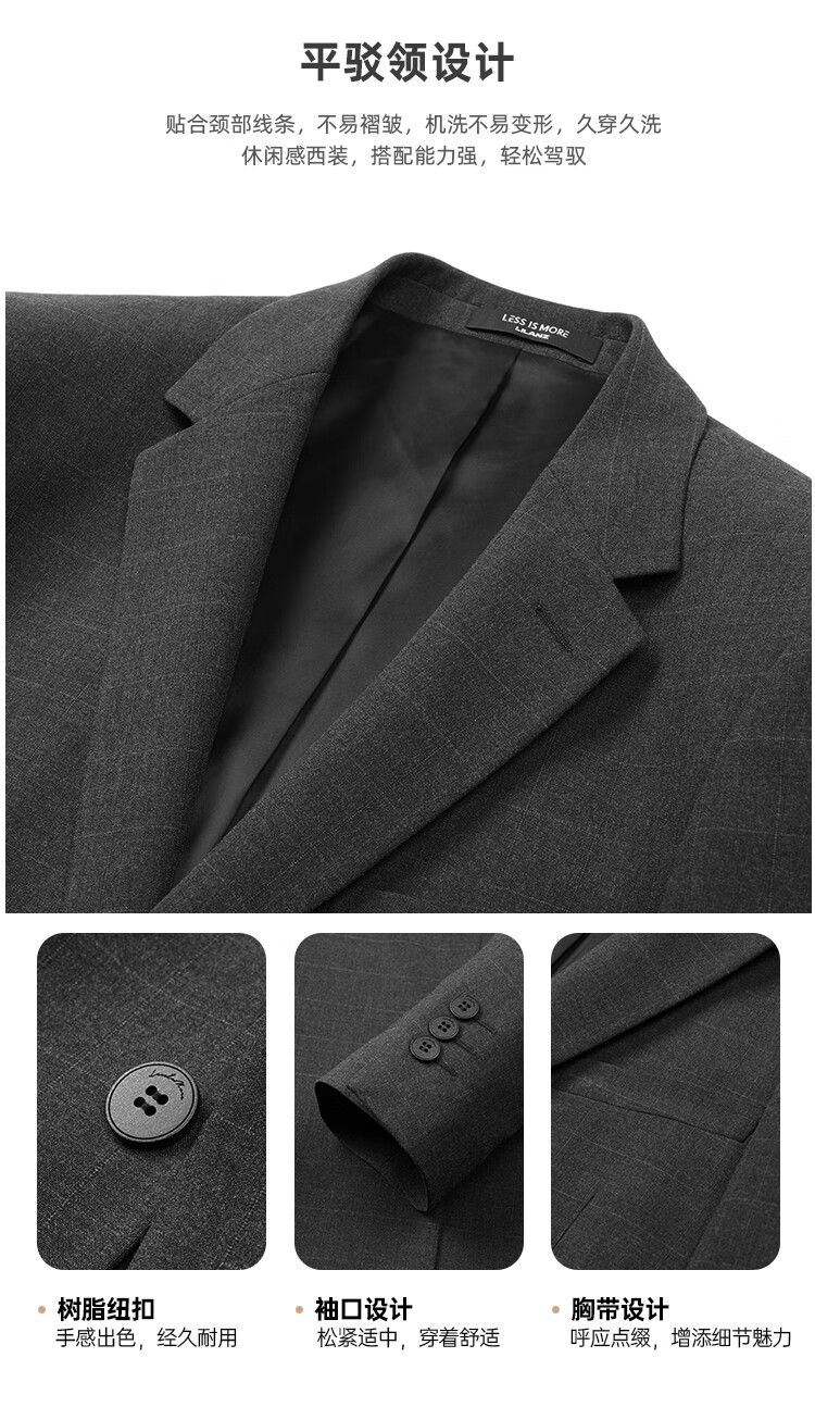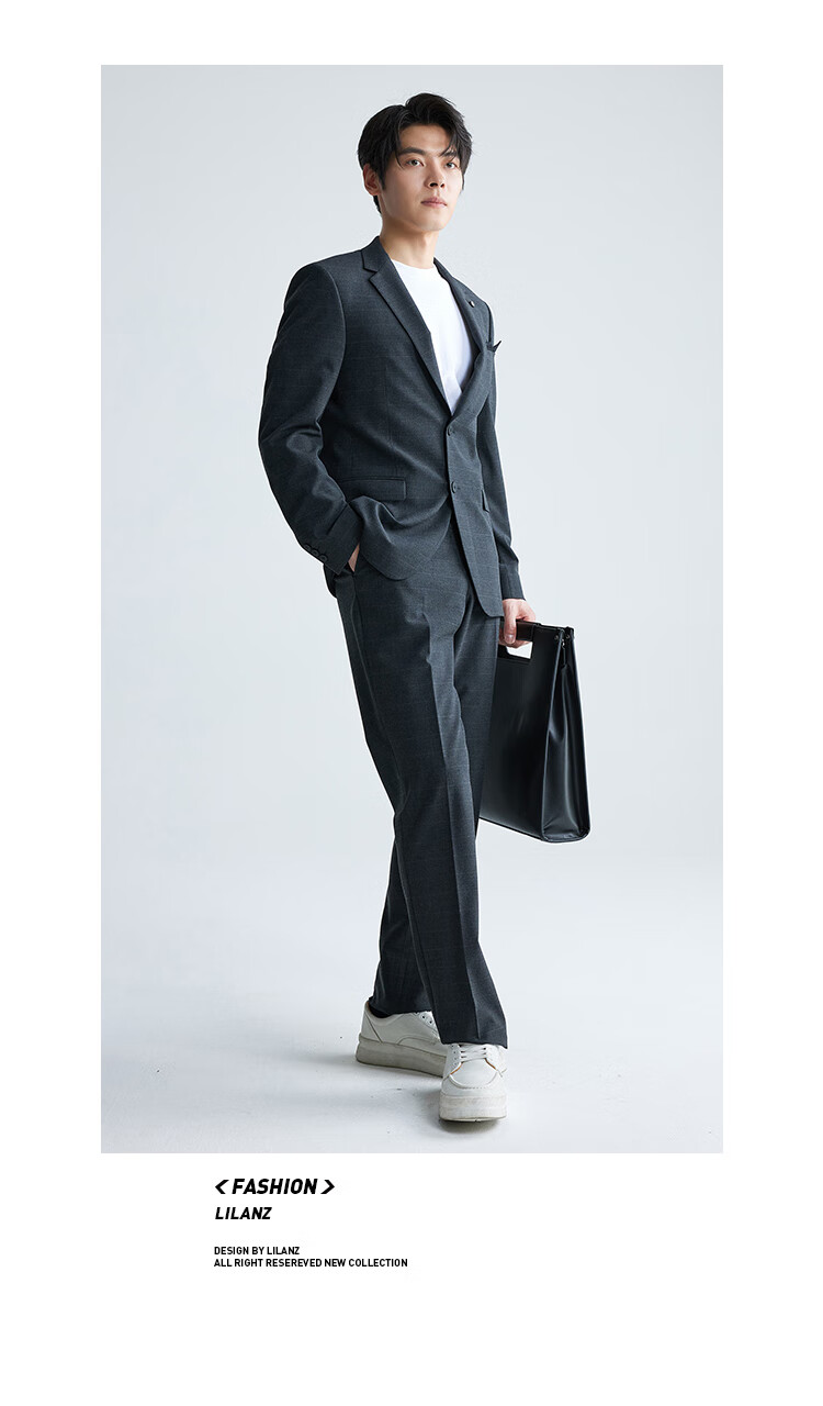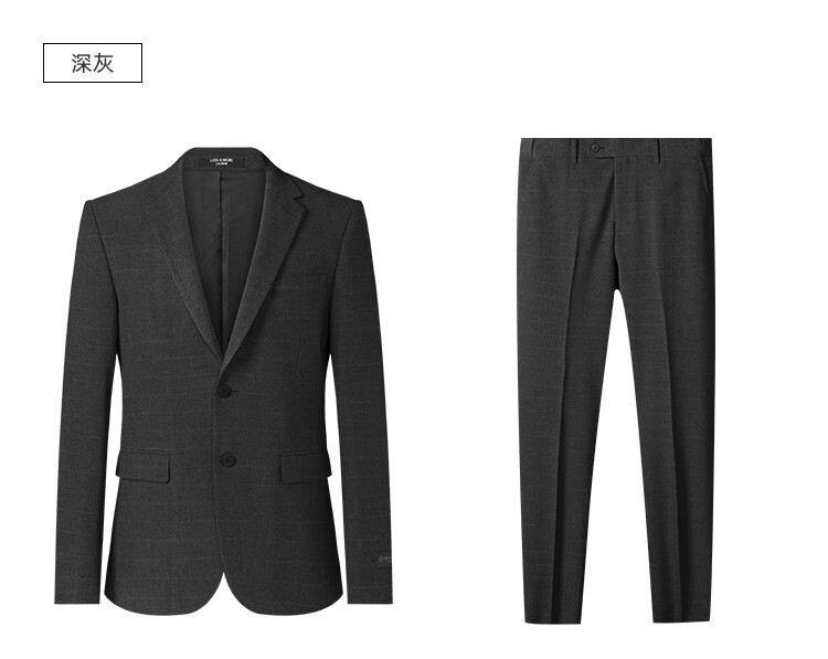 Lilang Youth Business Men's Double Stretch Suit Suit Men's Formal Imitation Wool Plaid Suit Two-piece Set Dark Gray 165A