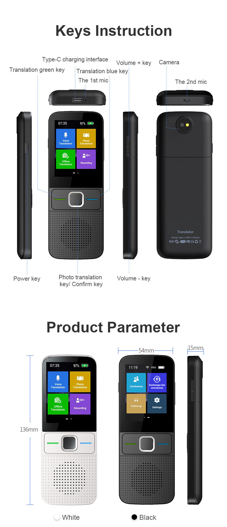 Huawei machine is suitable for multi-language translator, simultaneous translation, offline intelligent English, traveling abroad, Chinese, English, Japanese and Korean, white