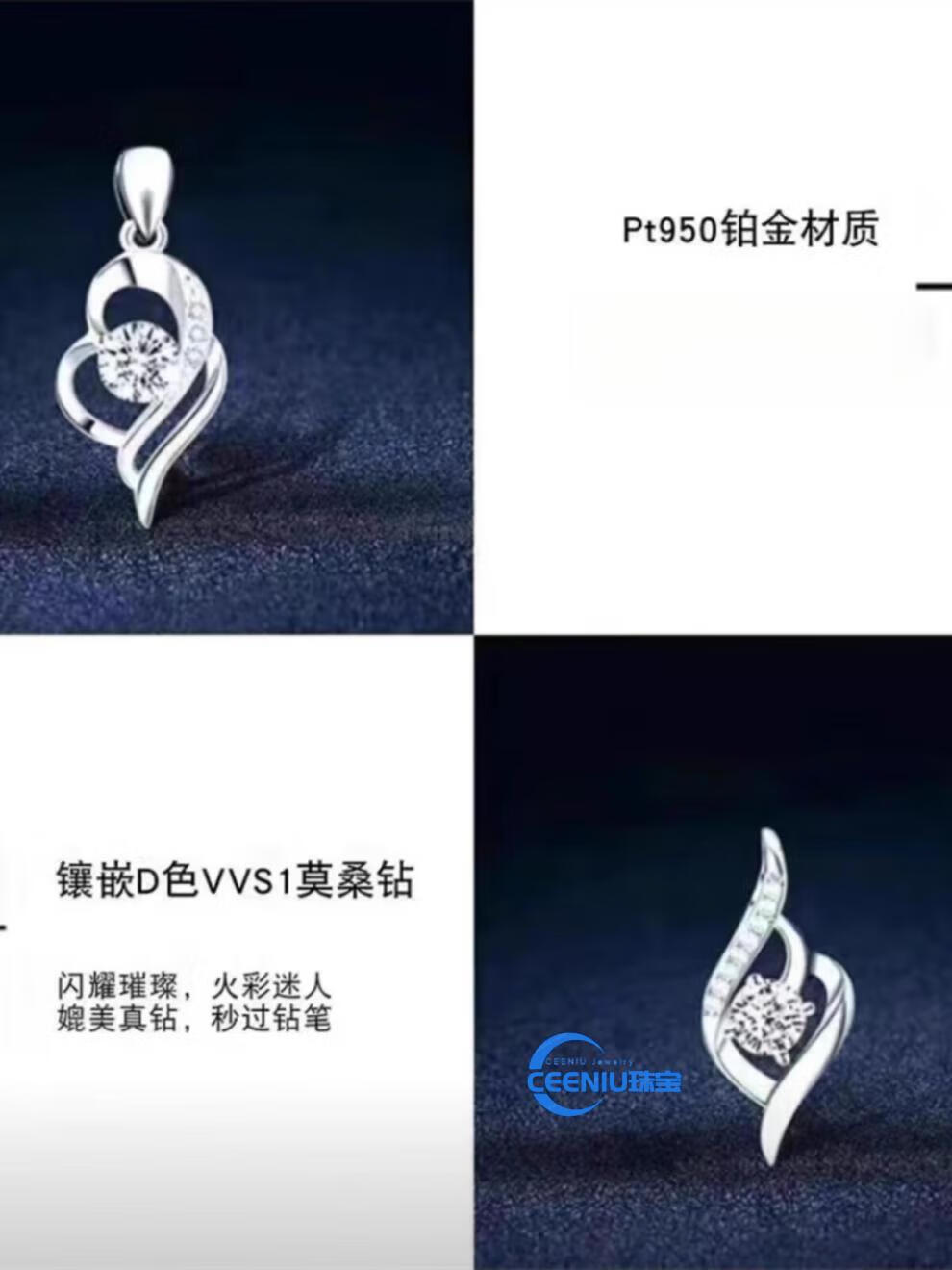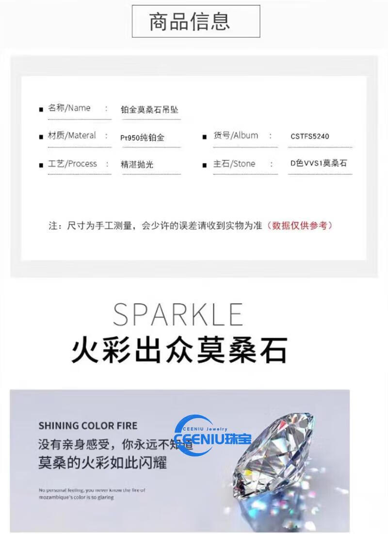 CEENIU Fat Donglai same style pt950 platinum pendant without chain women's necklace single pendant single 18kl white gold clavicle chain Lucky you white diamond