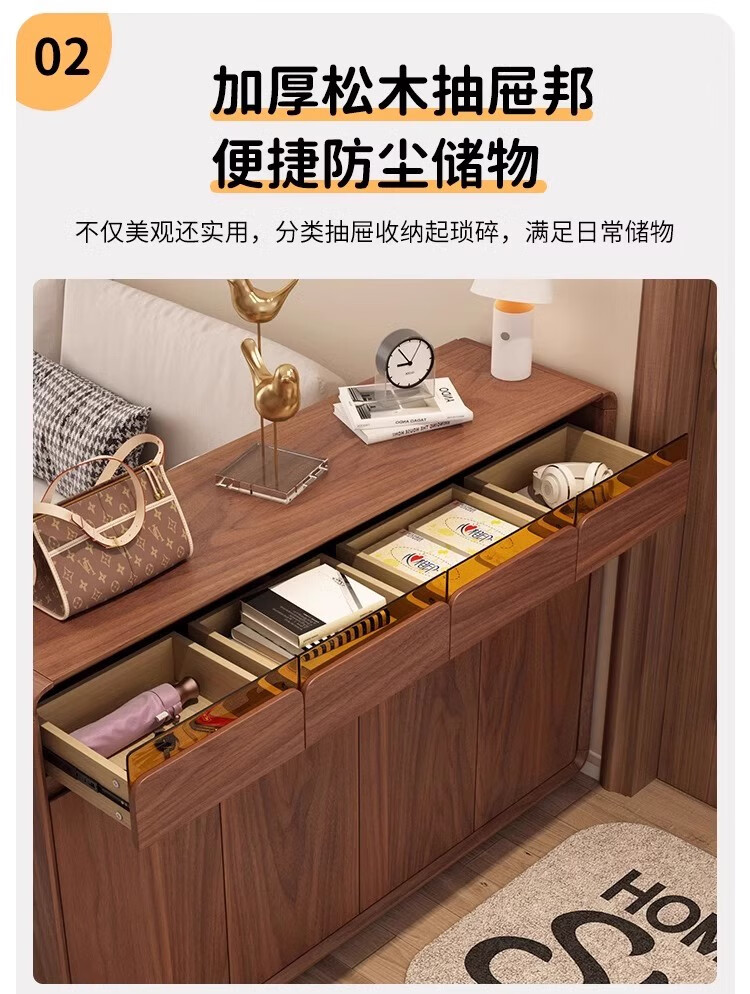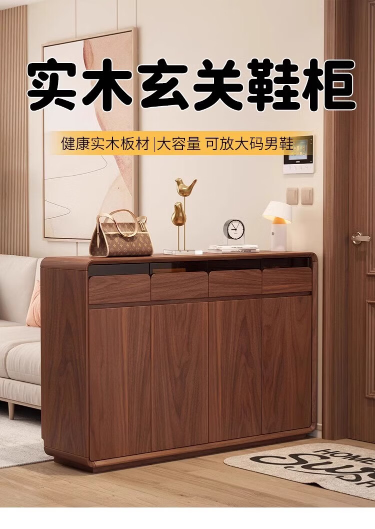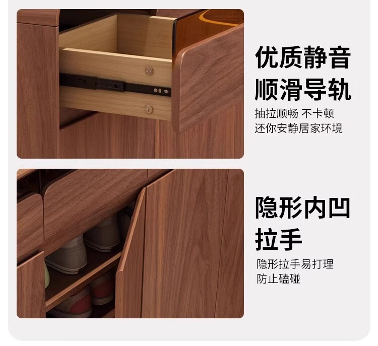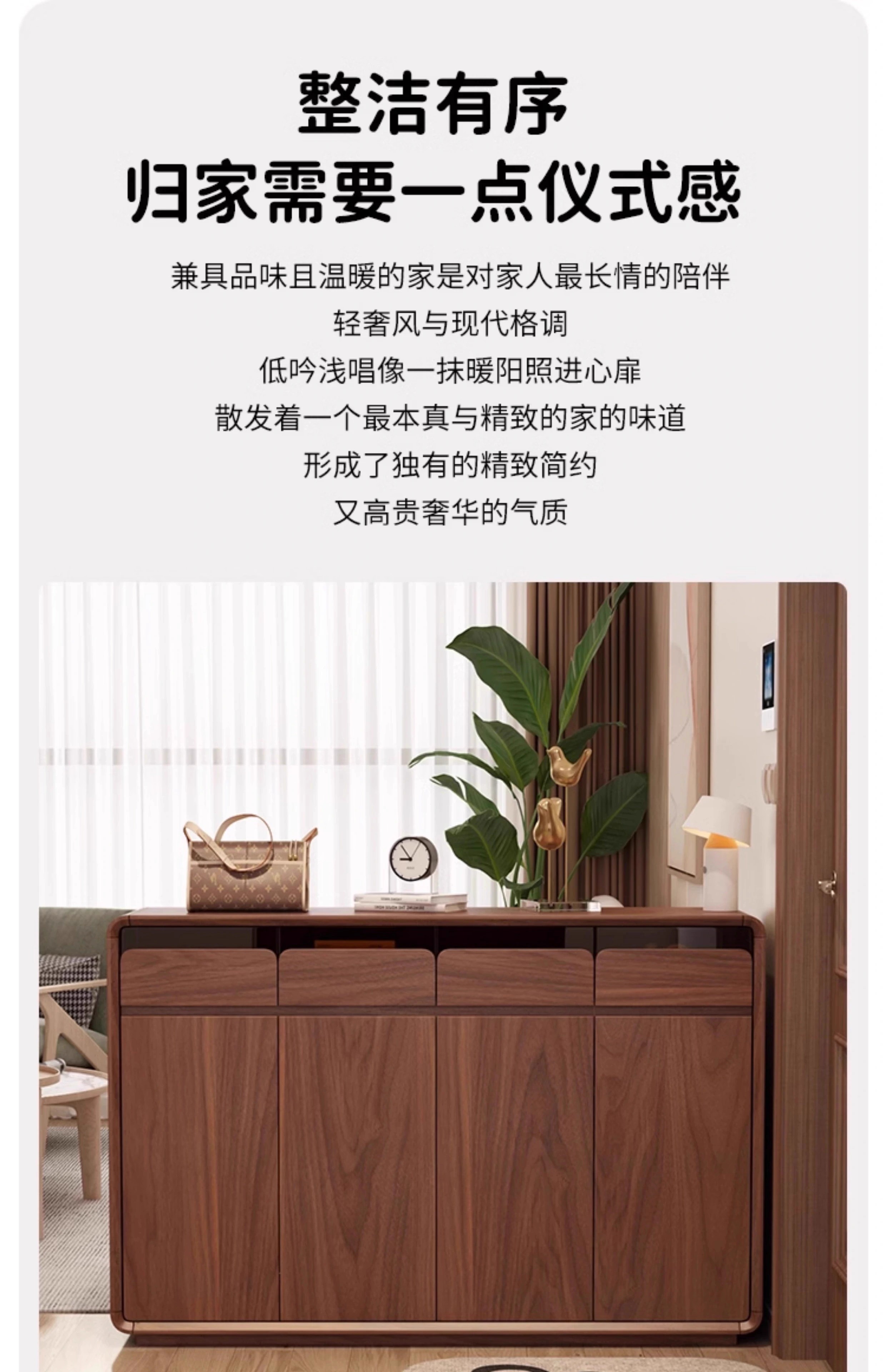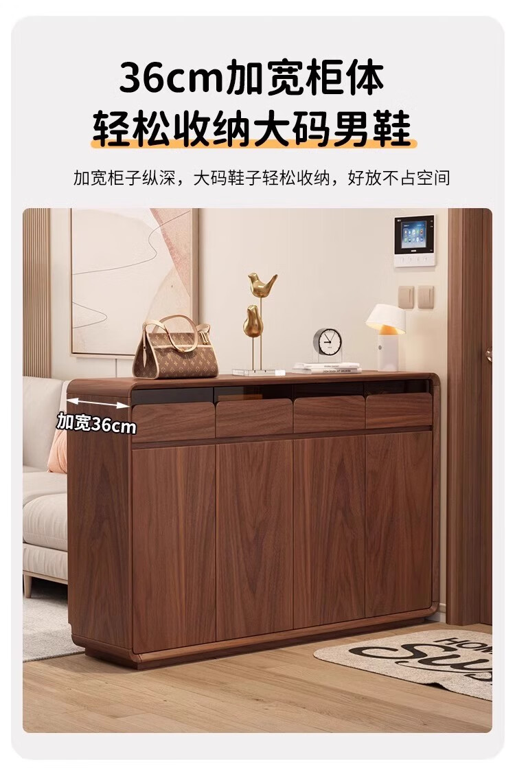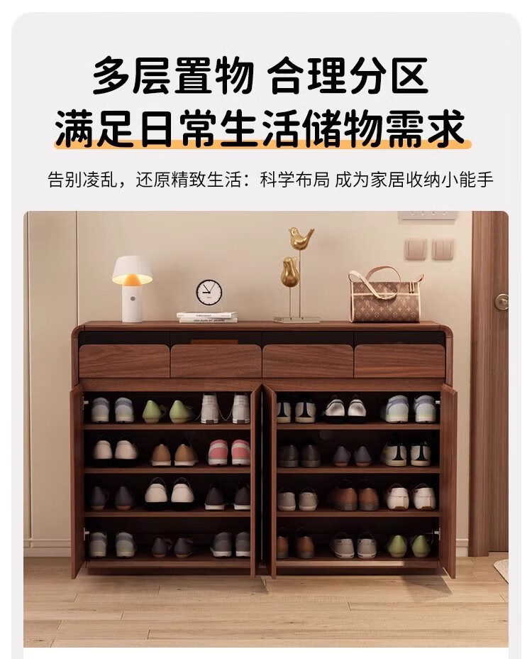Zhixin Muwang solid wood shoe cabinet home door locker entry cabinet storage cabinet integrated wall living room entrance cabinet corridor outside walnut color 50*36*90.5cm