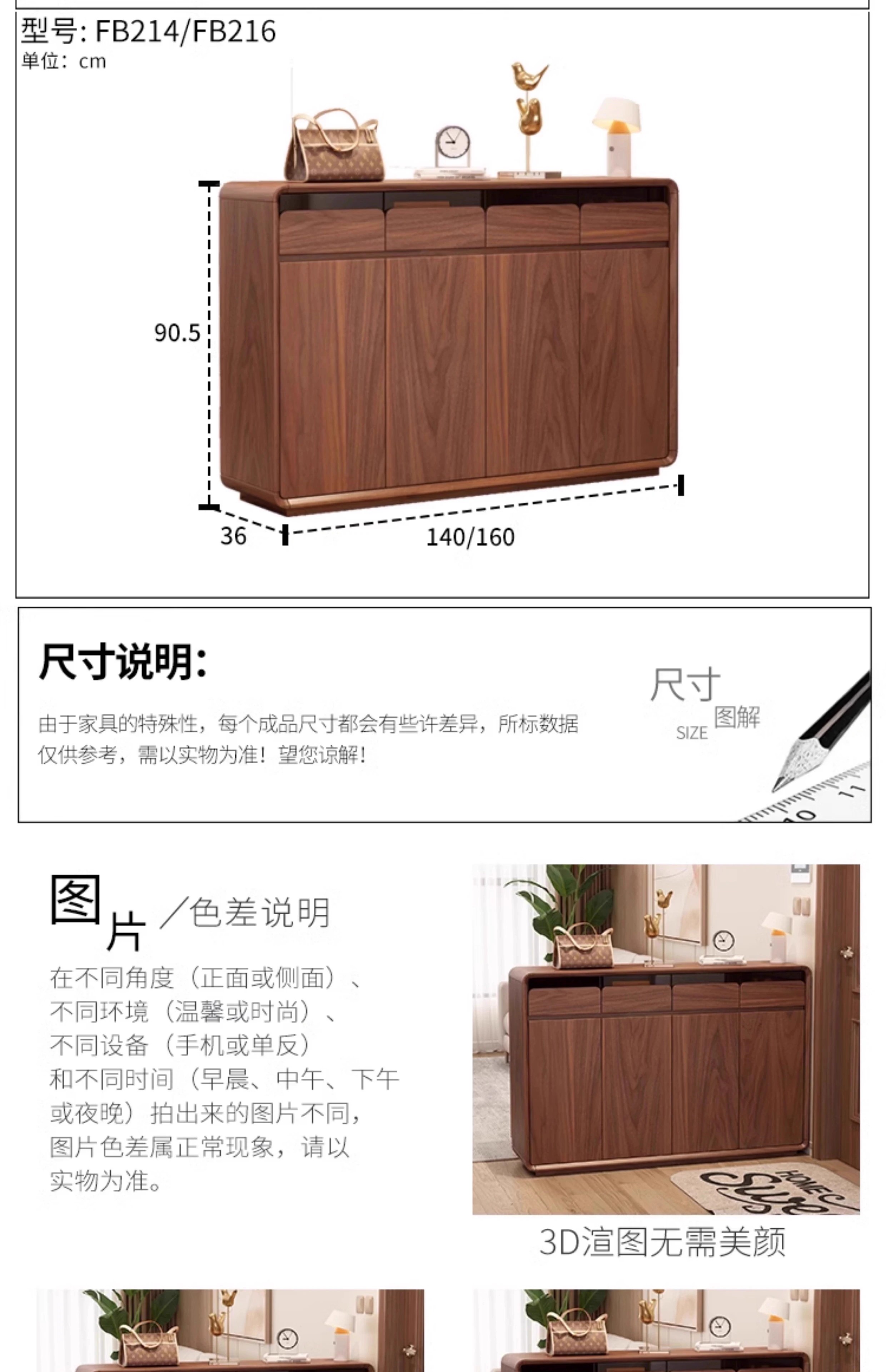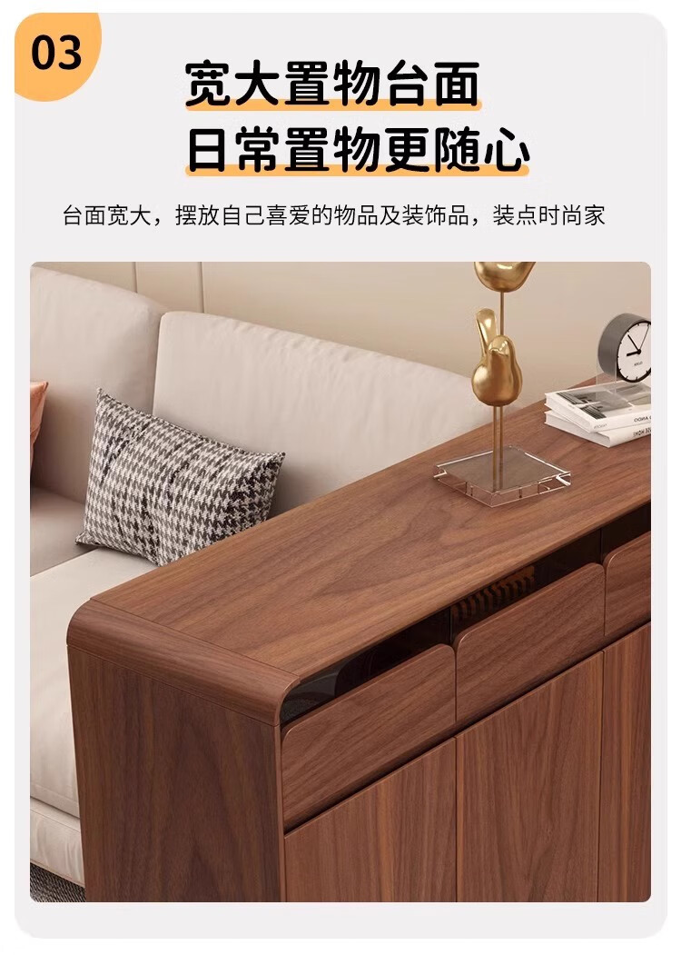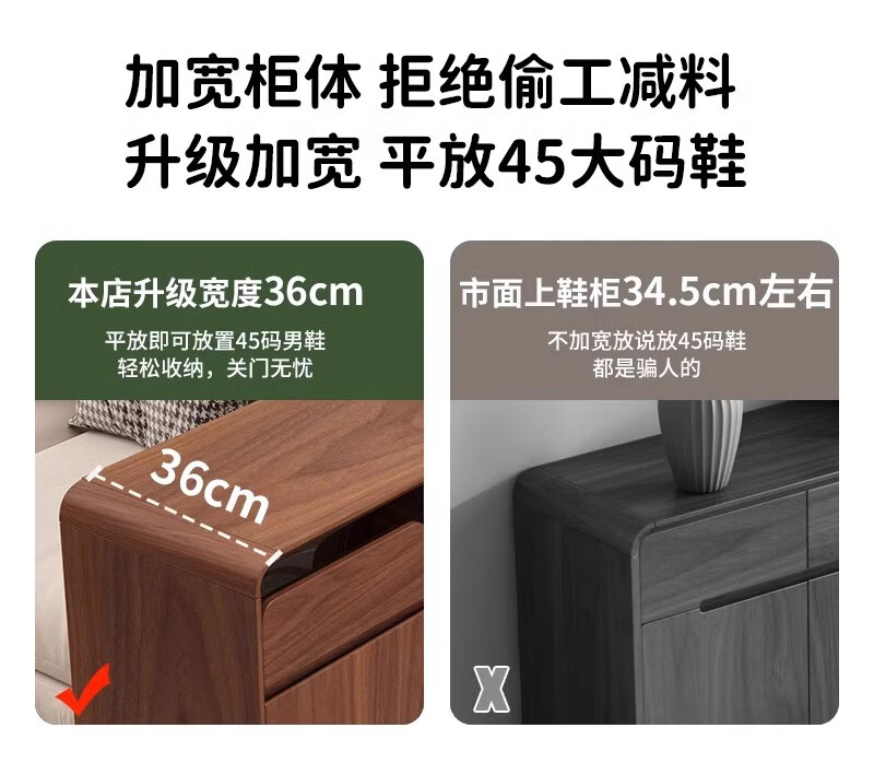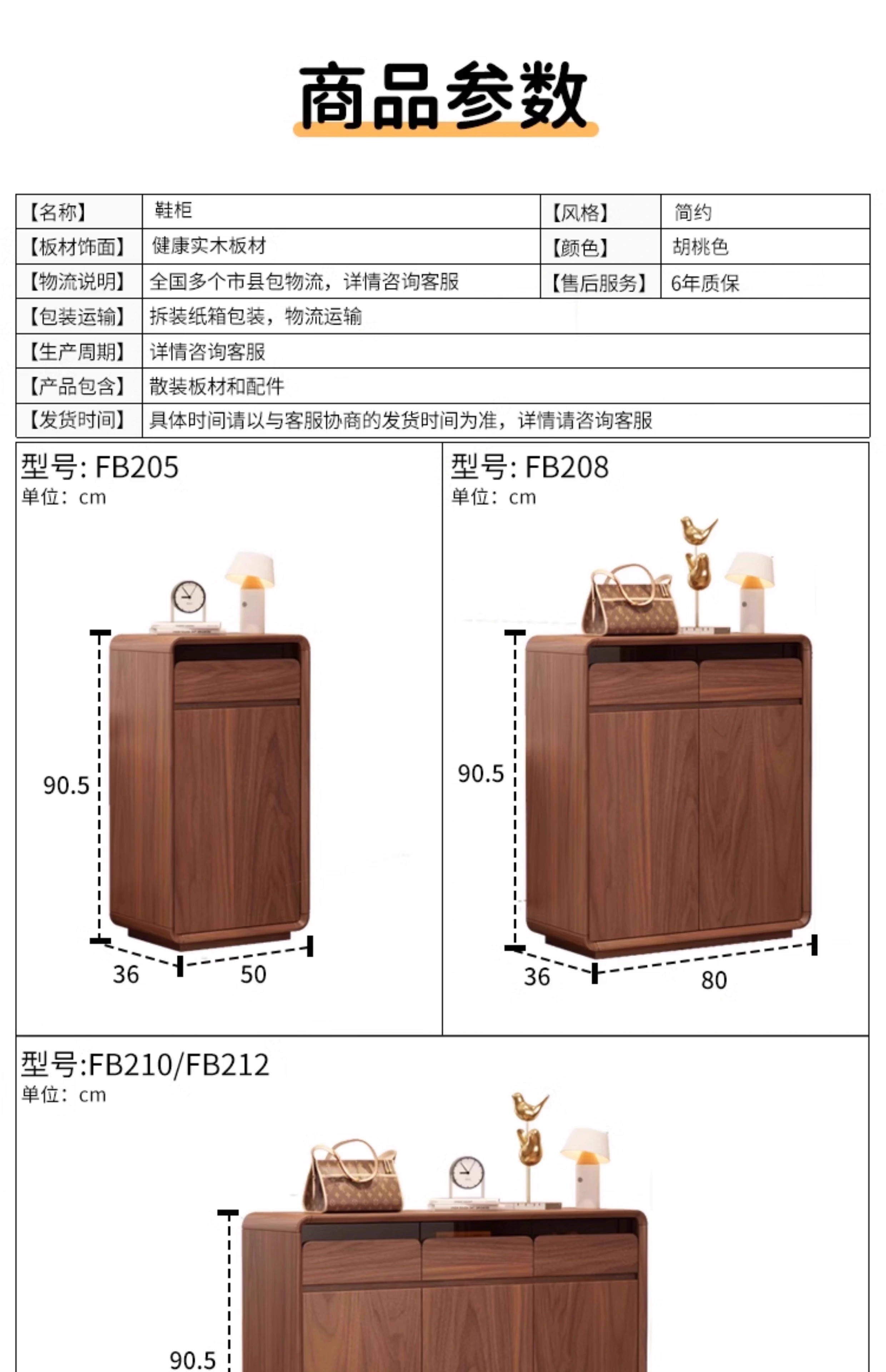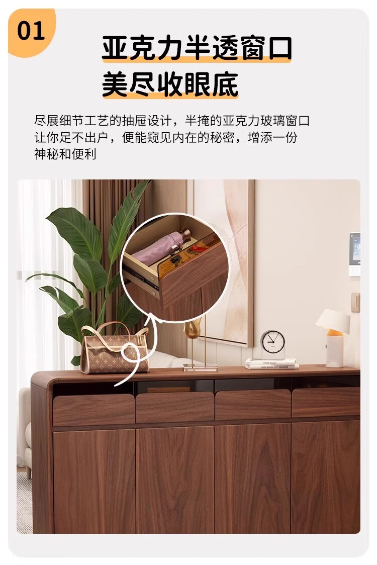 Zhixin Muwang solid wood shoe cabinet home door locker entry cabinet storage cabinet integrated wall living room entrance cabinet corridor outside walnut color 50*36*90.5cm