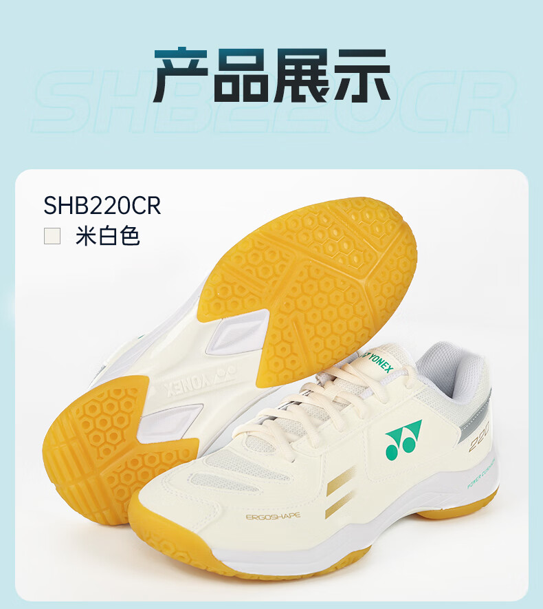 Yonex new badminton shoes for men and women, comfortable and breathable sports shoes, training shoes, competition shoes, non-slip and wear-resistant SHB220CR, off-white 41