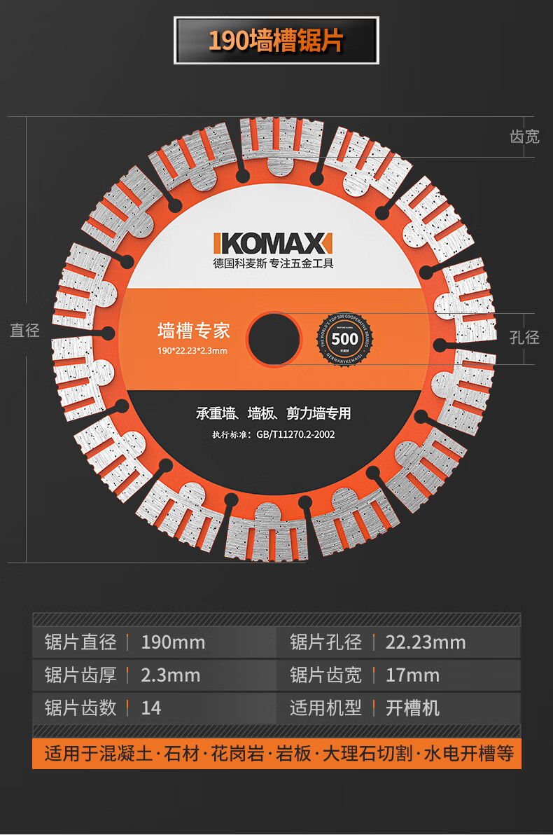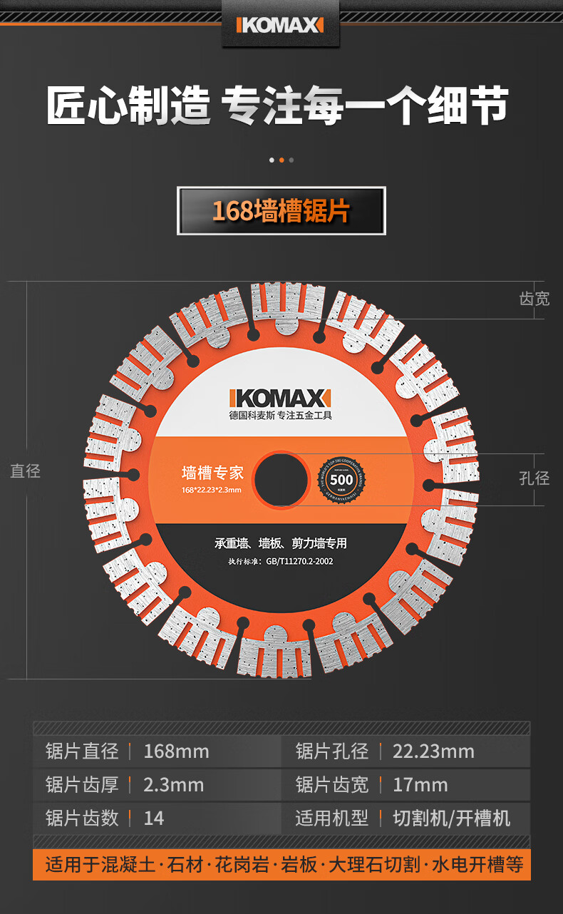 Comex slotting cutting blade angle grinder cutting wall slot slotting piece hydroelectric marble saw blade cement concrete piece 114 wall slot saw blade (1 piece)