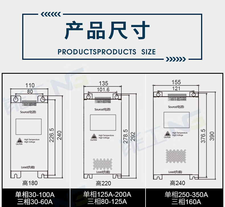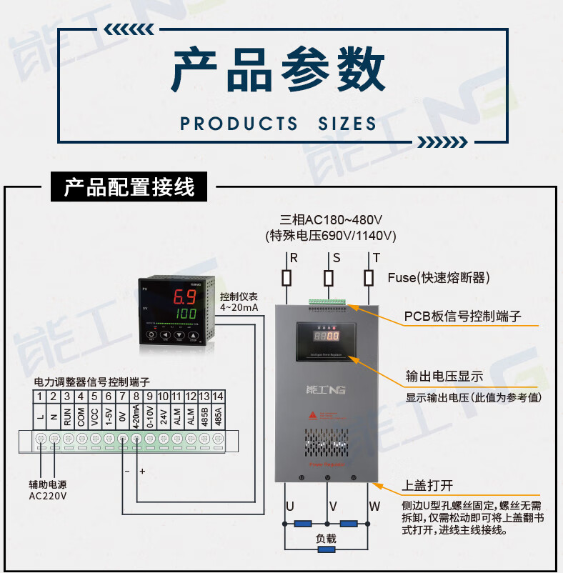 Three-phase power regulator 160-180A thyristor power regulator power controller thyristor voltage regulating heater NG3A-180A-YX (three-phase 380V)