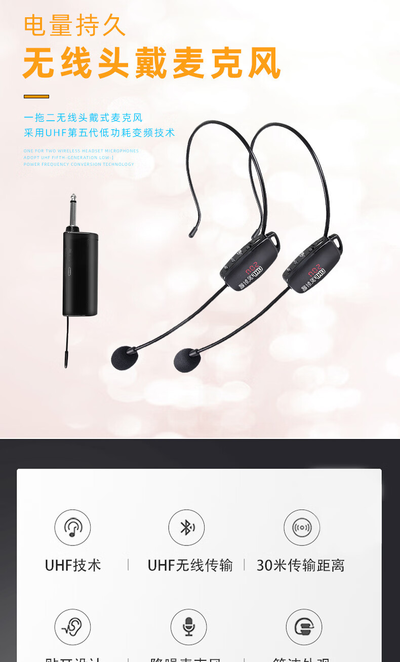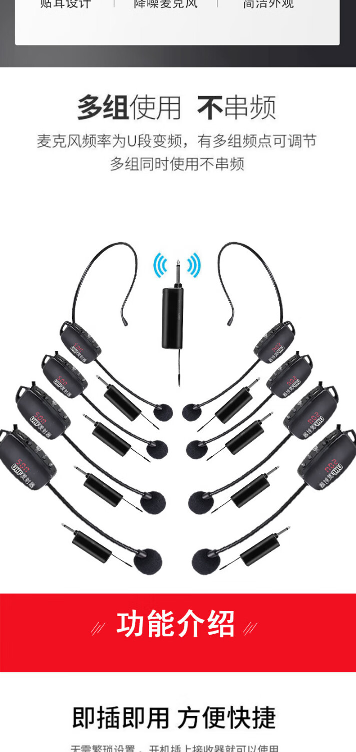 IMVP one-to-four wireless headset for teachers hanging microphone audio amplifier amplifier mixer stage professional performance outdoor karaoke microphone training universal one-to-four headset (with display, high-definition radio) suitable for audio/amplifier/amplifier and other equipment 50-meter wireless transmission without whistling