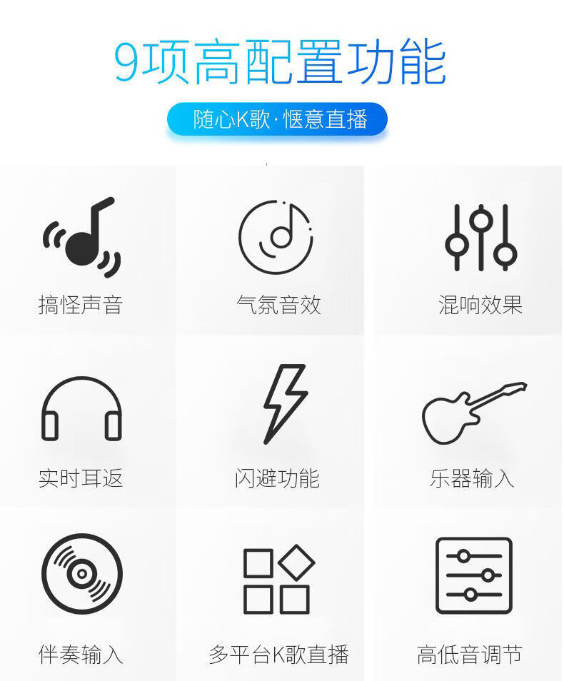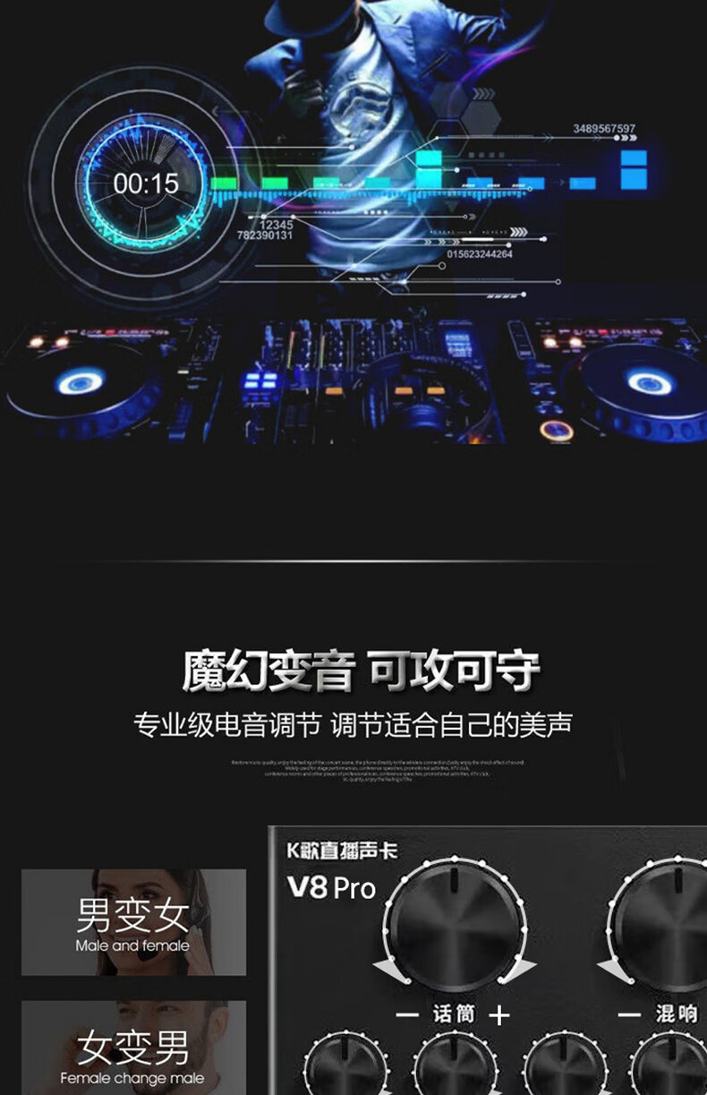Budi 2024 new V8 sound card set Internet celebrity live broadcast sound card full set mobile phone karaoke computer general equipment Kuaishou V8 sound card GT18 wheat fill light cantilever