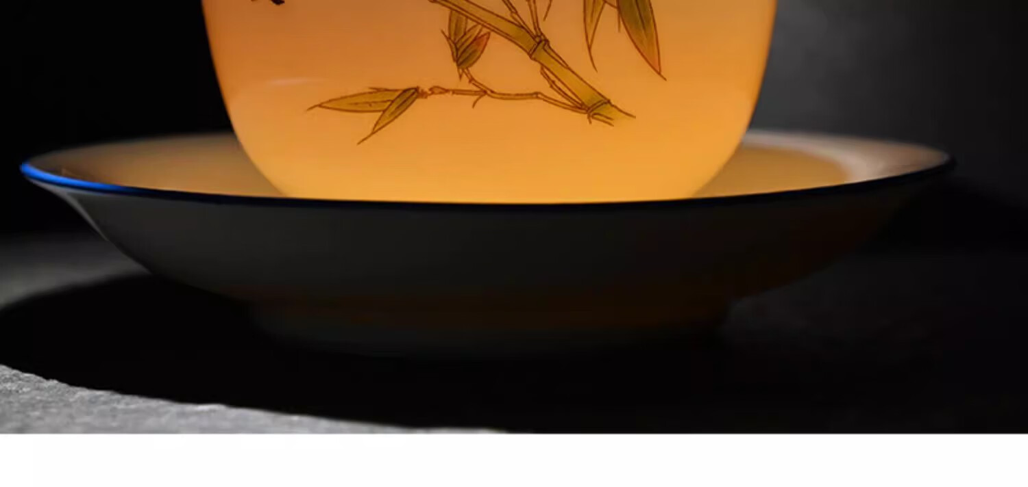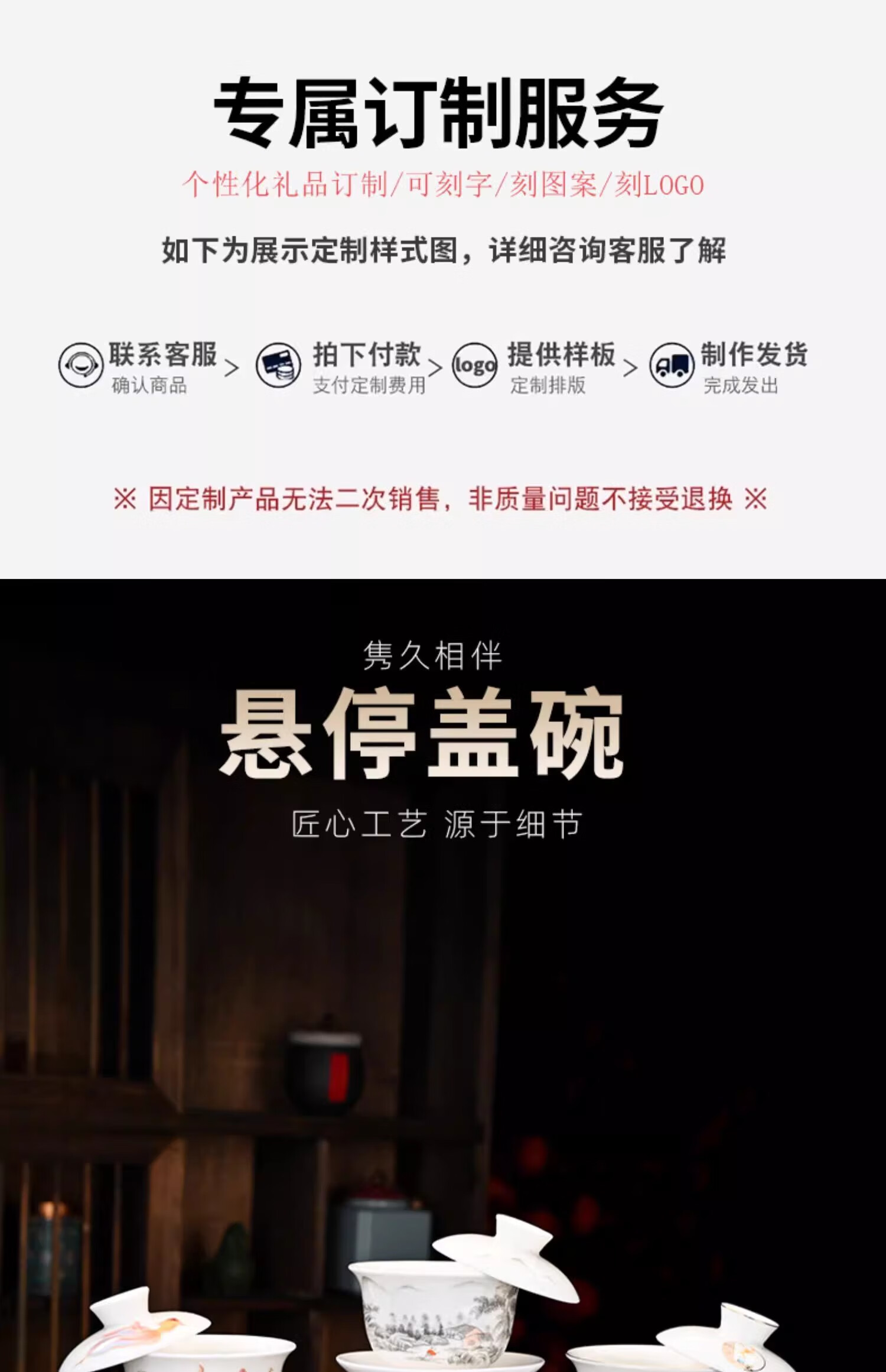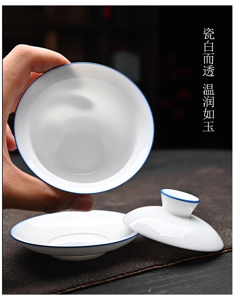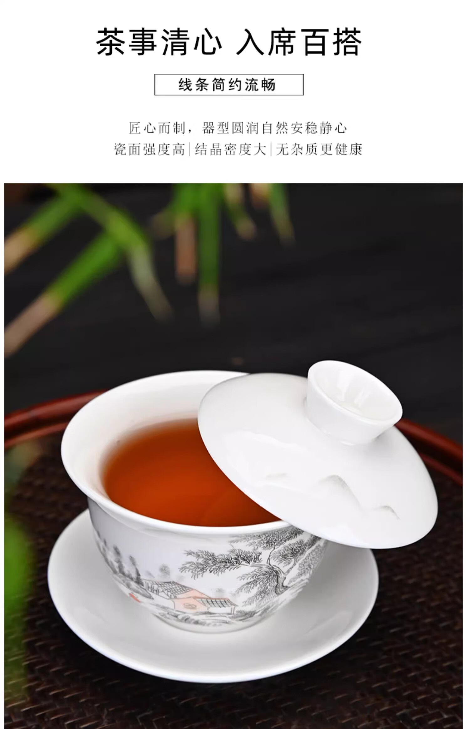 Baolin hovering rotating three-cai tureen tea cup single household Kung Fu tea set large non-hot high-end tea bowl 180ml hovering tureen-mutton fat jade-Mengli Water Village