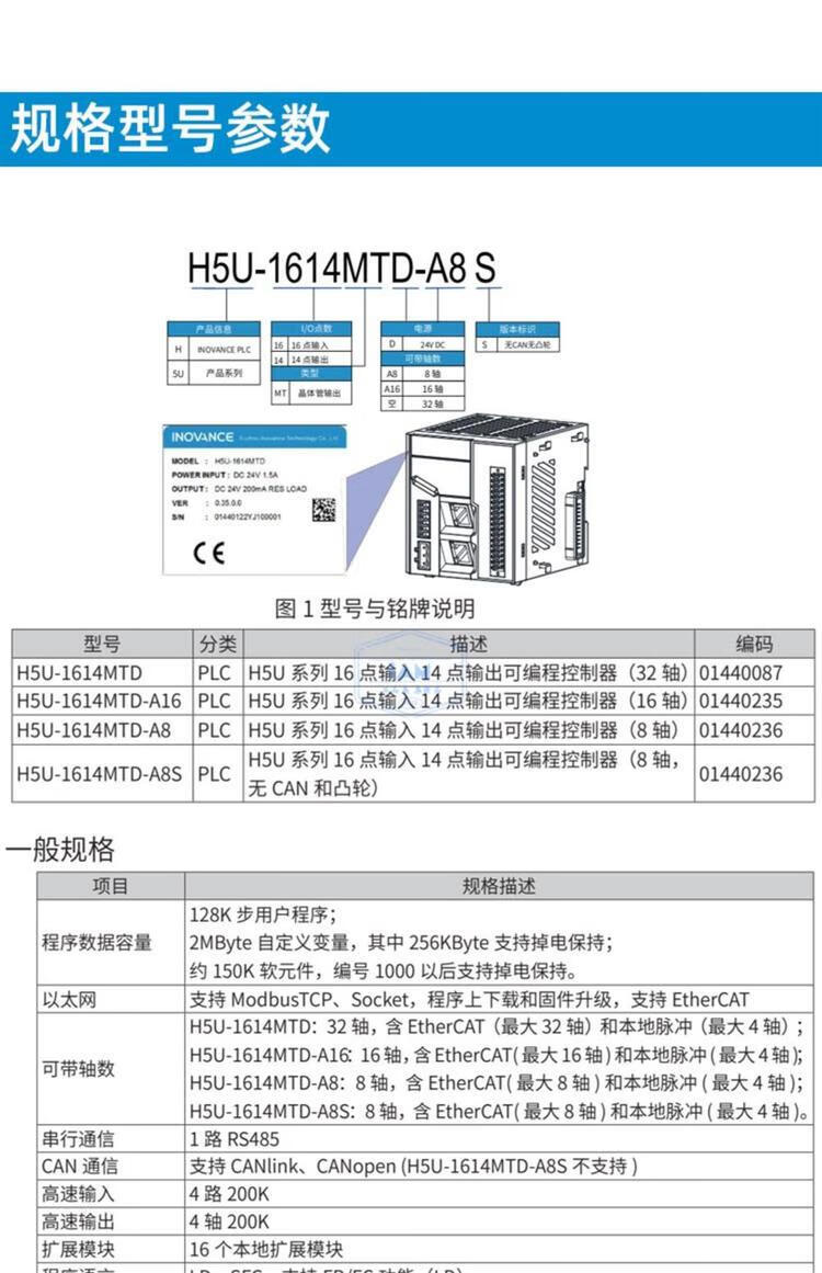 INOVANCE small programmable controller PLC H5U-1614MTD/GL10GR10 series module 8-axis host H5U-1614MTD-A8