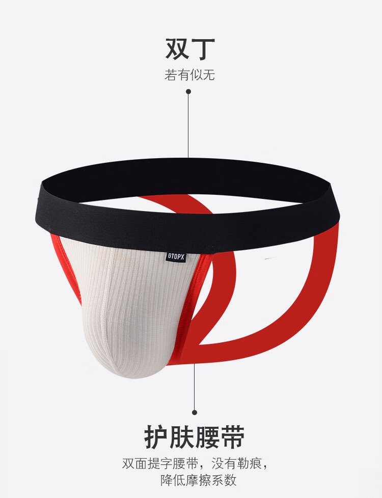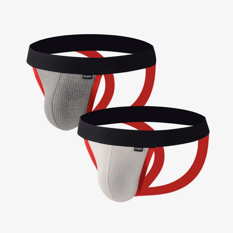GTOPX MAN men's low-waisted double thong underwear showing buttocks single layer breathable front U sexy big T-pants thong underwear two pieces (white + gray) XL