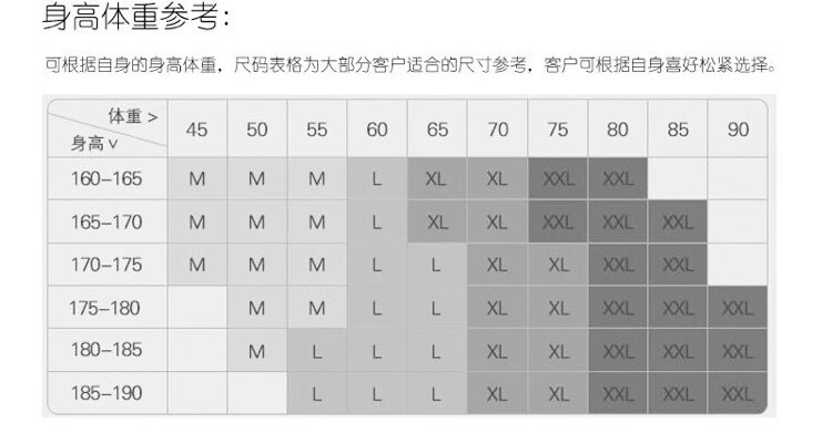 China (cm) 165 / 88-90 170 / 96-98 175 / 108-110 180 / 118-122 185 / 126-130
