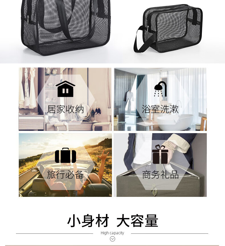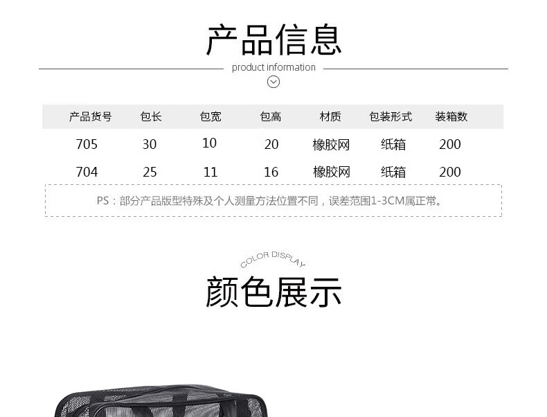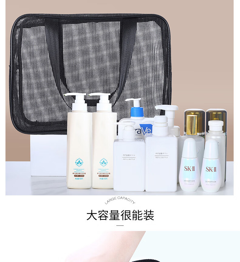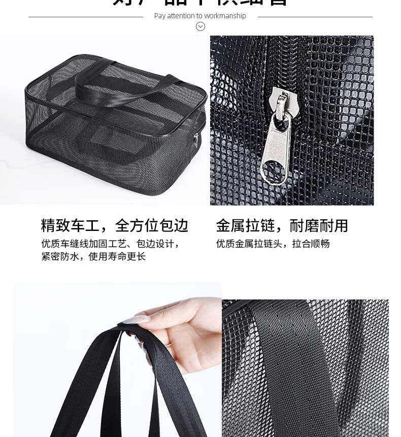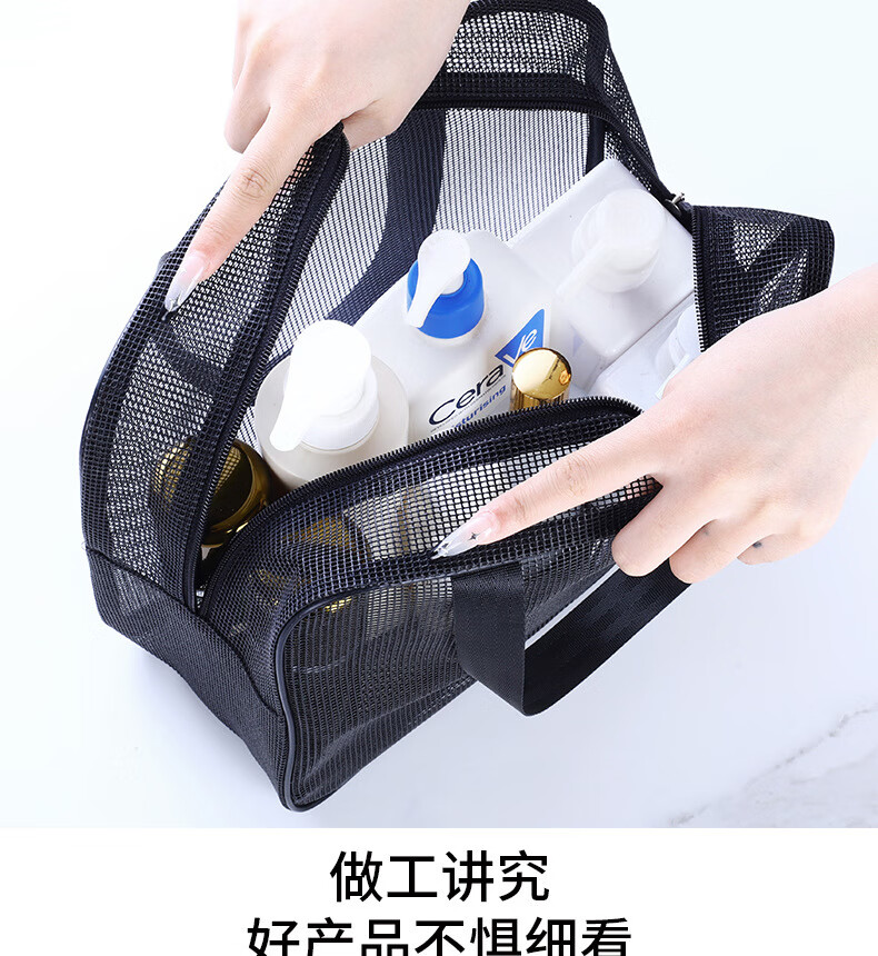 Changyin mesh men's toiletry bag portable hand-held bathing storage cosmetic bag black leaking fitness bath bag bath bag medium black 30*10*20cm