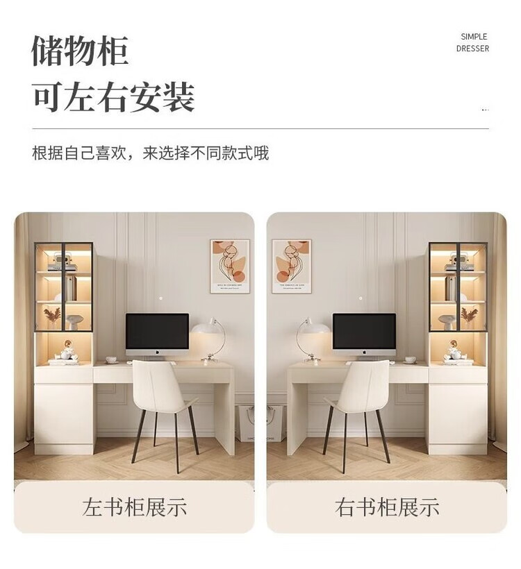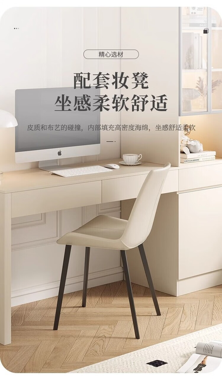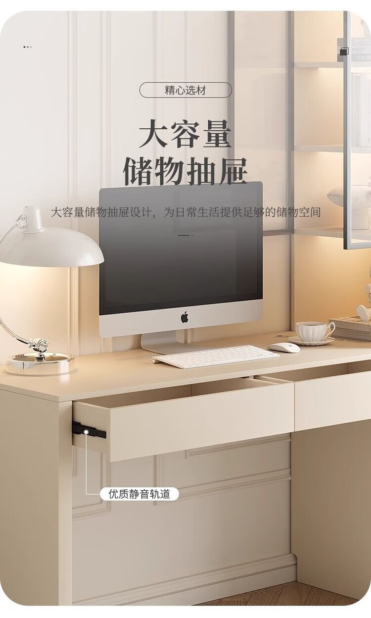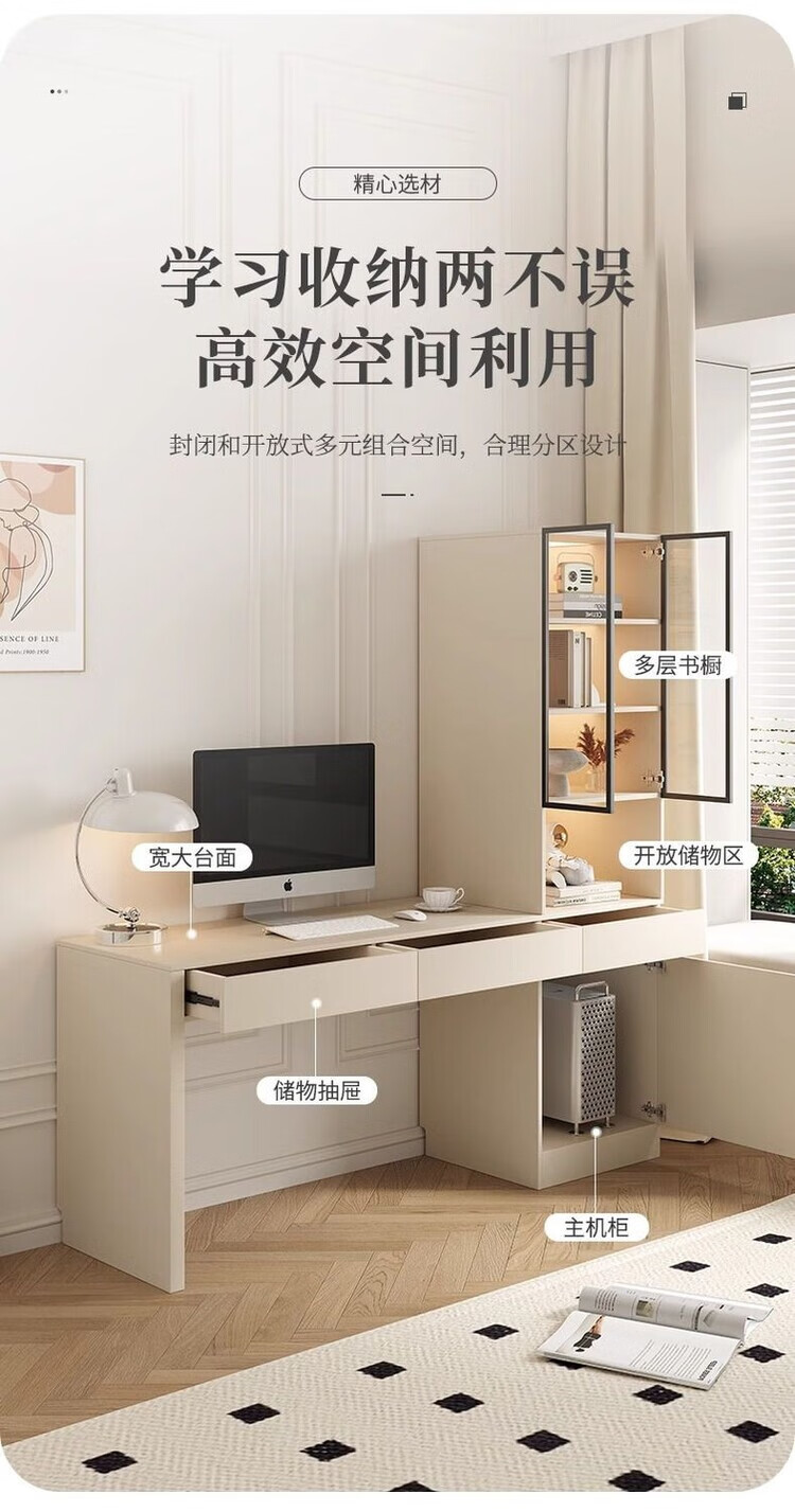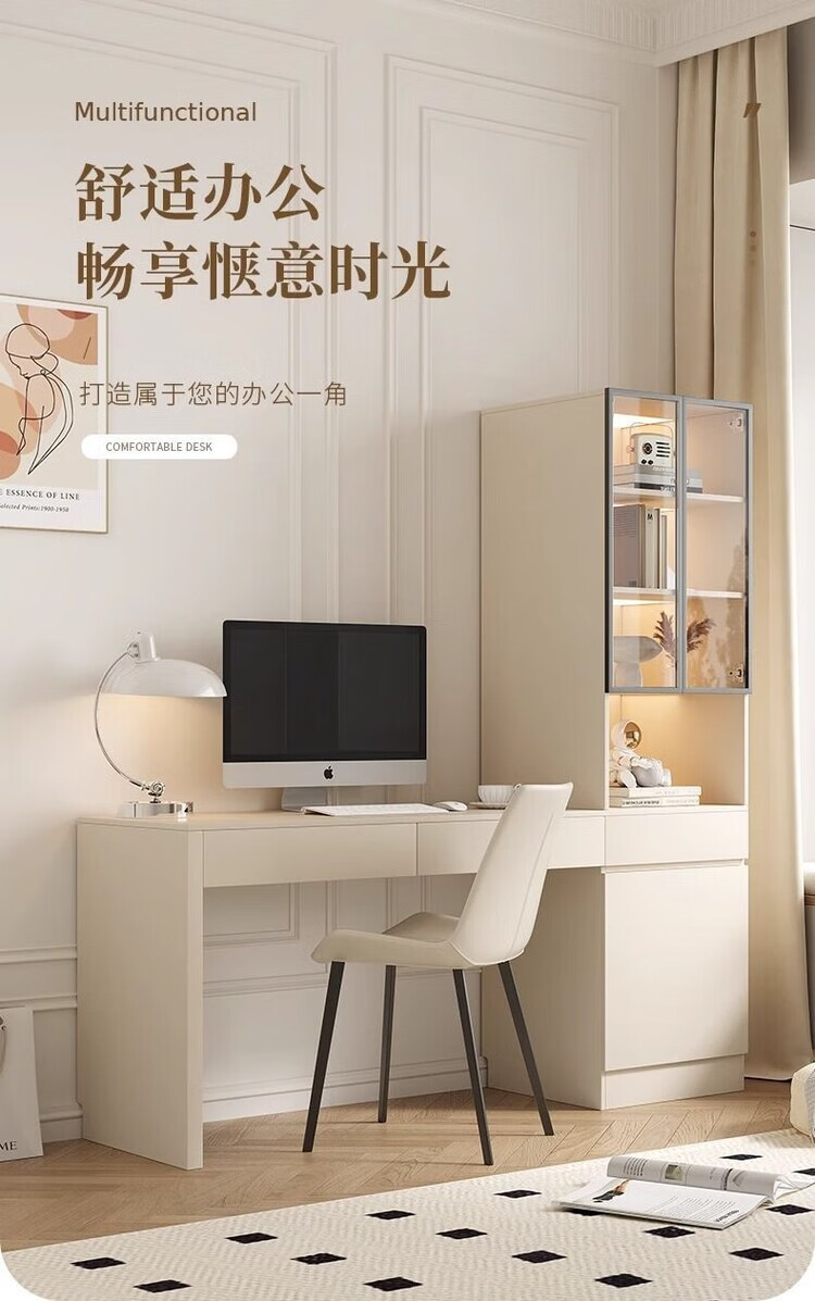 Tingbai desk and bookcase integrated wall-mounted modern cream style writing desk for home small apartment bedroom desk study table warm white all solid wood desk length 100 width 55 height 75