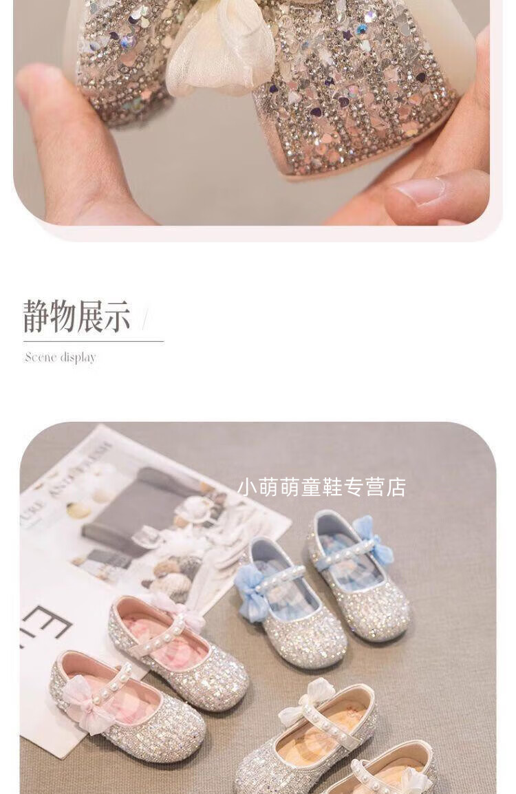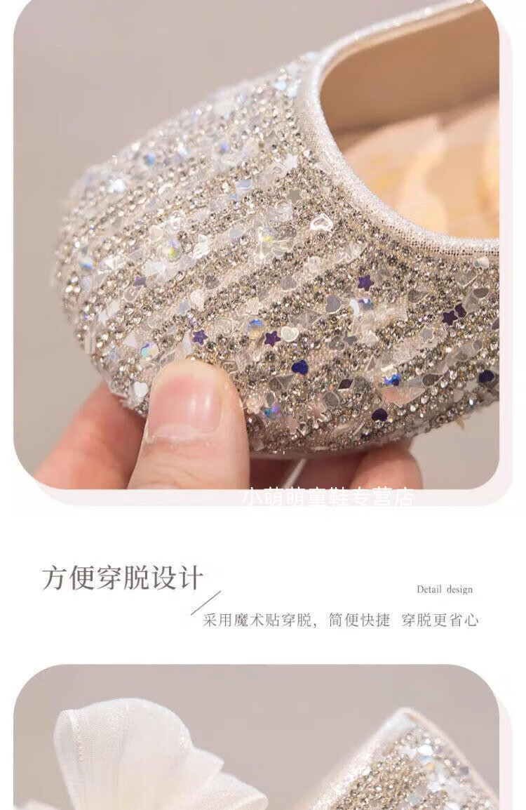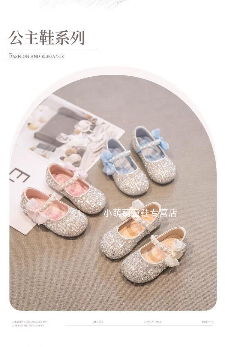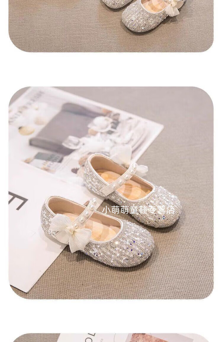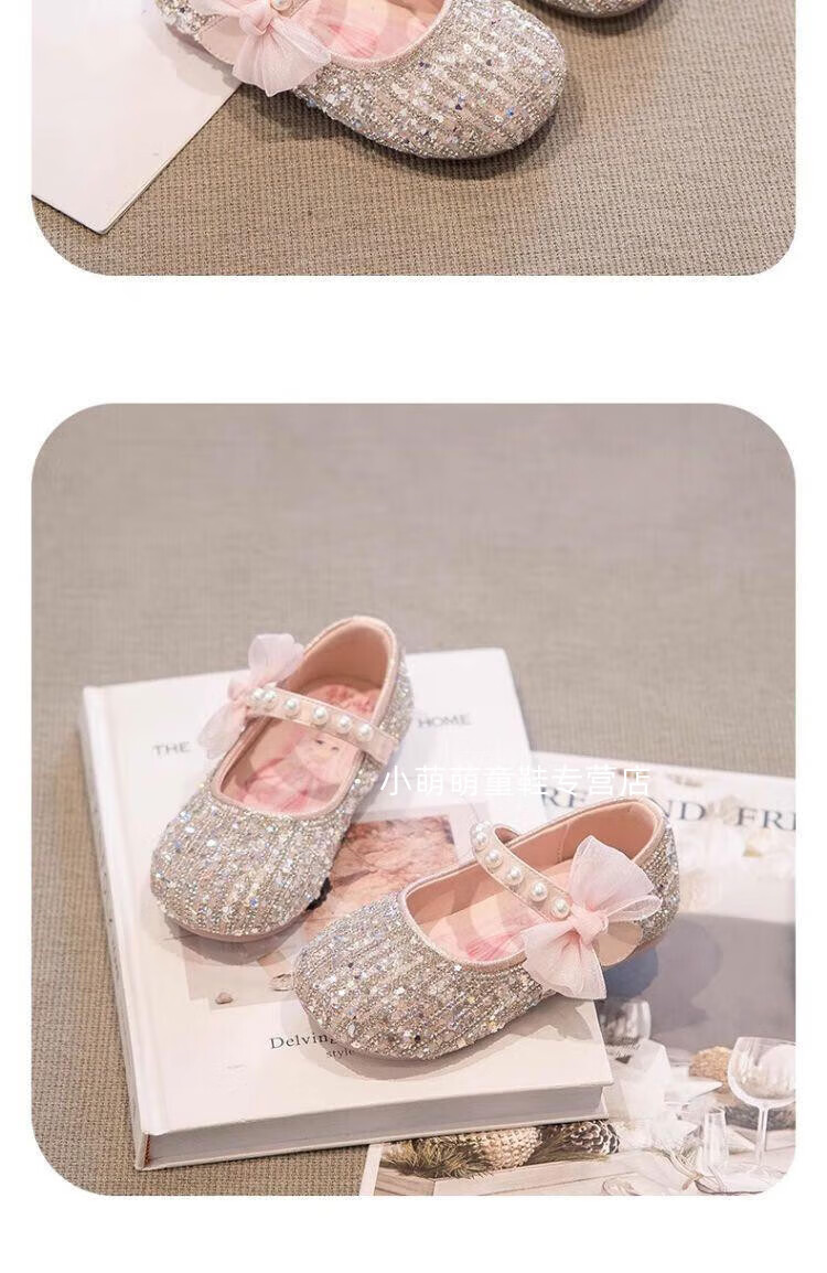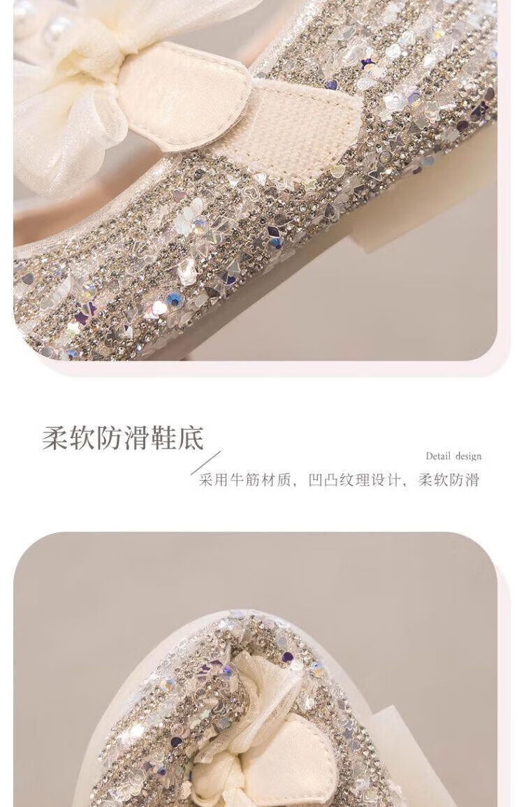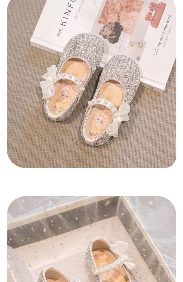 G.duck Girls Princess Shoes Spring Crystal Shoes Girls Shoes 2024 New Spring and Summer Soft Soled Single Shoes Girls Small Leather Shoes Beige Size 16.5 Inner Length 6.1