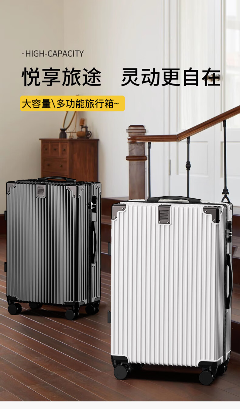 Pleasure suitcase men's trolley suitcase zipper large capacity password suitcase universal wheel student boarding leather suitcase exclusive upgrade thickened zipper - dazzling black 26 inches carefully selected good products + worry-free shopping