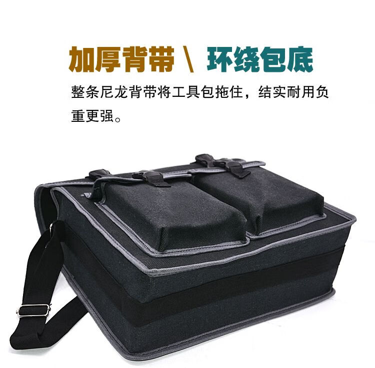 Meikejie tool bag construction worker thickened canvas multi-functional large electrician bag wear-resistant decoration bricklayer double-layer carpenter's bag thickened large size 45X14X38 cm