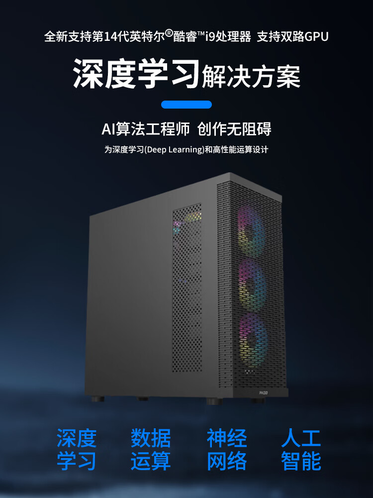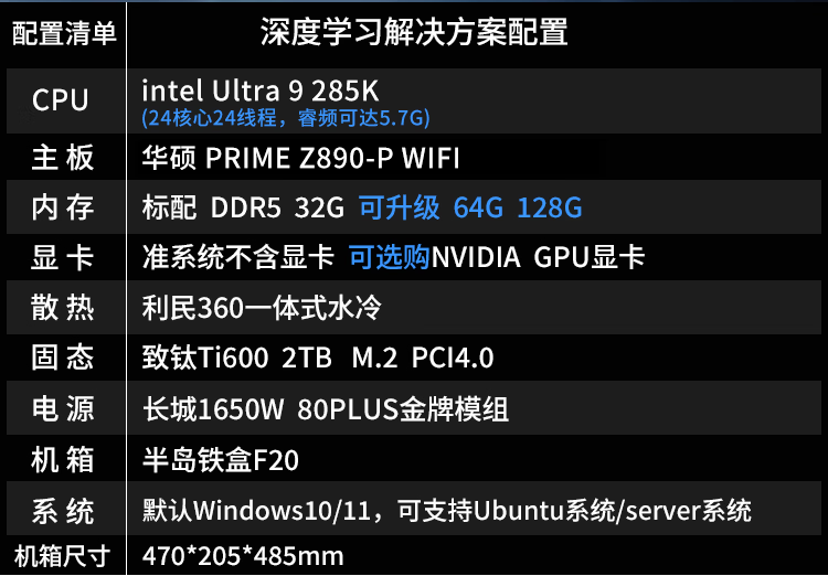 Jinhetian U9 285K/RTX5090 deep learning host dual graphics card GPU server University Town AI artificial intelligence training computer simulation calculation finite element analysis workstation 285K/2T/32G/no independent display