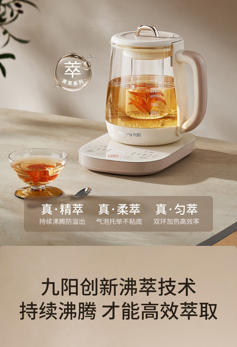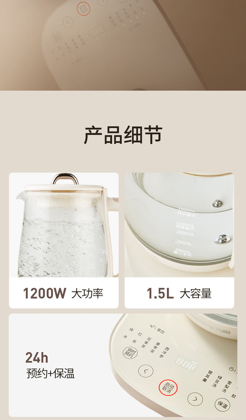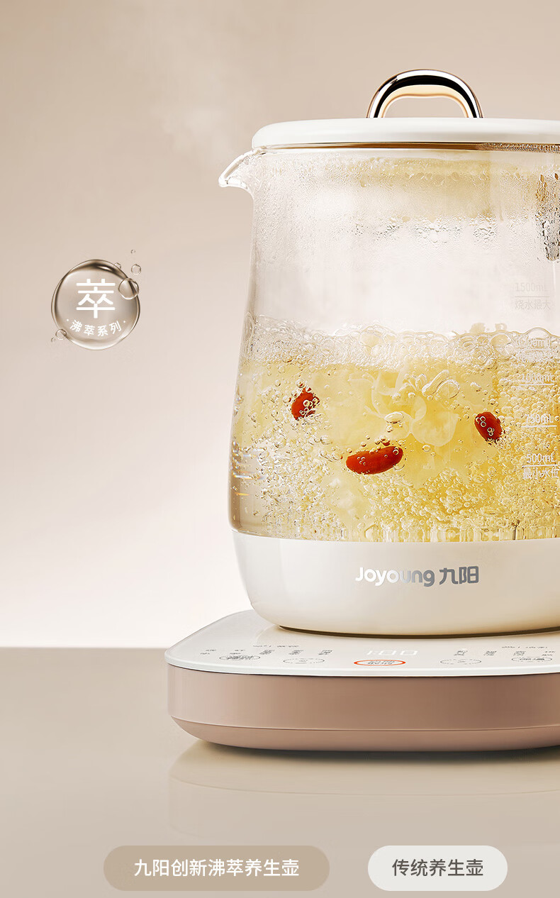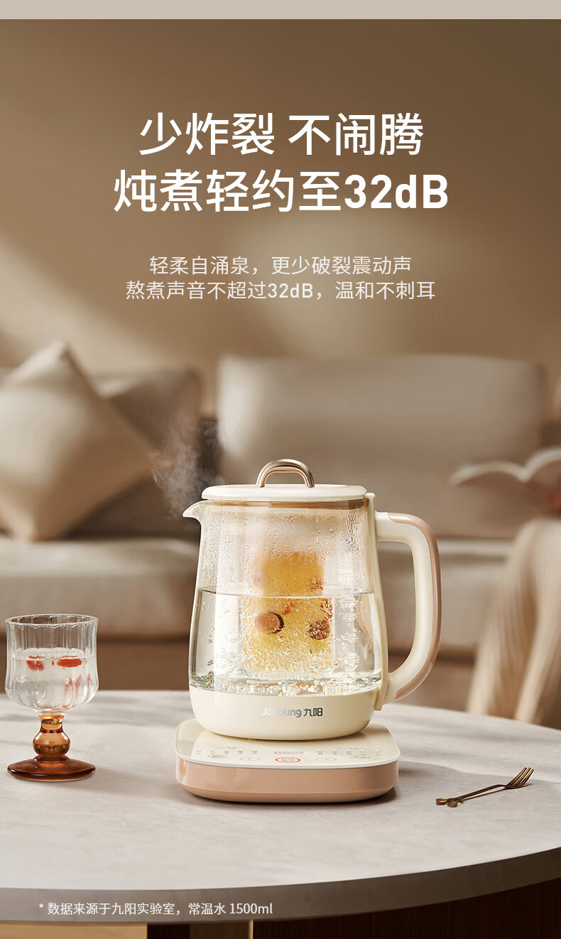 Jiuyang boiling health kettle, soft sound and noise reduction, multi-functional health kettle, stew kettle, flower tea kettle, tea kettle, kettle glass panel 15WY1J regular power version 1.5L