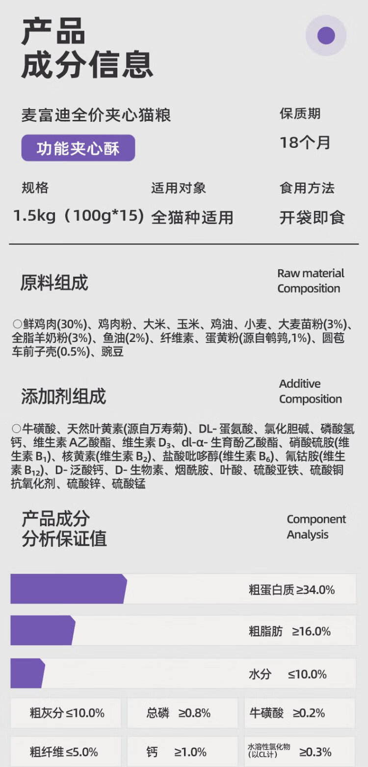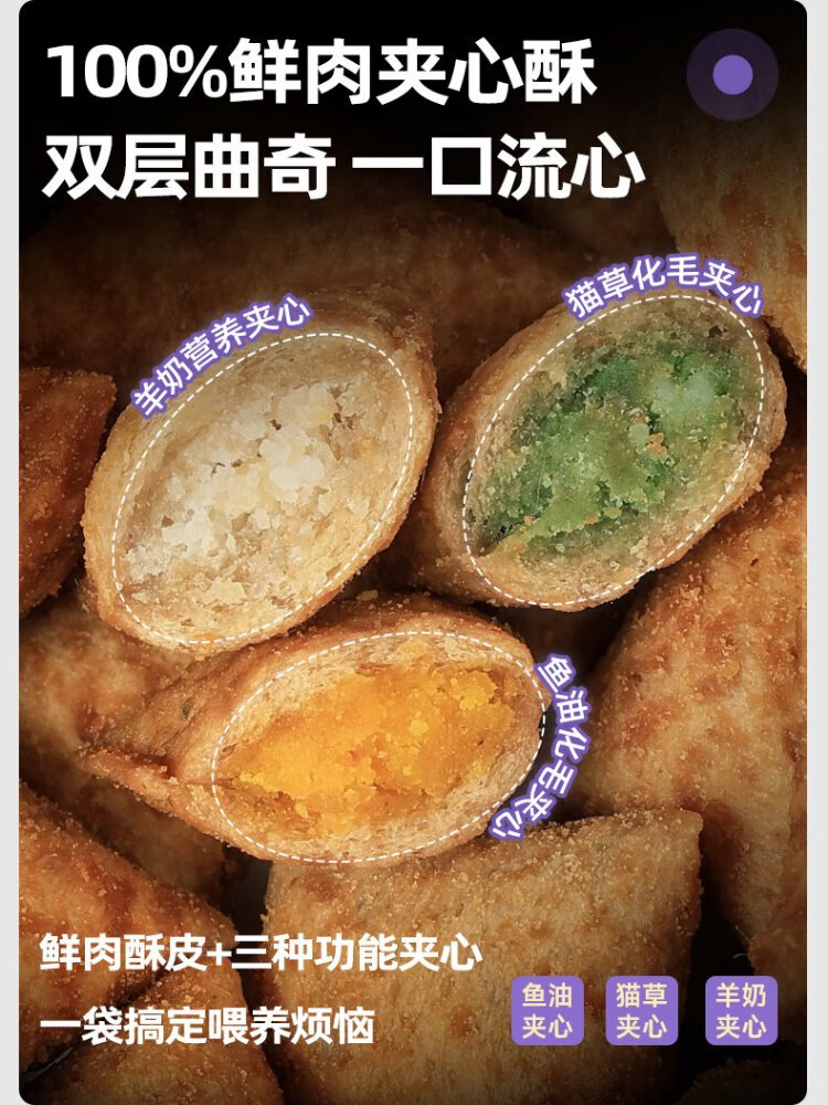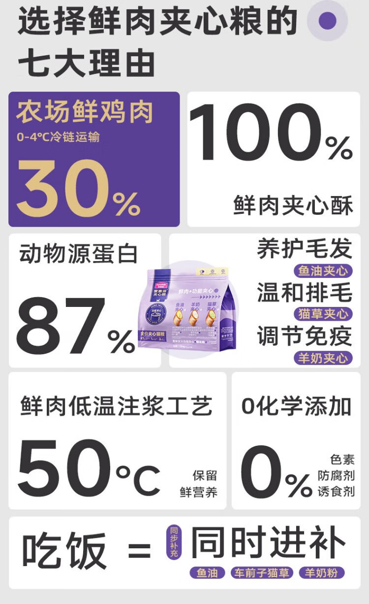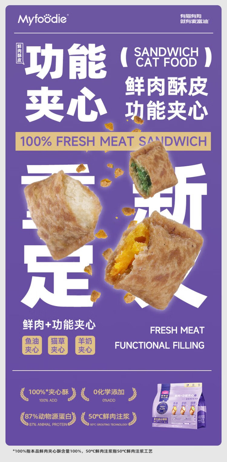 McFoodie Cat Food Fresh Meat Functional Sandwich Crispy Full Price Cat Food Adult Cats and Kittens General Ragdoll Shorthair Cat Dry Food Cat Grass & Fish Oil & Goat Milk Mixed Pack 1.5kg