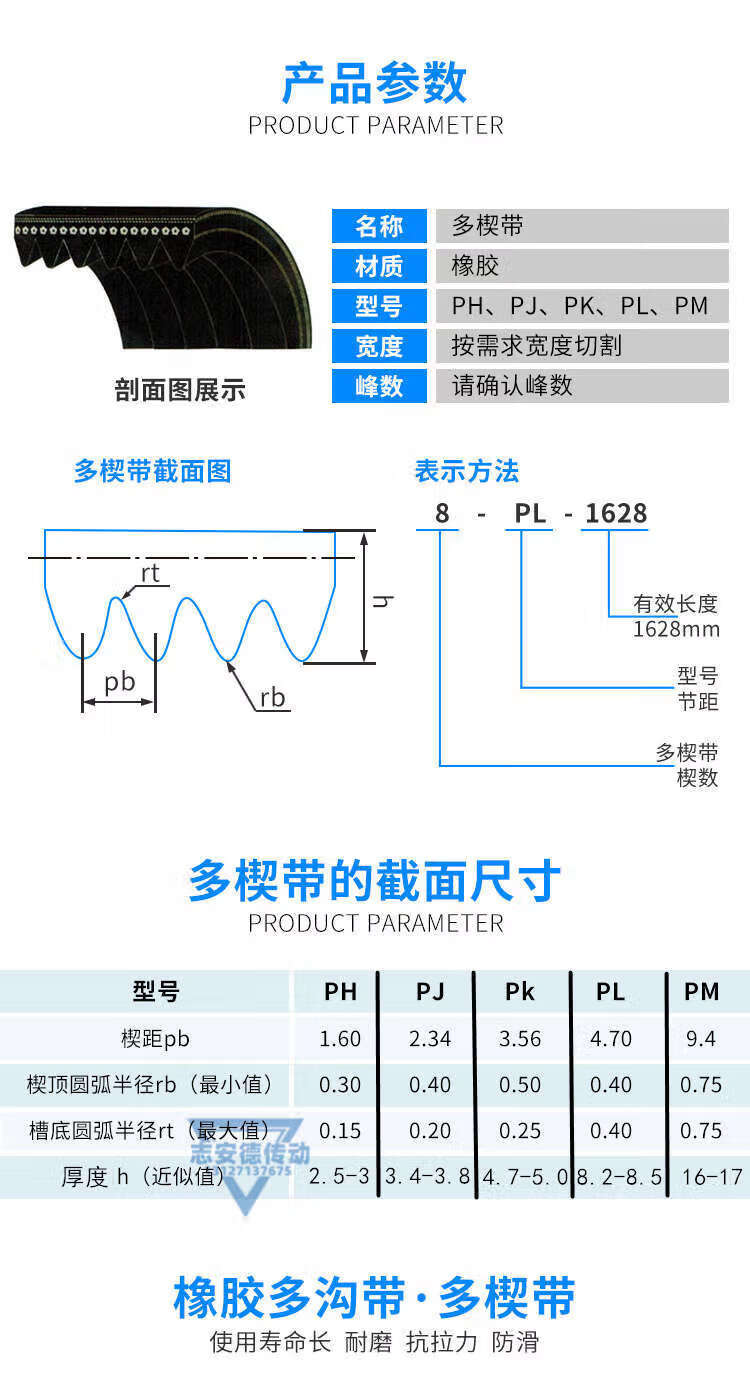 Rubber PJ multi-ribbed belt 610J 650J 690J Angelo multi-groove transmission belt ACRON multi-ribbed belt 690J12 peak