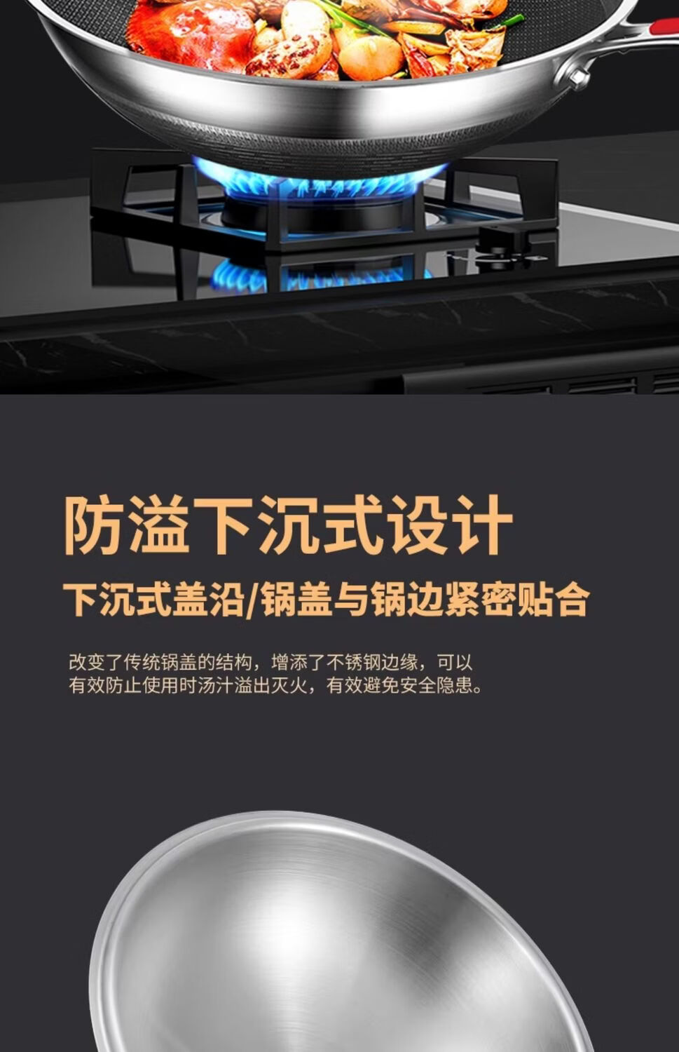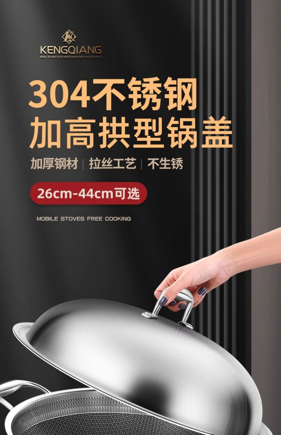 Sonorous 304 stainless steel large pot lid, heightened and thickened one-piece wok lid, steamer lid, anti-overflow soup food-grade pot lid, inner diameter 26cm/outer diameter 28cm