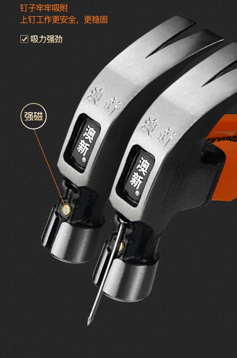 Australian and New Zealand Tools Special Steel High Carbon Steel European Claw Hammer Woodworking Nail Hammer Magnetic Hammer Pied Corner Aoxin Claw Hammer T0010 Right Angle Pied Surface 6 Liang